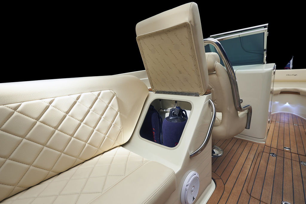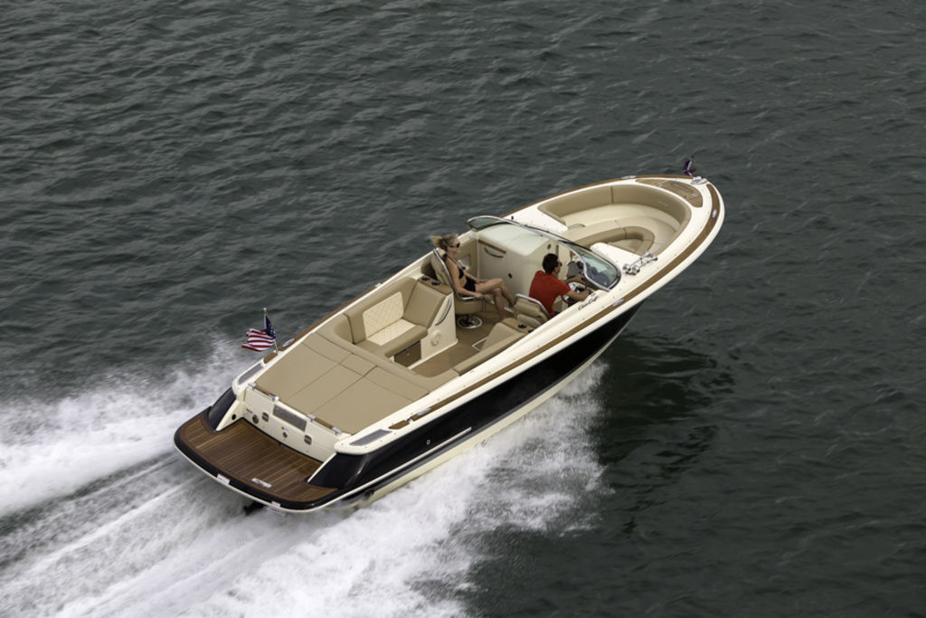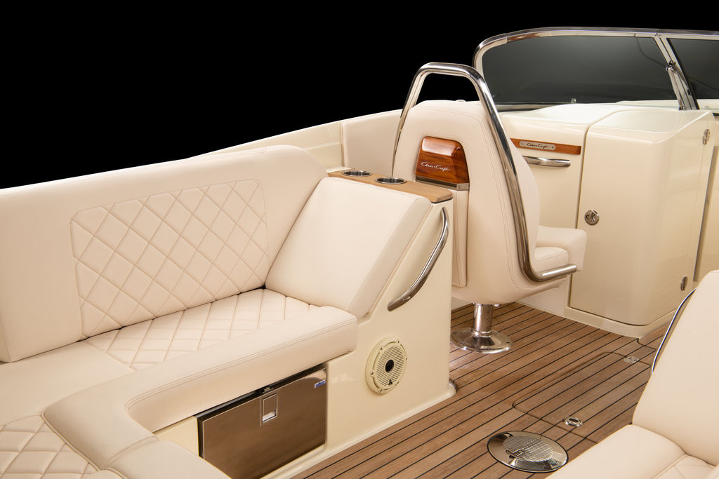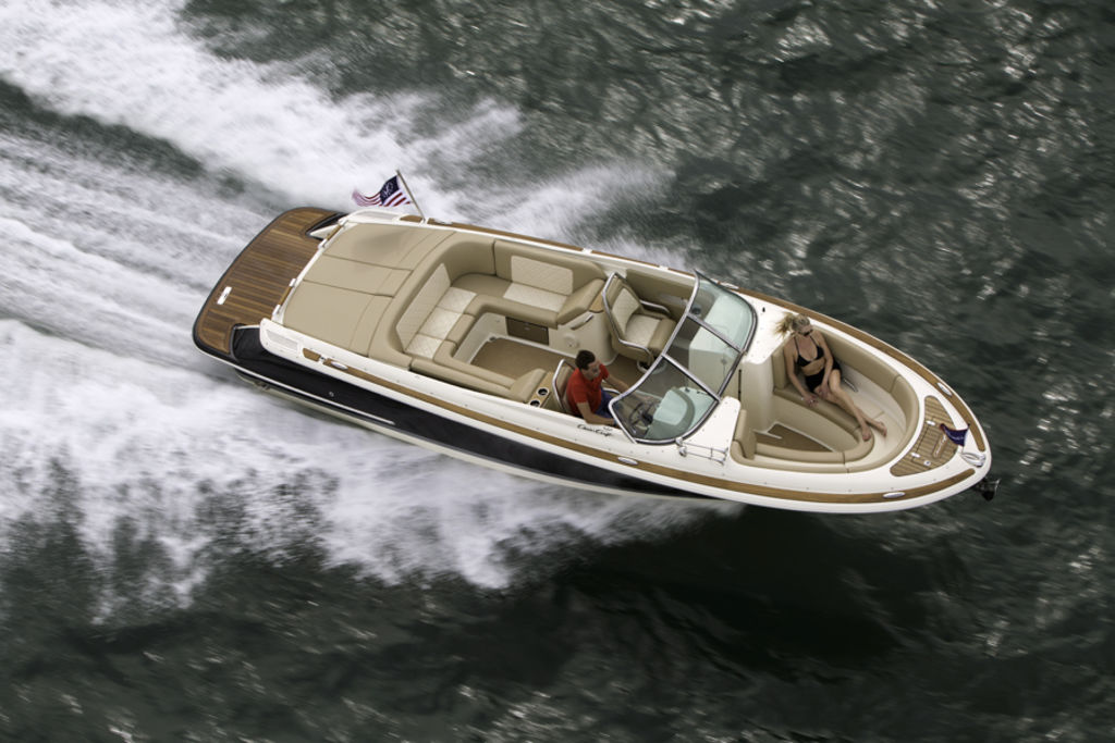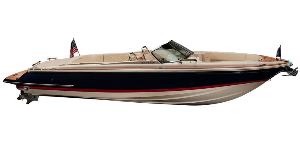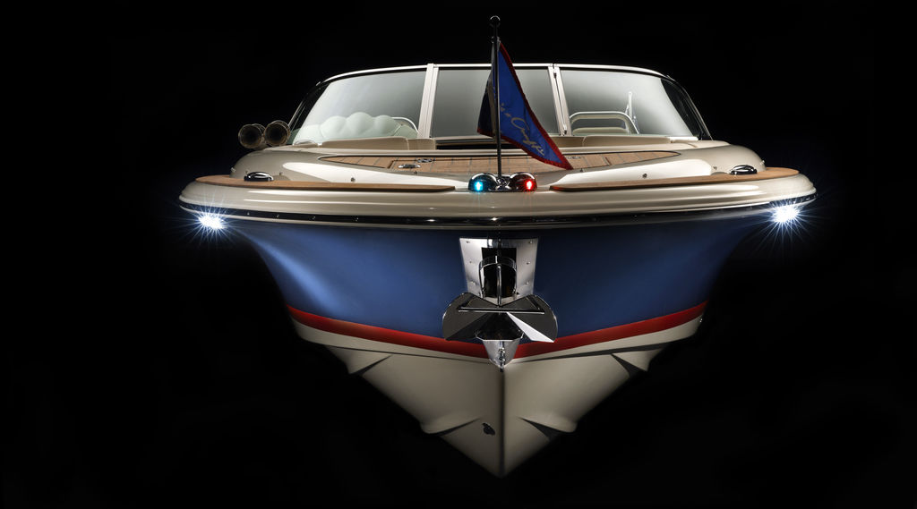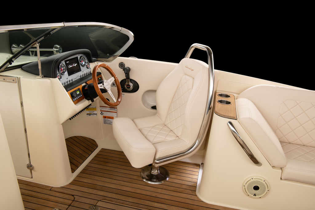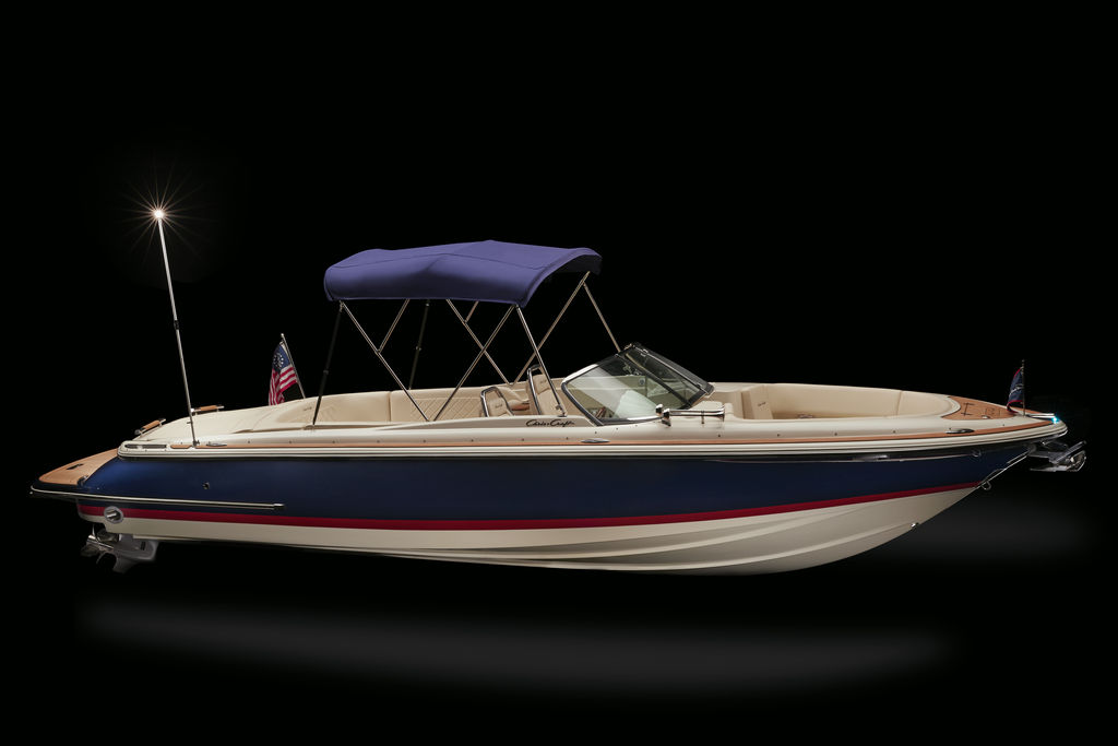 The Launch 27 combines signature Chris-Craft details with quick acceleration and agile handling. Starting with our exclusive and innovative hull design - the reverse transom and signature flared bow provide a legendary ride. The windshield is solid stainless steel and beautifully contoured.