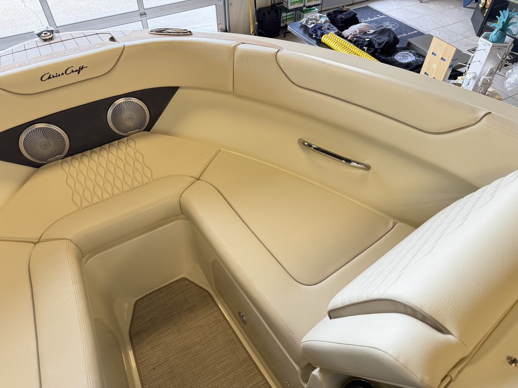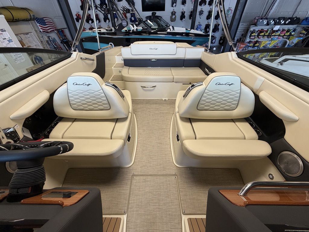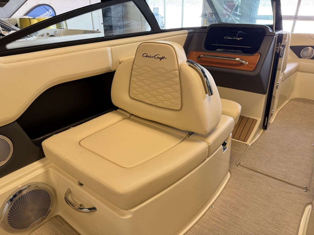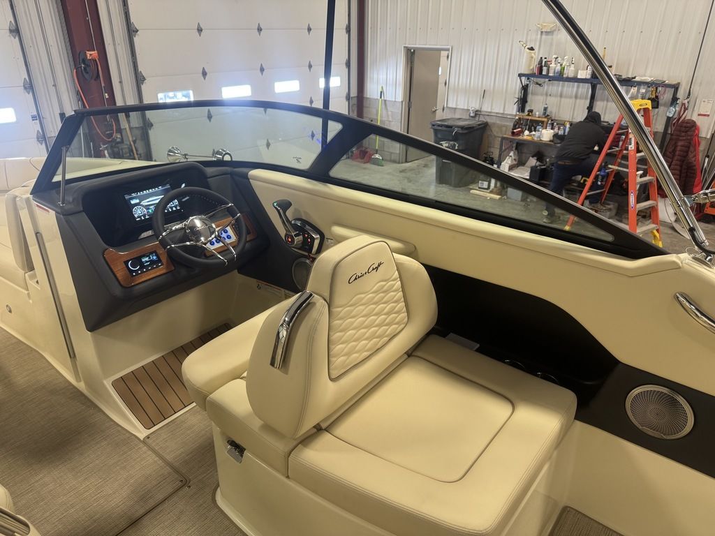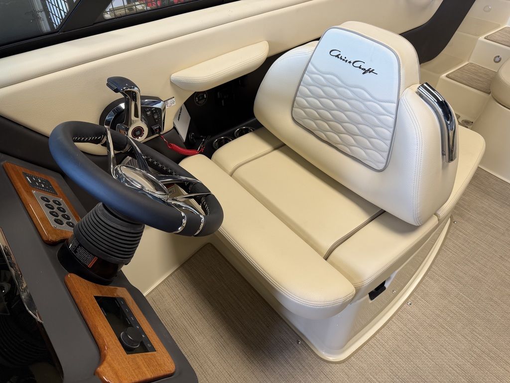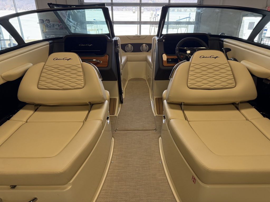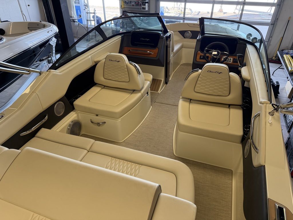 This 25-foot bowrider captures Chris-Craft’s unmistakable heritage with elegant lines, premium teak accents, and hand-stitched upholstery, while delivering the power and handling today’s boaters demand. Whether you’re cruising the lake, entertaining friends, or enjoying watersports with the family, the Sportster 25 offers a smooth, confident ride and thoughtful design throughout.