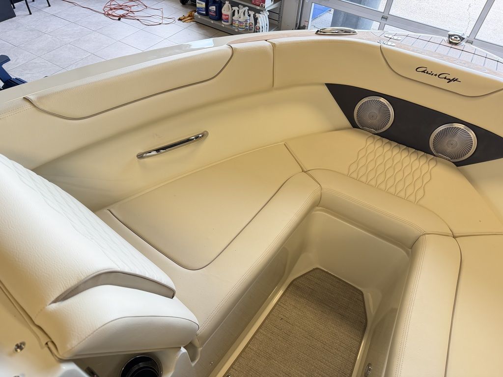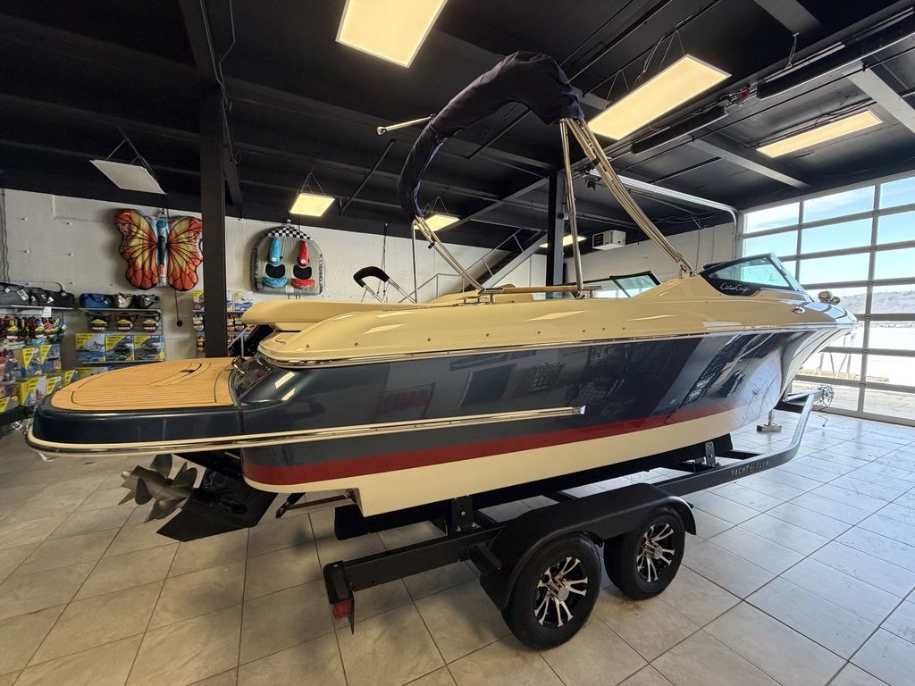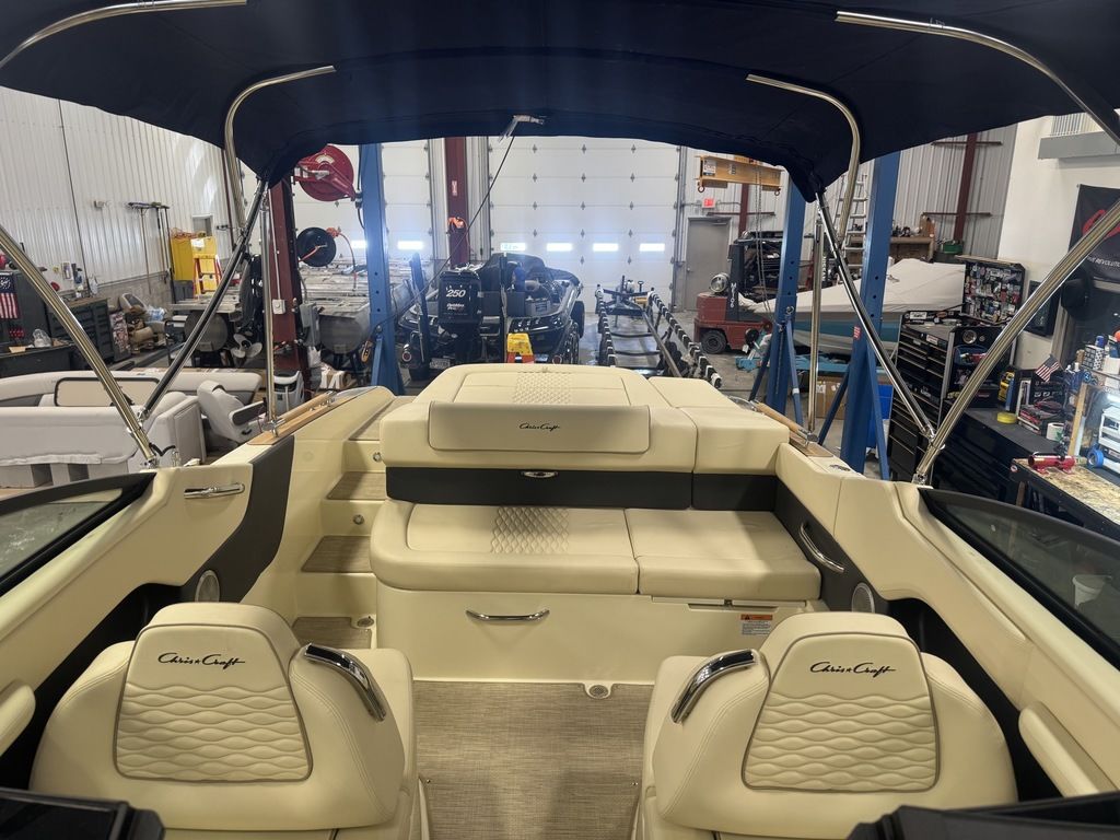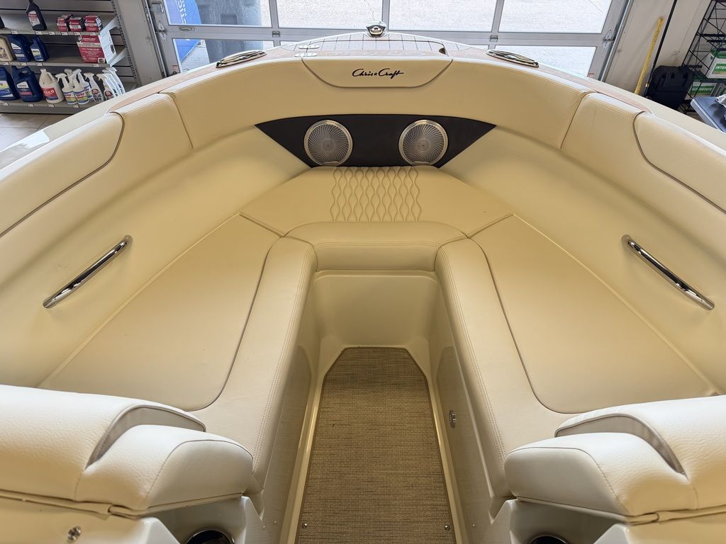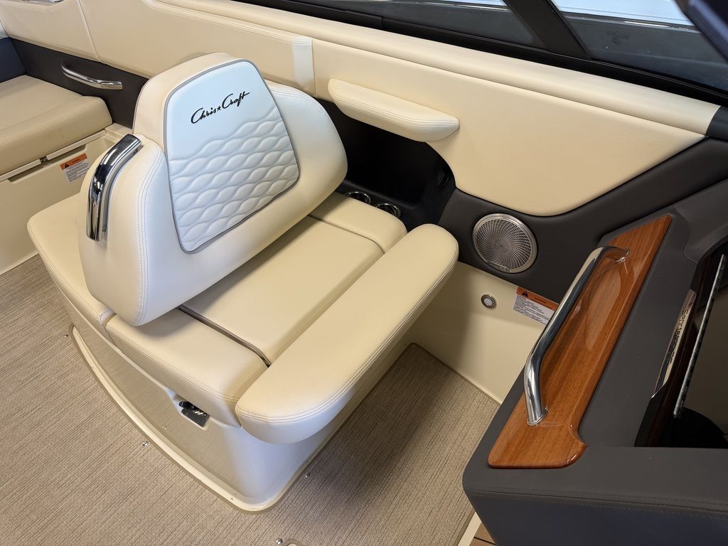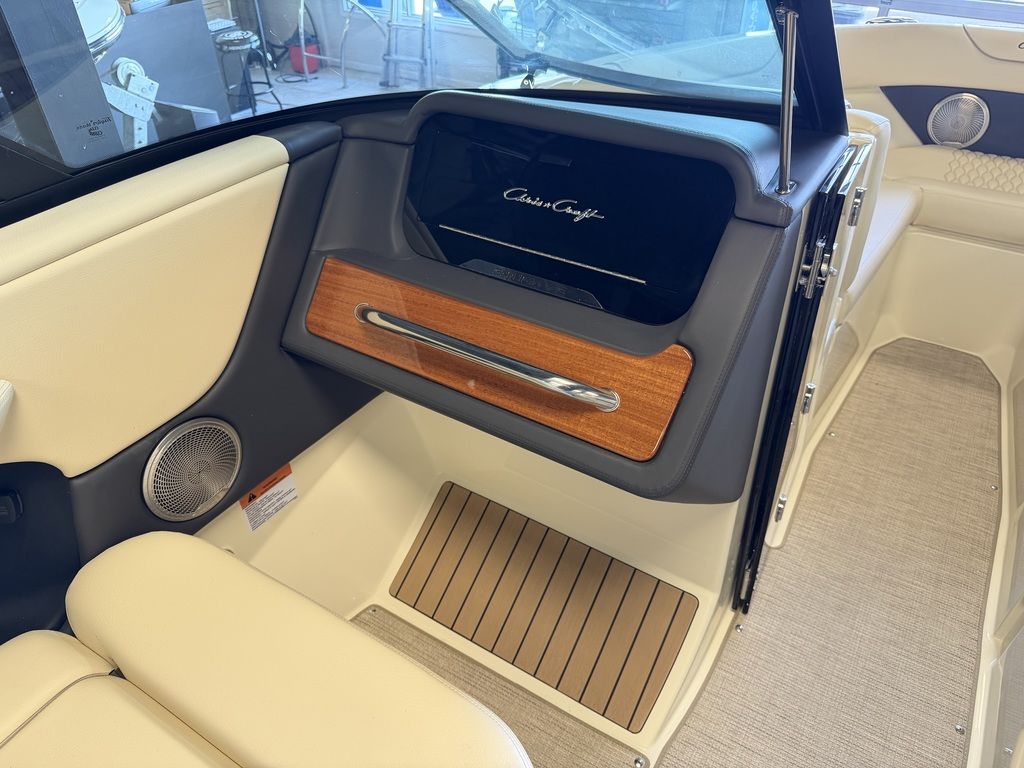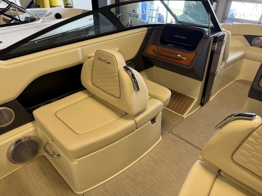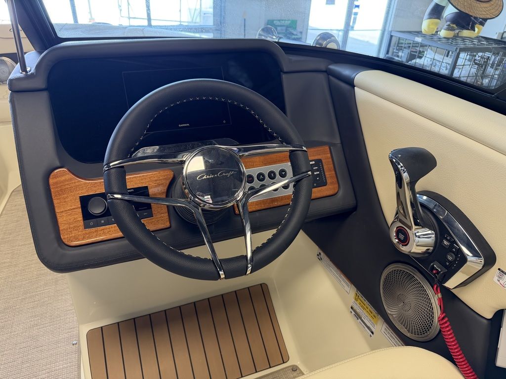 This 25-foot bowrider captures Chris-Craft’s unmistakable heritage with elegant lines, premium teak accents, and hand-stitched upholstery, while delivering the power and handling today’s boaters demand. Whether you’re cruising the lake, entertaining friends, or enjoying watersports with the family, the Sportster 25 offers a smooth, confident ride and thoughtful design throughout.