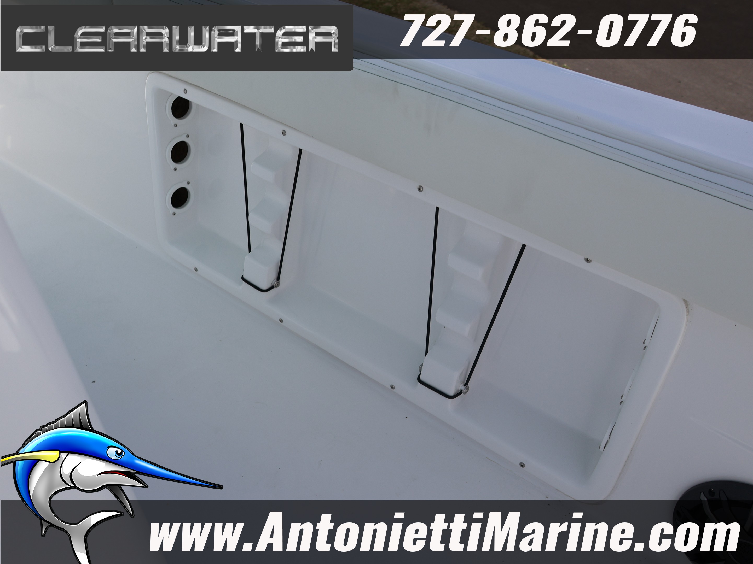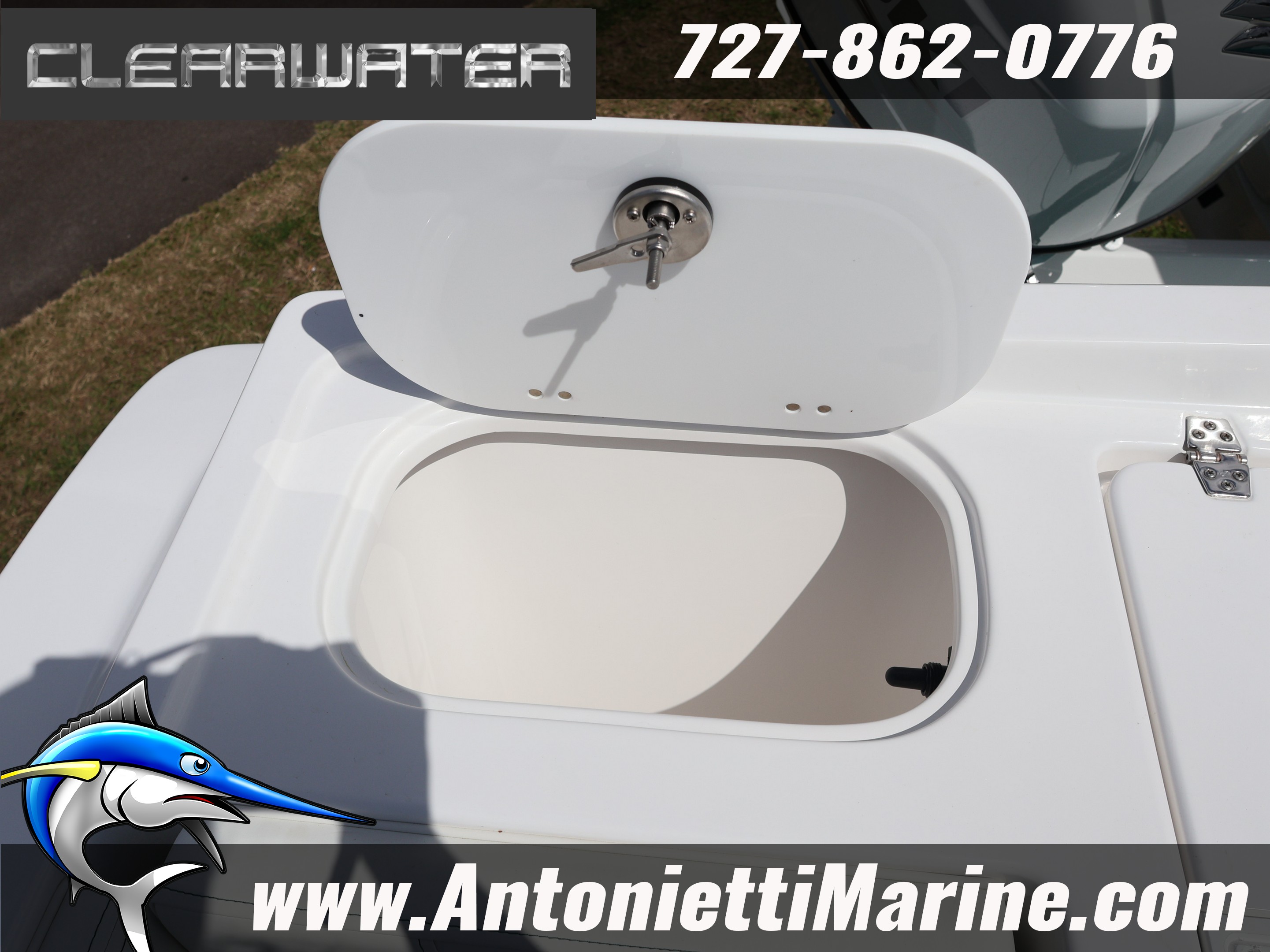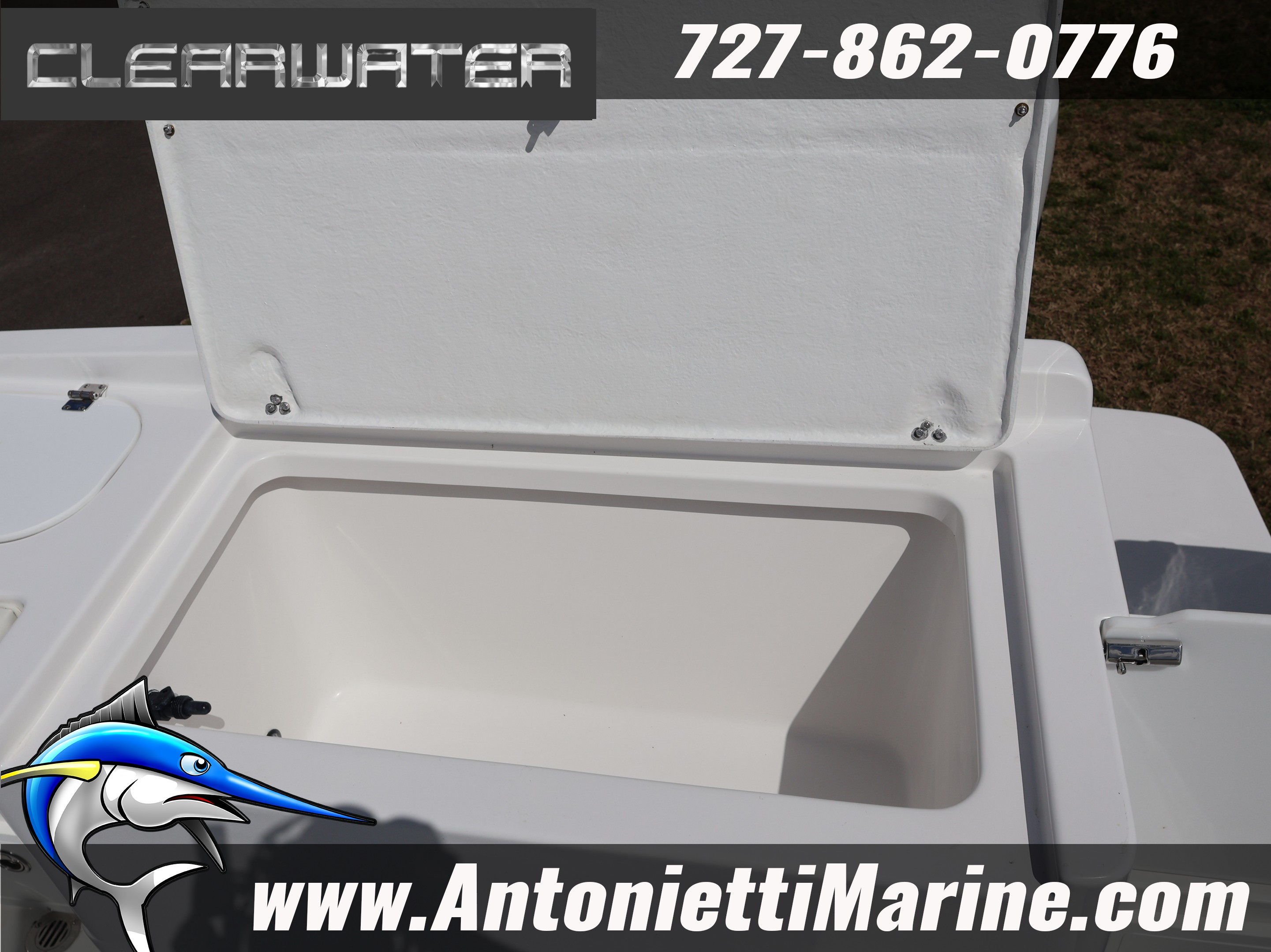 • 45-gallon, lit, aerated live well keeps bait/fish fresh, allows for visibility in the dark, and is centrally located for easy access.
