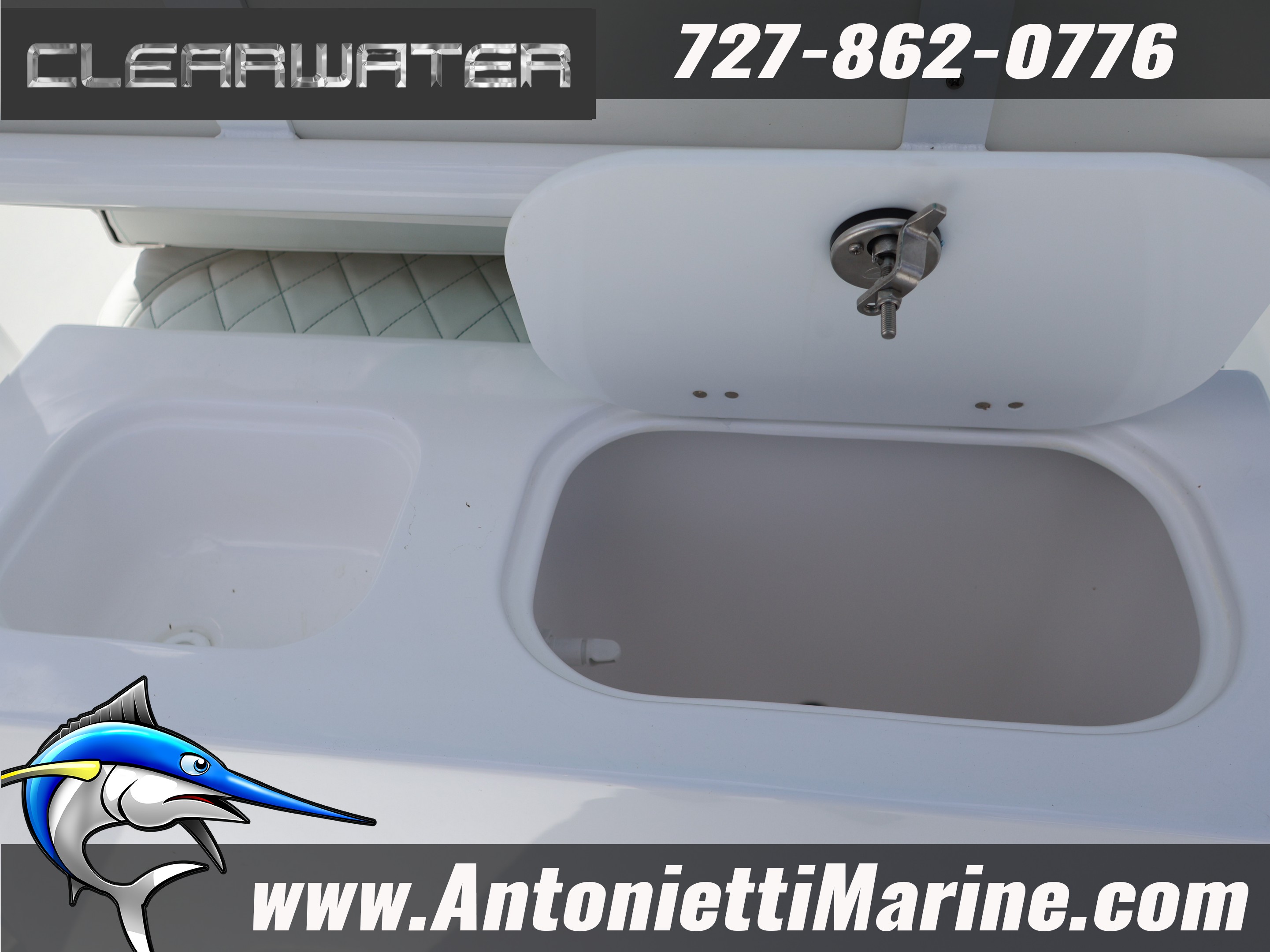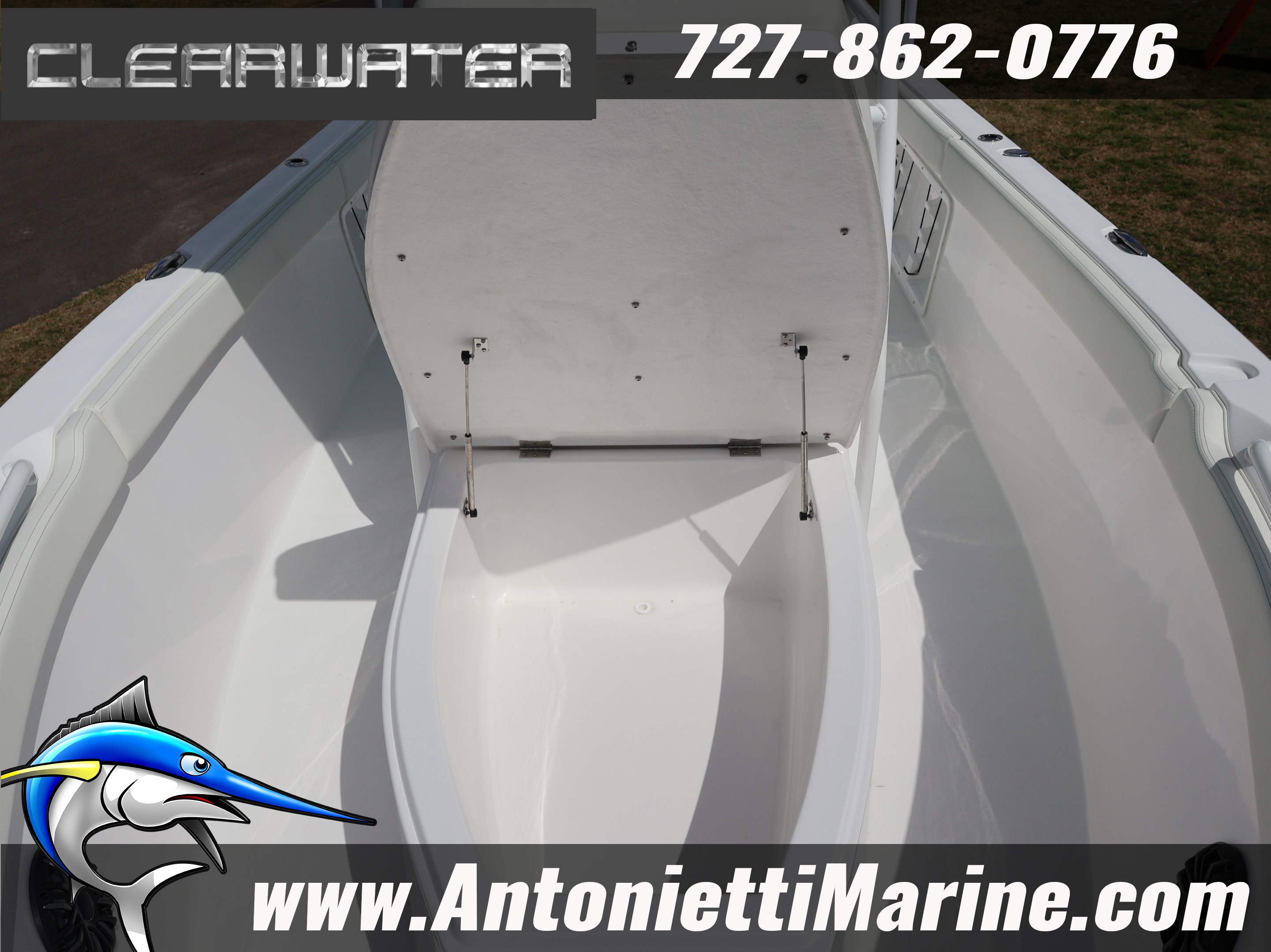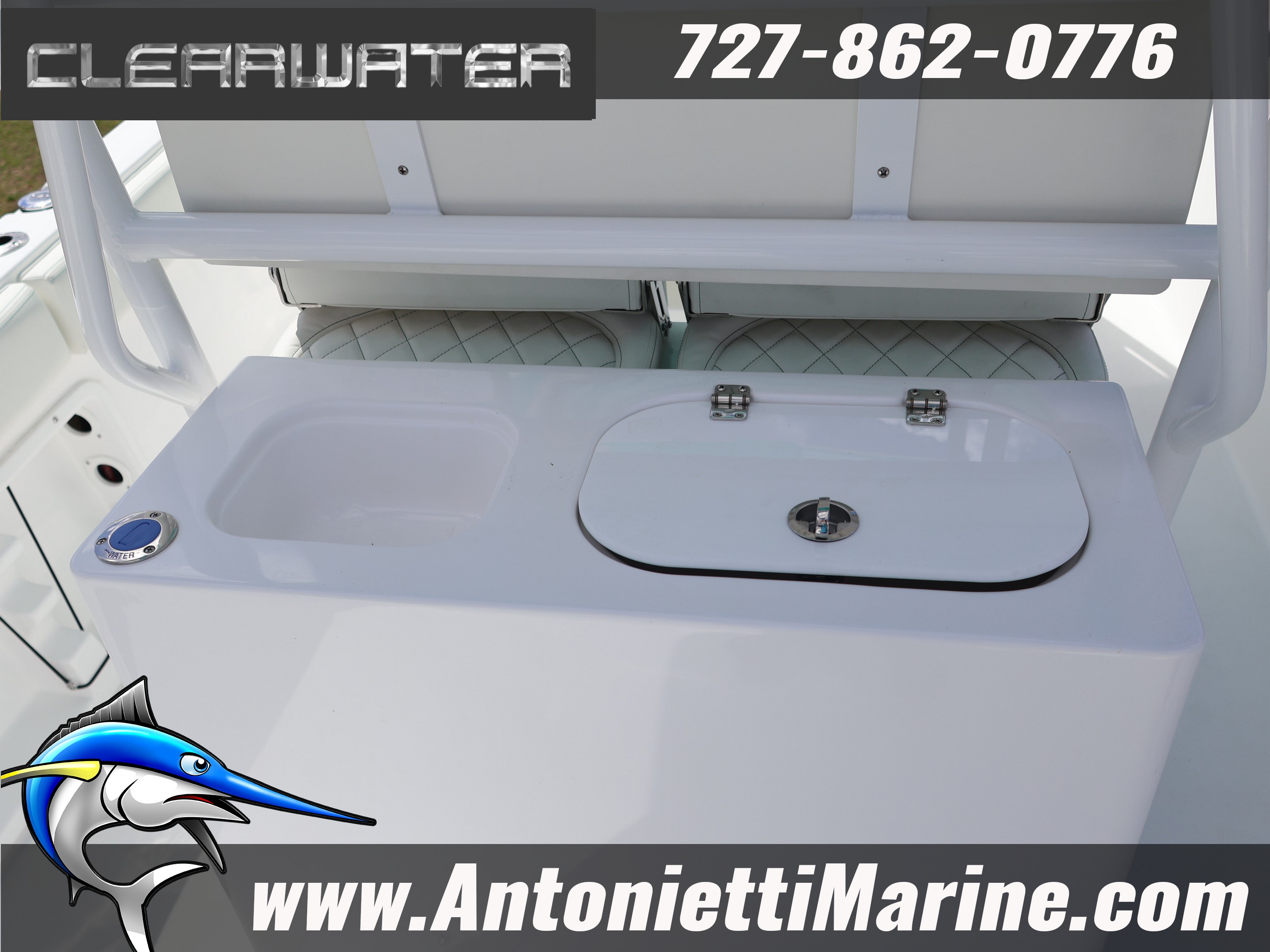 • 45-gallon, lit, aerated live well keeps bait/fish fresh, allows for visibility in the dark, and is centrally located for easy access.