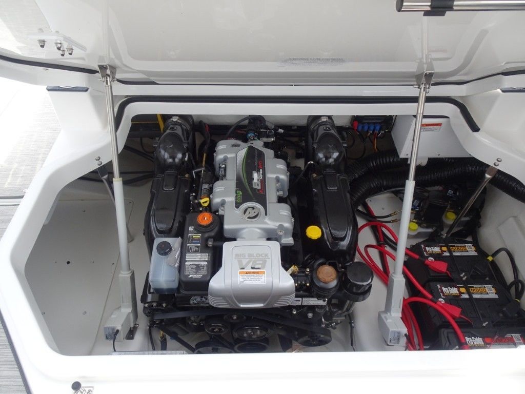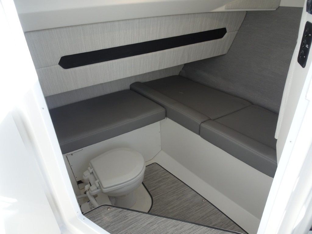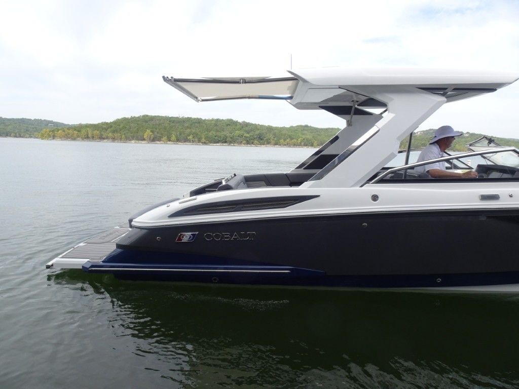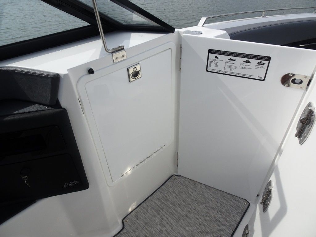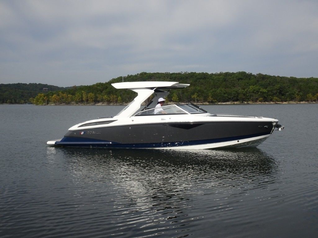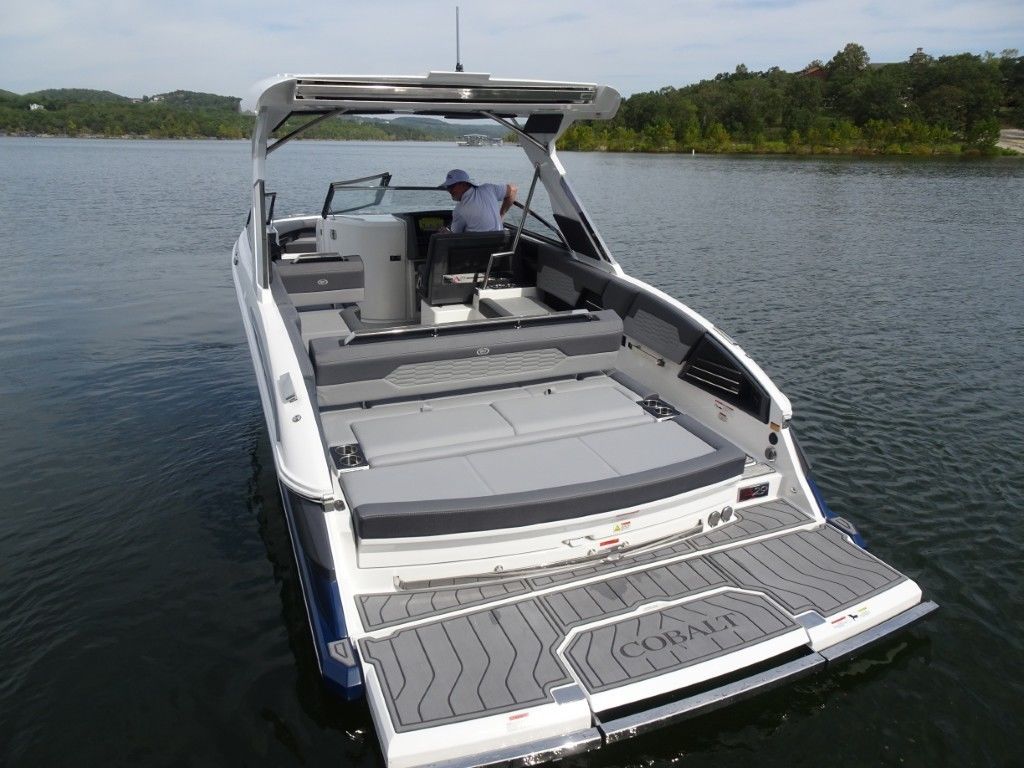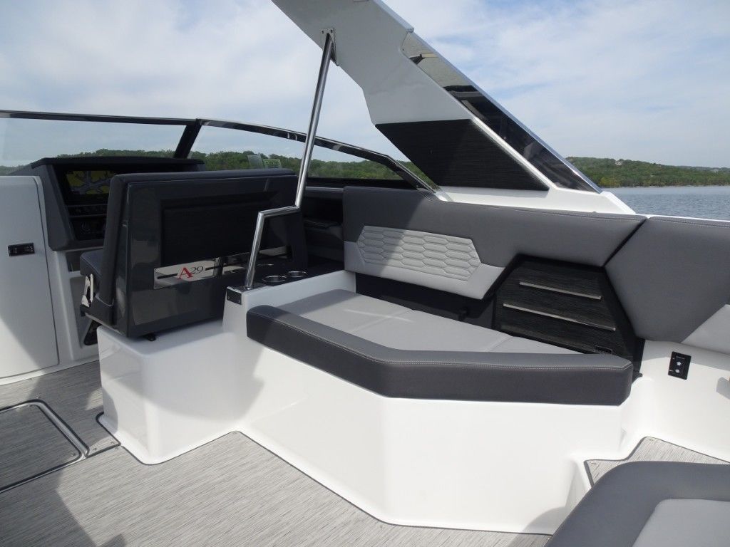 This is a New 2026 Cobalt A29 in a 3-color Custom Graphite Gray w/Navy Accent Stripe and Frost/Slate Interior. It is powered by a Mercruiser 8.2L MAG HO 430hp DTS Dual Prop and has the following options: