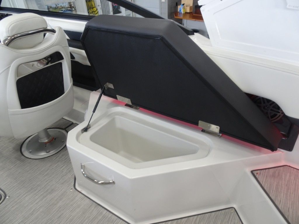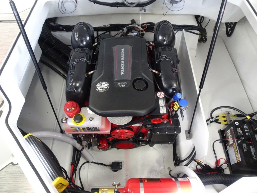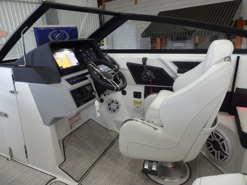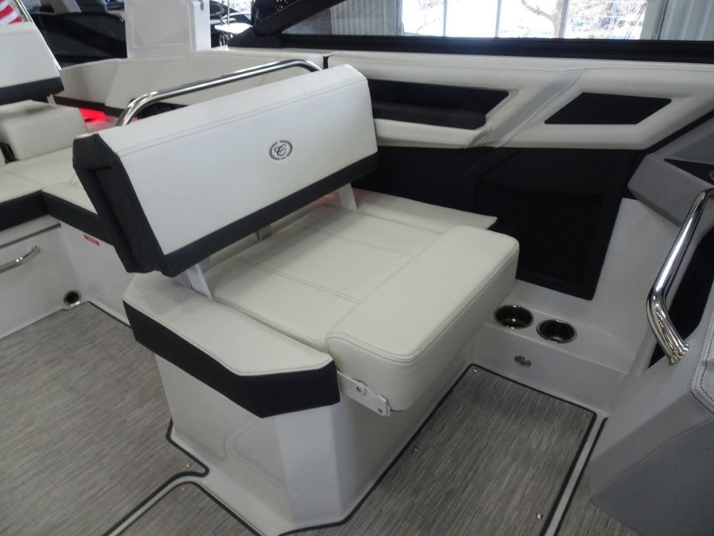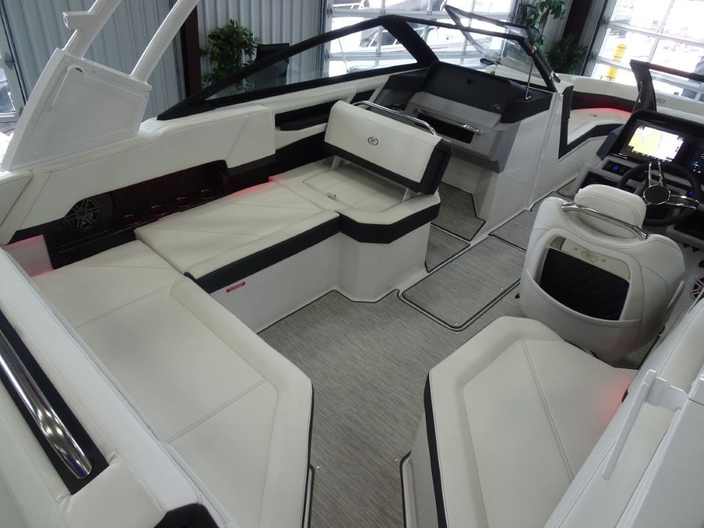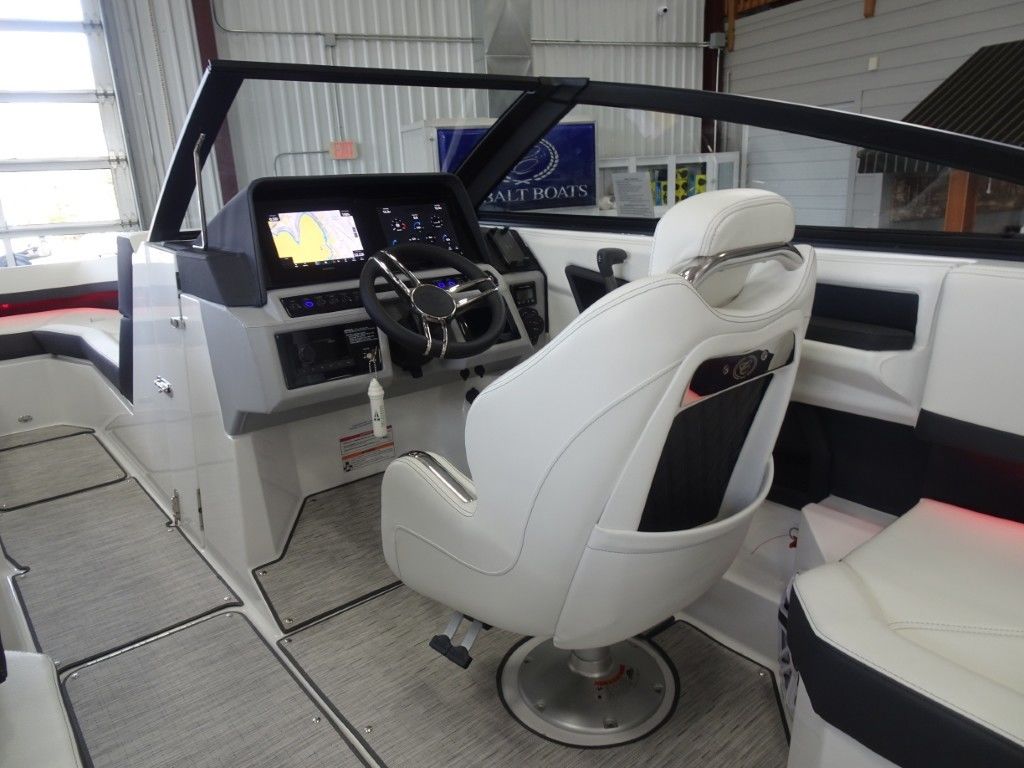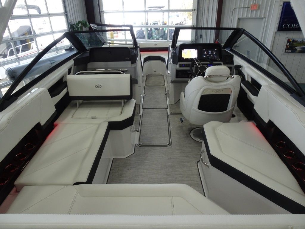 This is a new 2026 Cobalt R4 with a Sport Red Accent and Summit/Frost Interior. It is powered by a Volvo Penta 300hp EVC Dual Prop and has the following options: