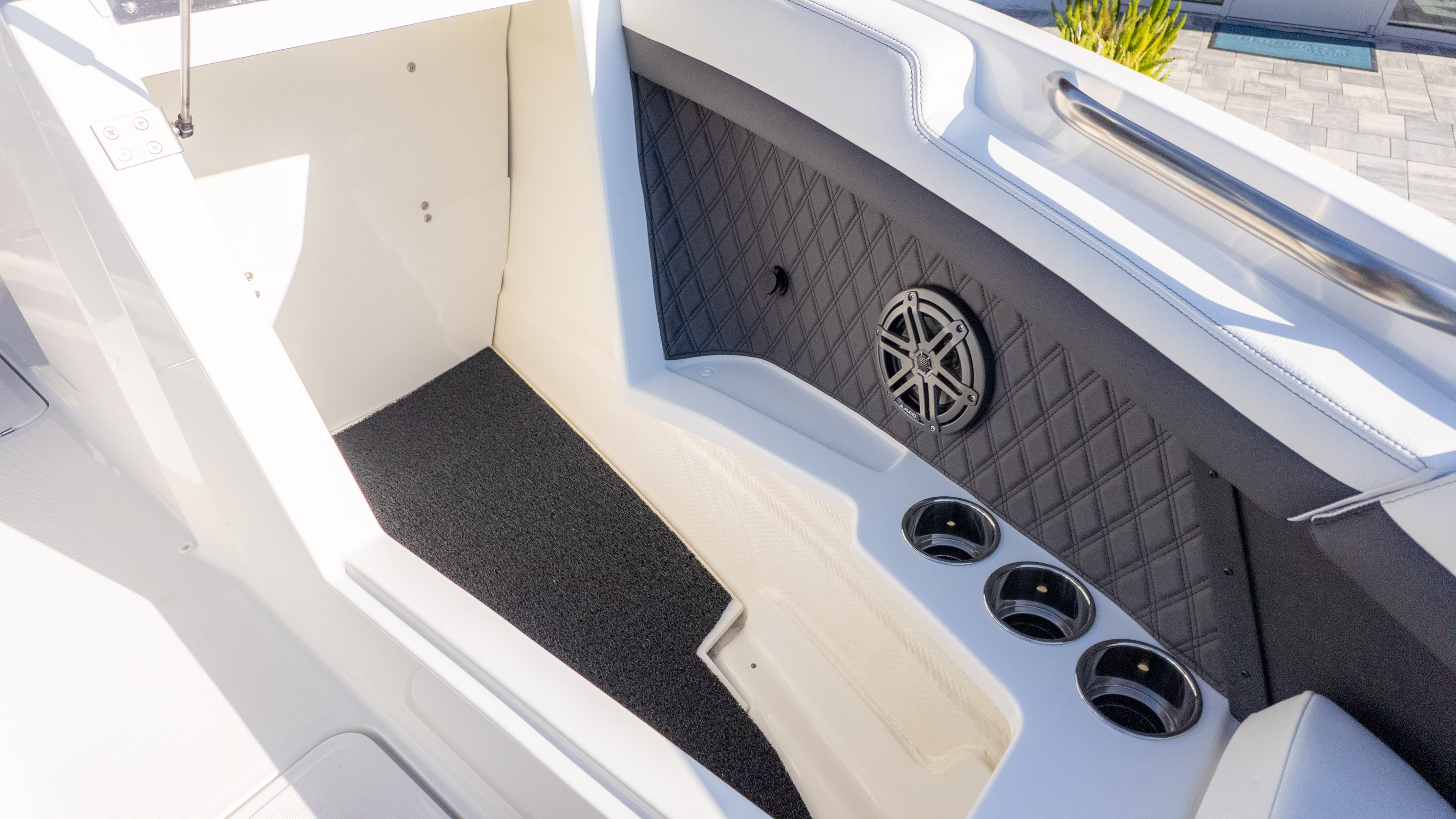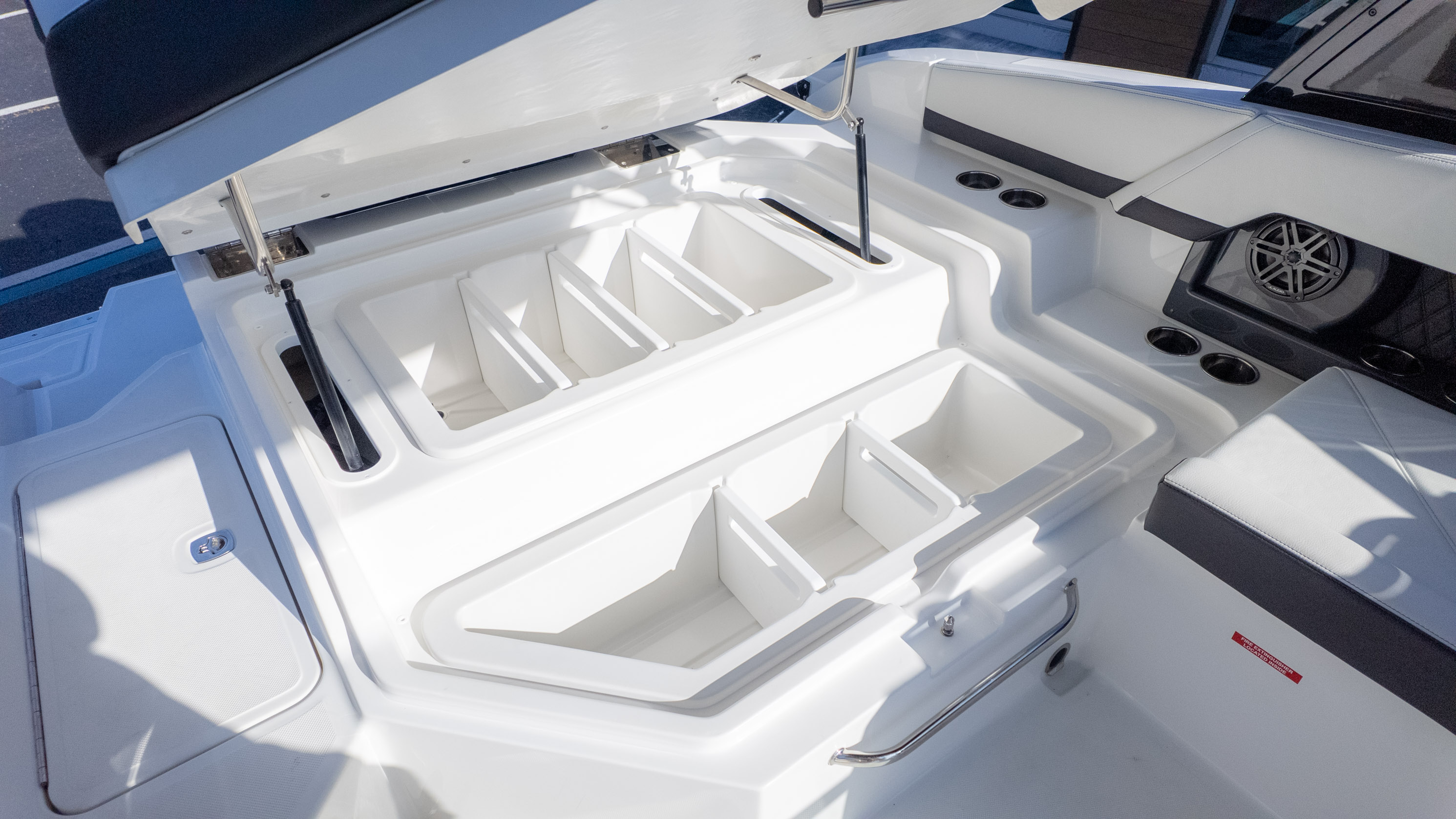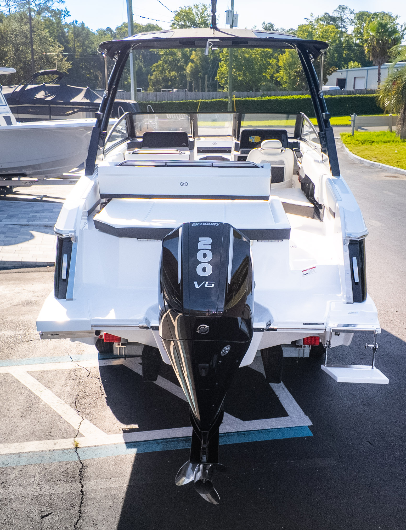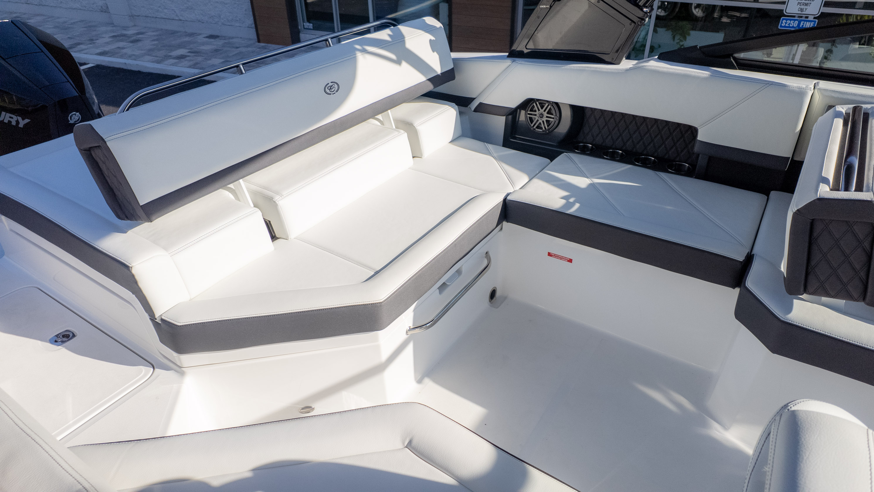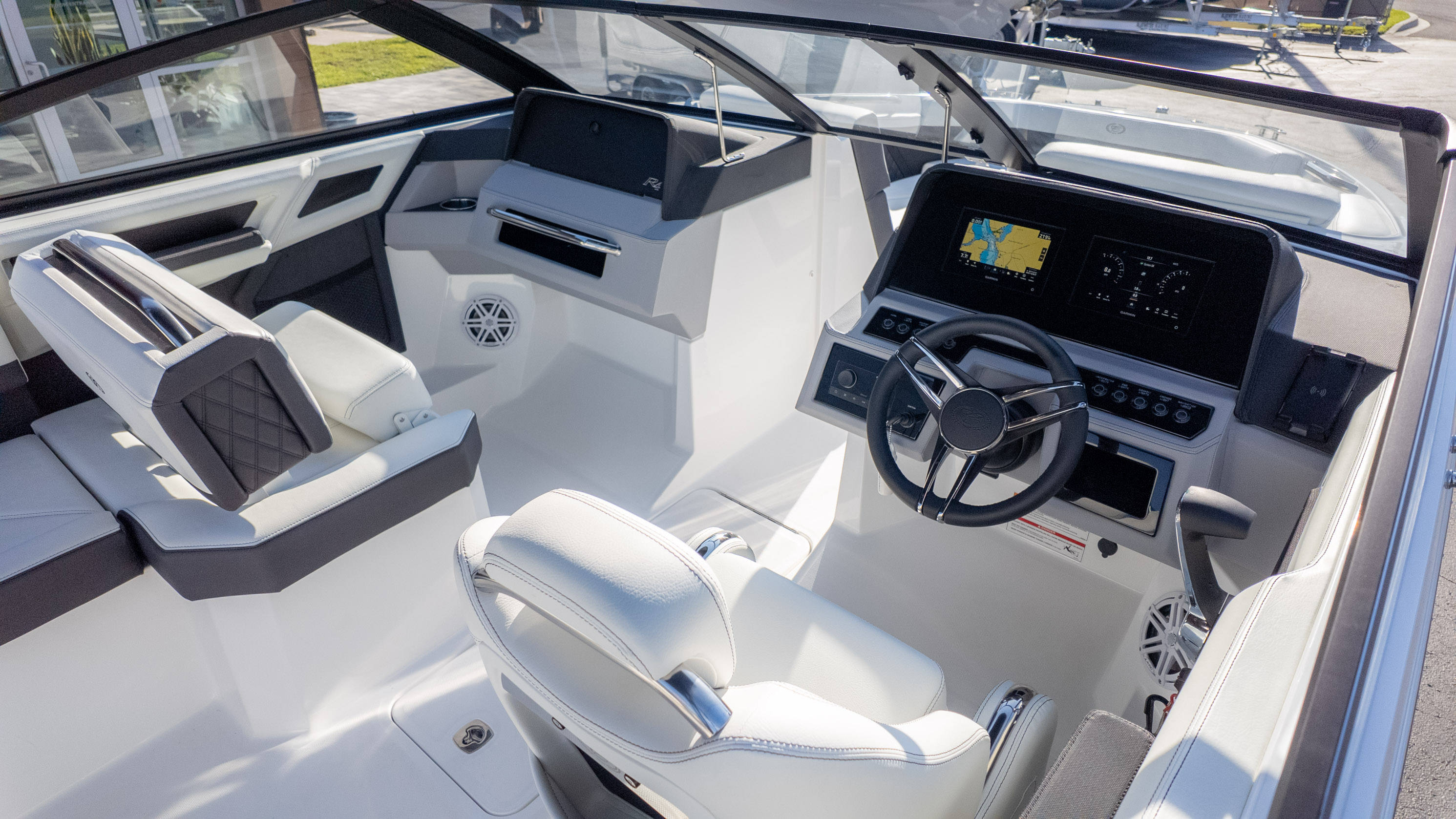 For the water sports enthusiast, this boat is a dream come true. While specific water sports features aren't detailed, the overall design and spaciousness lend themselves perfectly to a day of tubing, wakeboarding, or simply enjoying the thrill of being on the water. The Swim Step on the starboard side makes re-boarding a breeze after a refreshing dip. With its nimble handling and a sleek design, you'll be the envy of every cove. The R4 Outboard is more than just a boat; it's your ticket to an extraordinary on-water lifestyle.