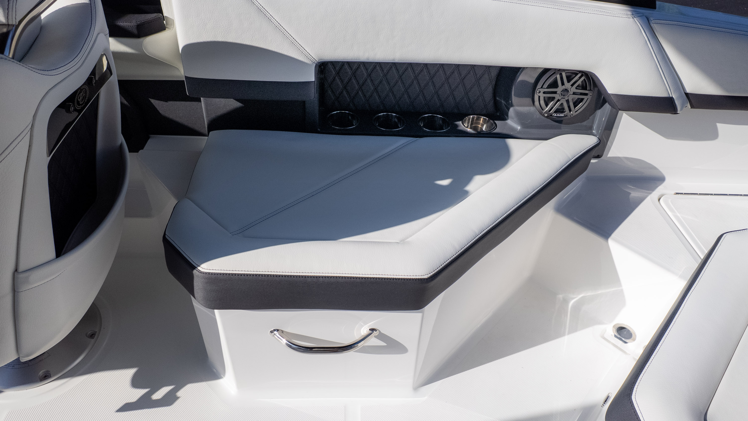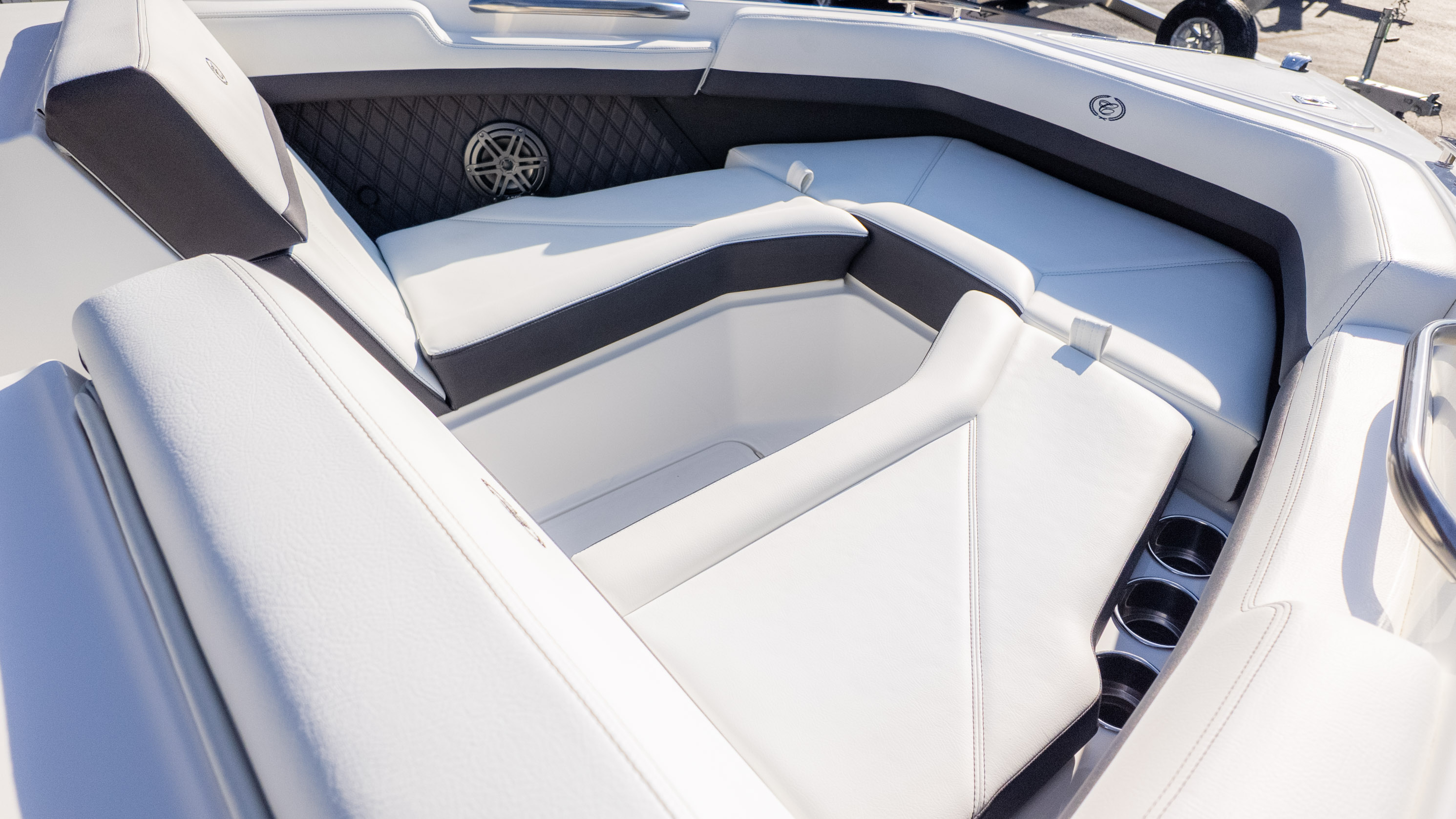 Imagine sun-drenched days with friends and family, cruising across the lake with ease. The R4 Outboard is perfect for those who love to entertain, offering ample space and comfort for everyone on board. Its thoughtful design includes features like the Aft Sunpad Backrest SS Accent Rail and Sundeck Convertible Lounger, inviting you to relax and soak up the sun. The molded-in ice chest means your refreshments are always at hand, keeping the party going strong.