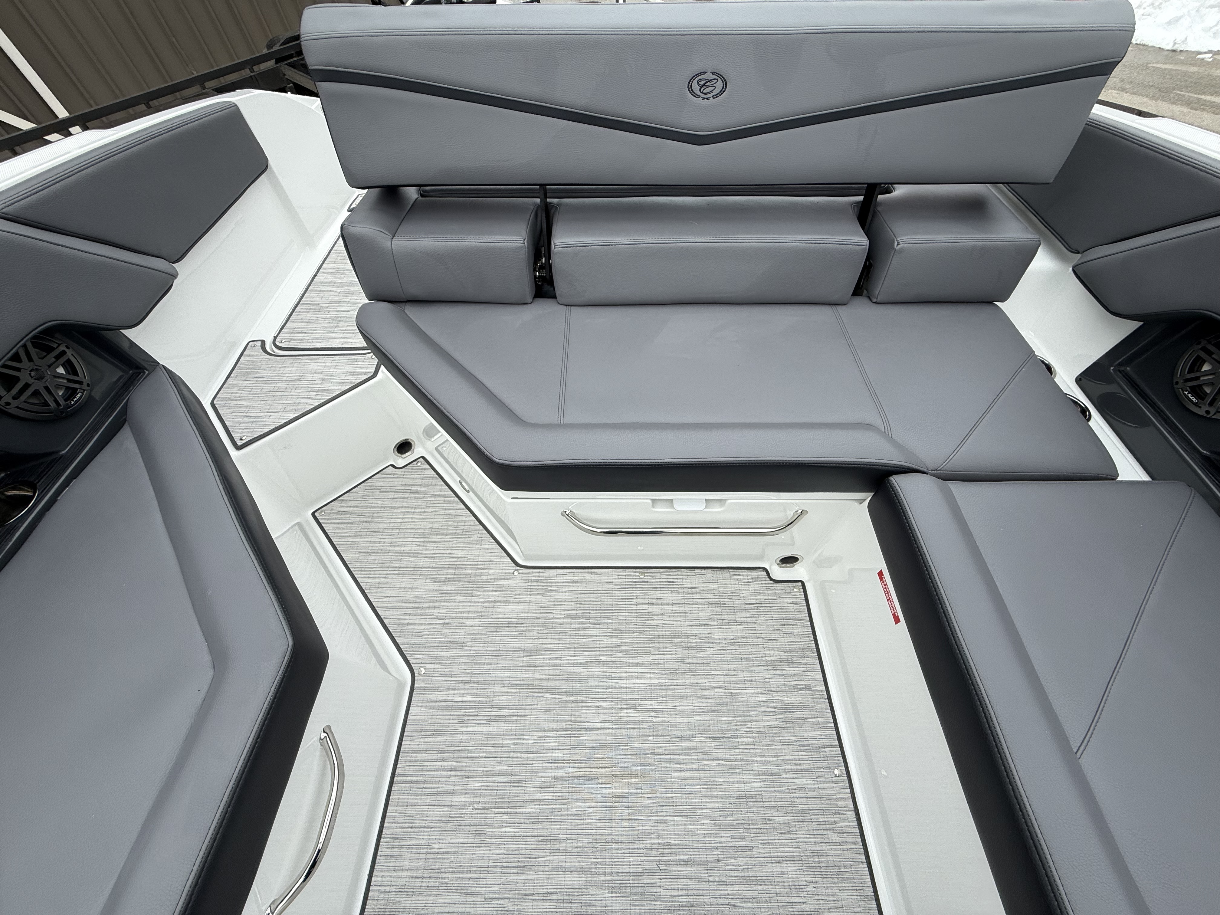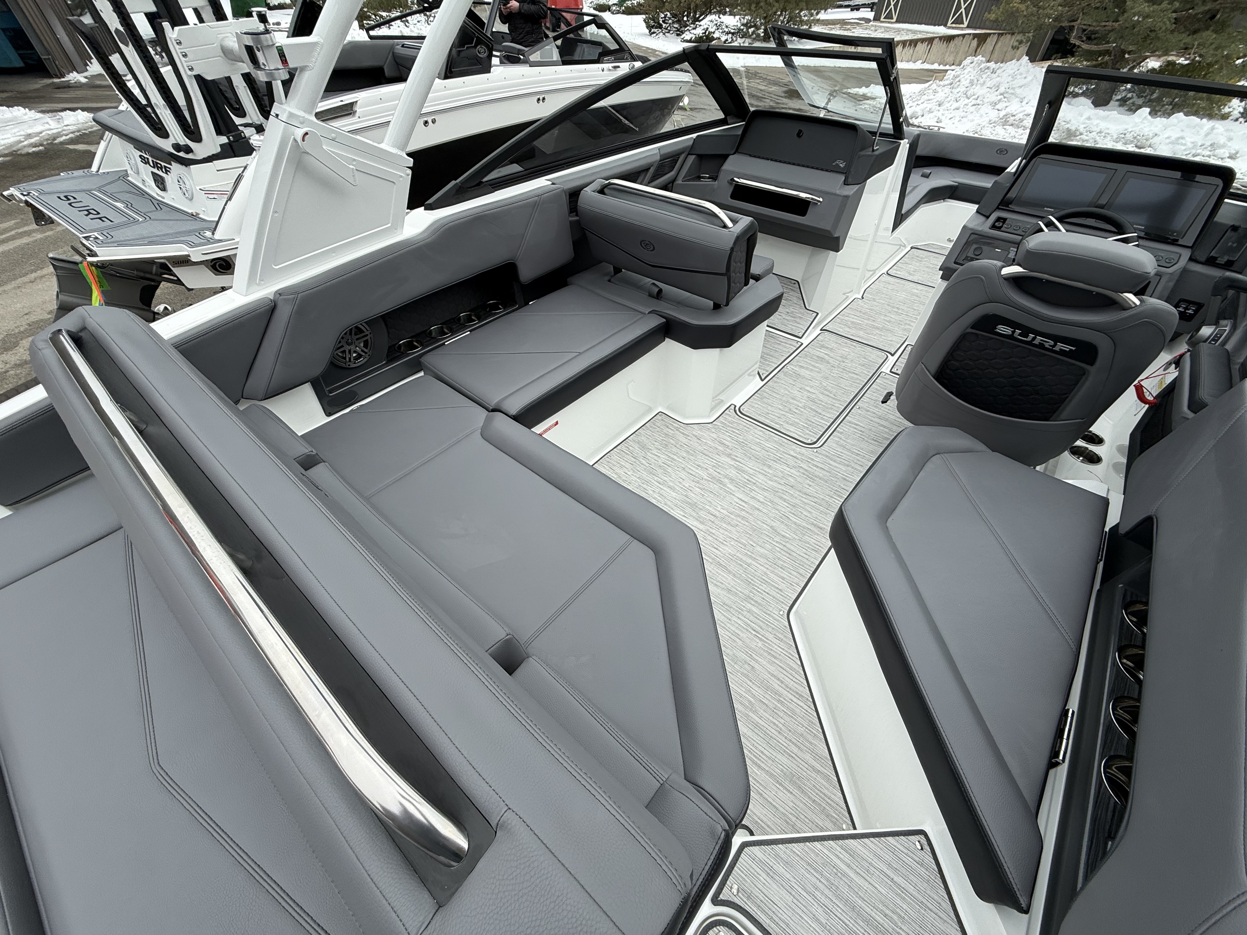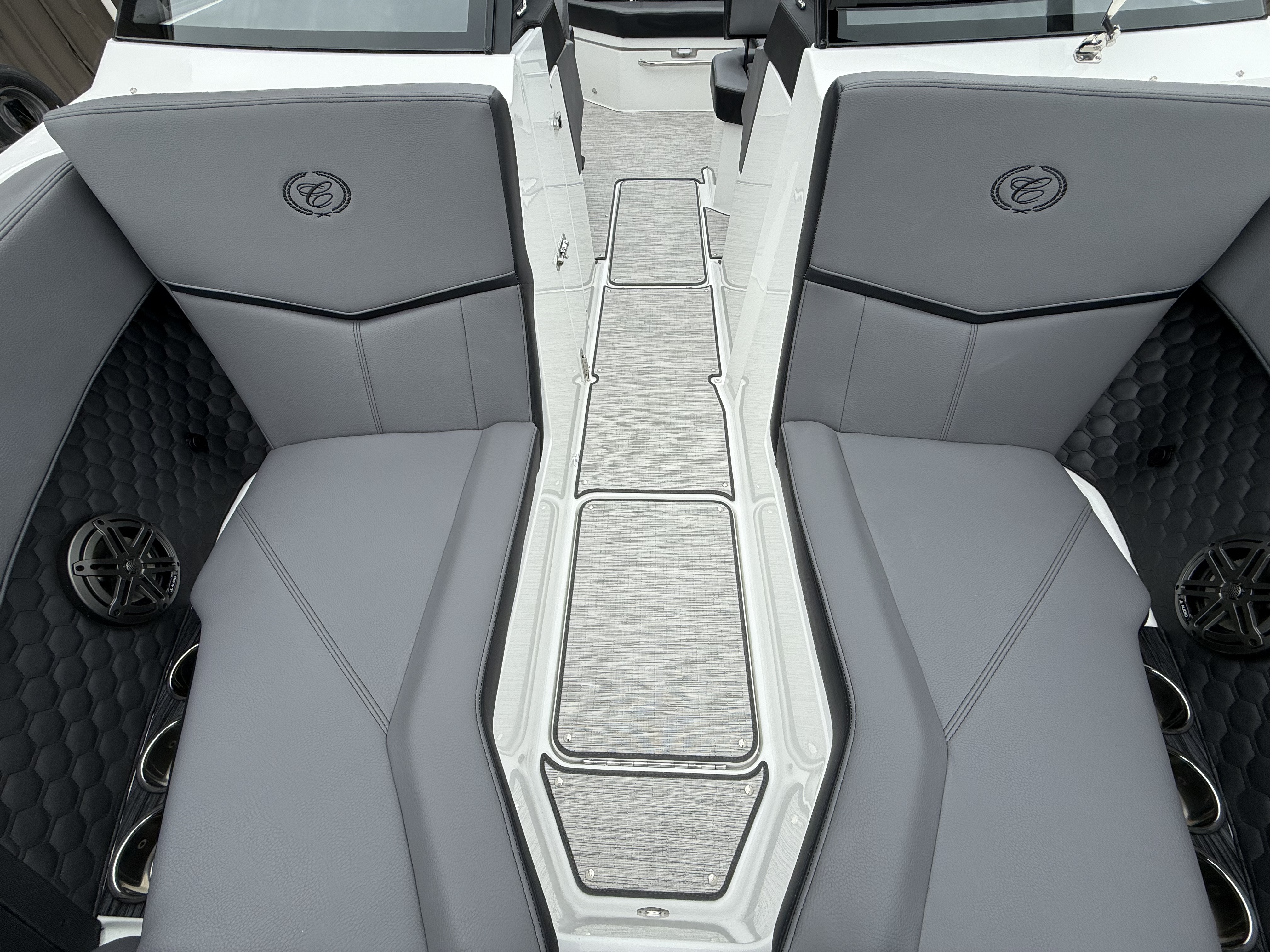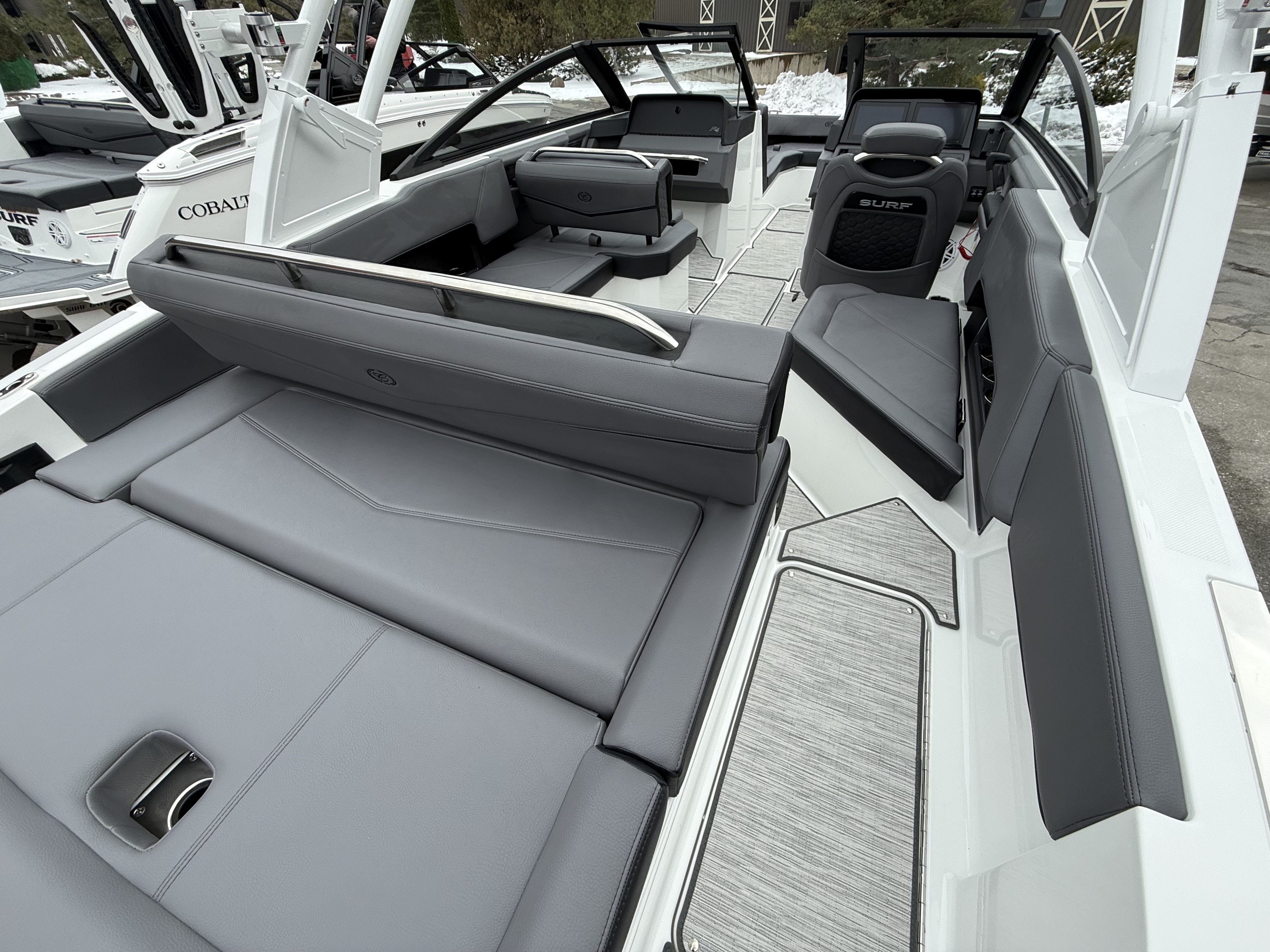 Power comes from a forward-facing Volvo V8 300HP engine, engineered specifically for surf performance and smooth handling. Combined with Cobalt’s advanced surf system and precision trim tabs, the R4 Surf creates clean, customizable waves with remarkable consistency — perfect for beginners learning their first ride or experienced surfers chasing the ideal endless set.