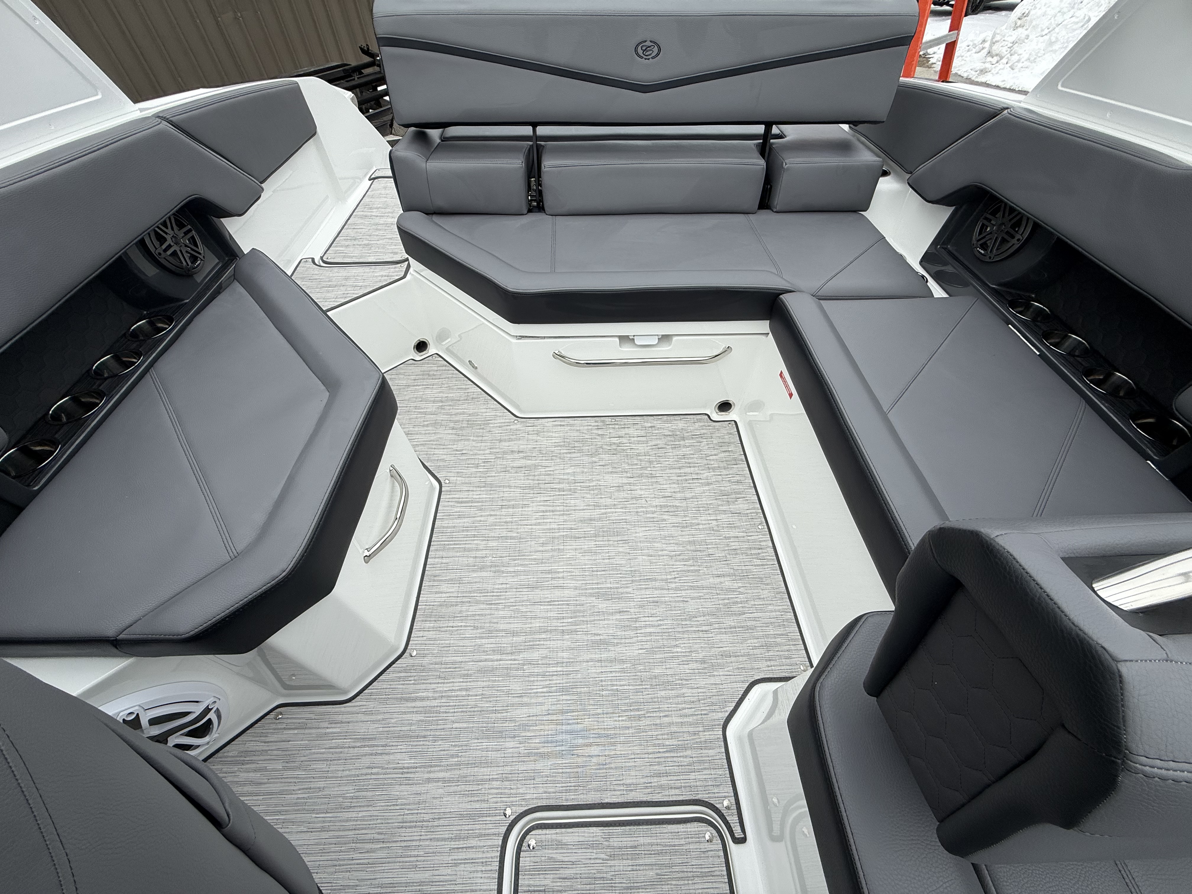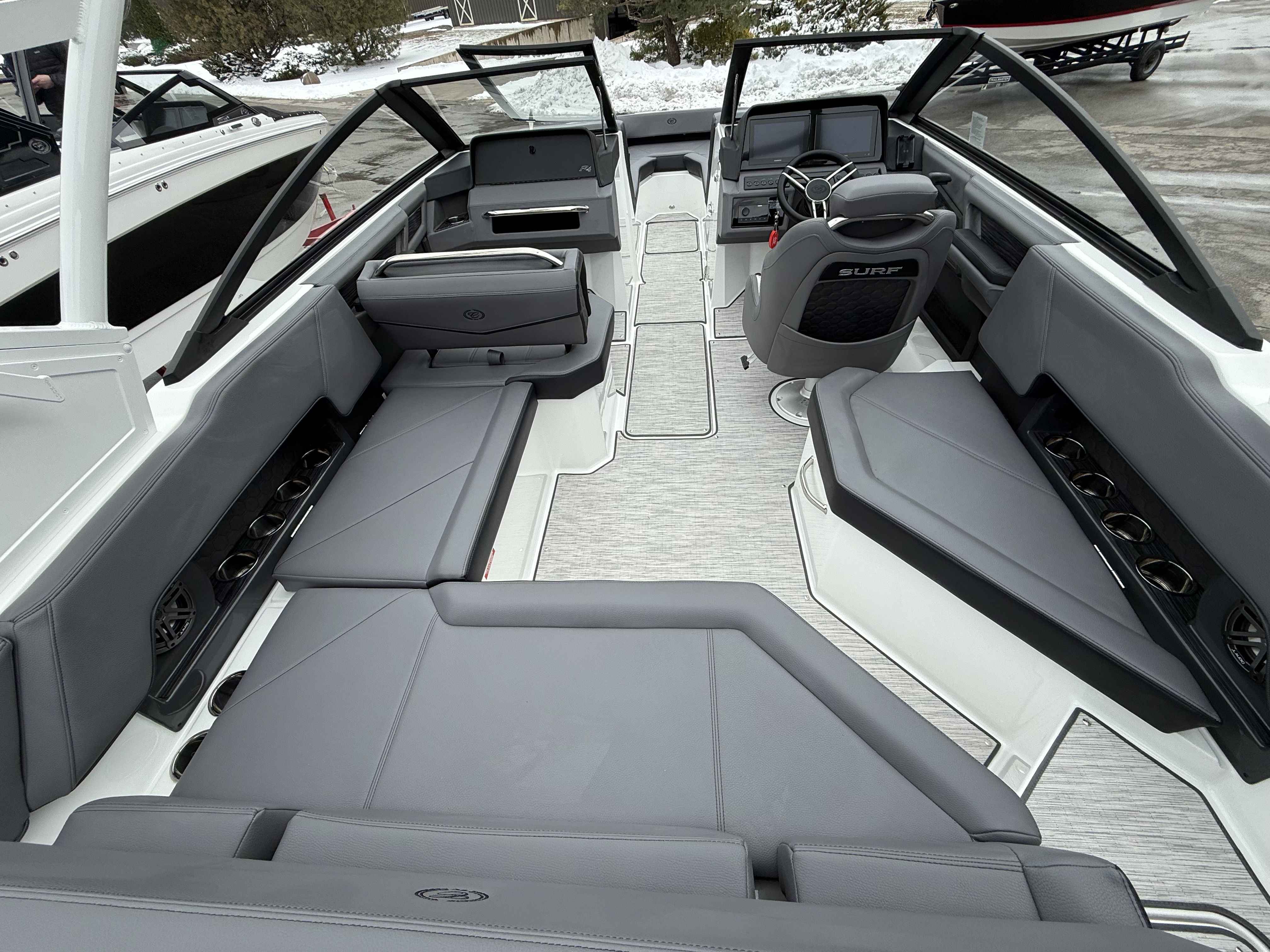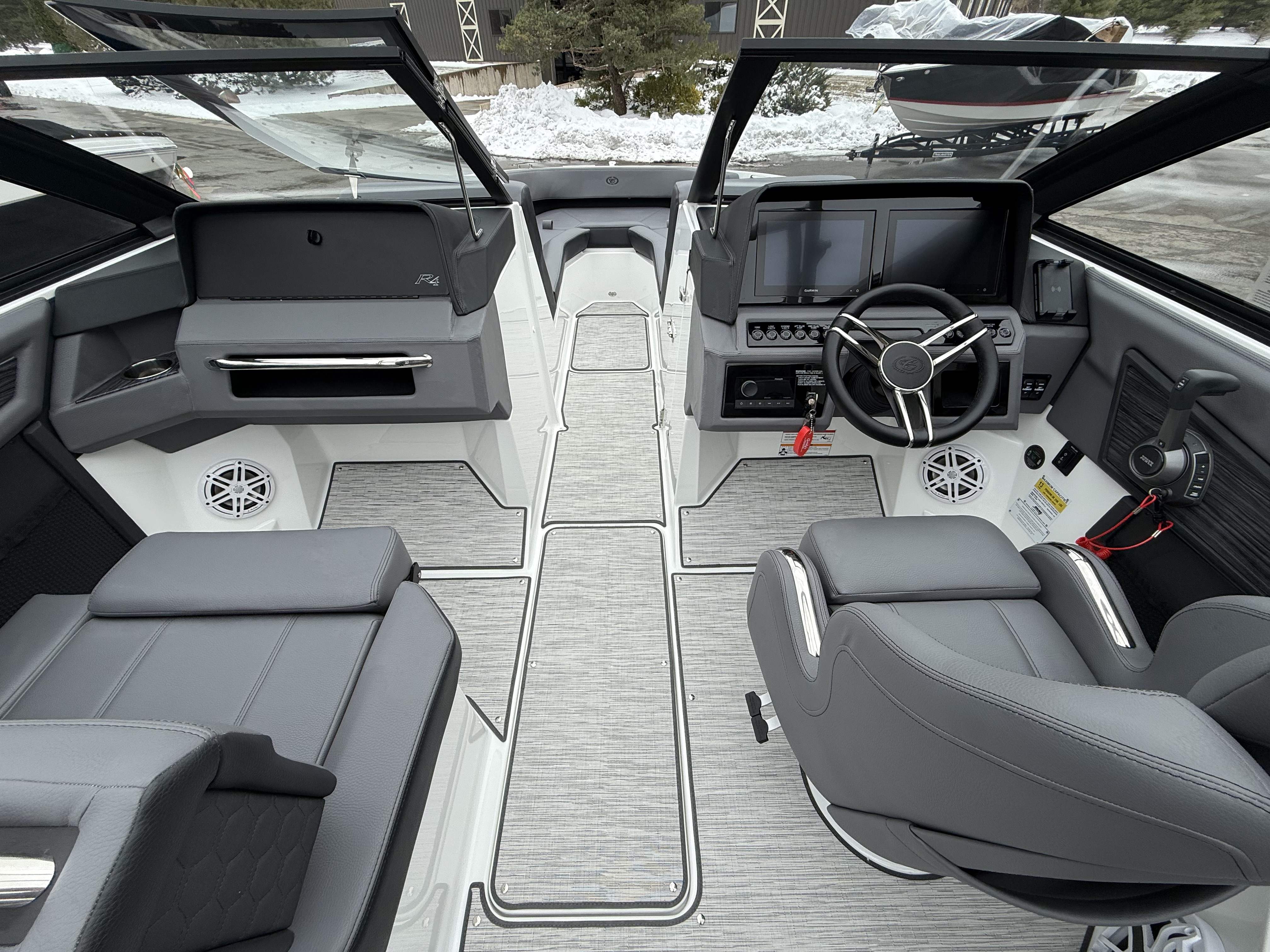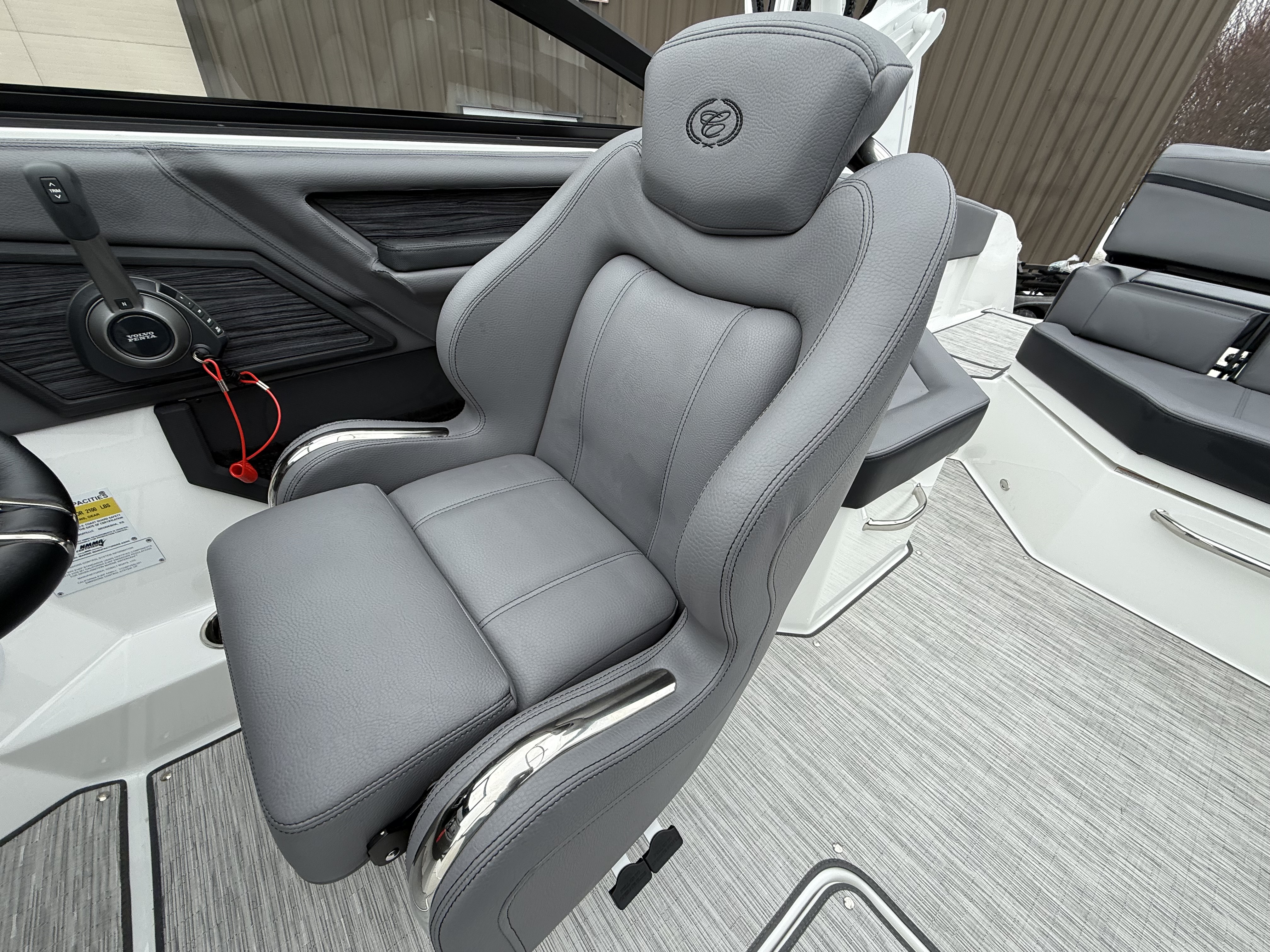 Power comes from a forward-facing Volvo V8 300HP engine, engineered specifically for surf performance and smooth handling. Combined with Cobalt’s advanced surf system and precision trim tabs, the R4 Surf creates clean, customizable waves with remarkable consistency — perfect for beginners learning their first ride or experienced surfers chasing the ideal endless set.