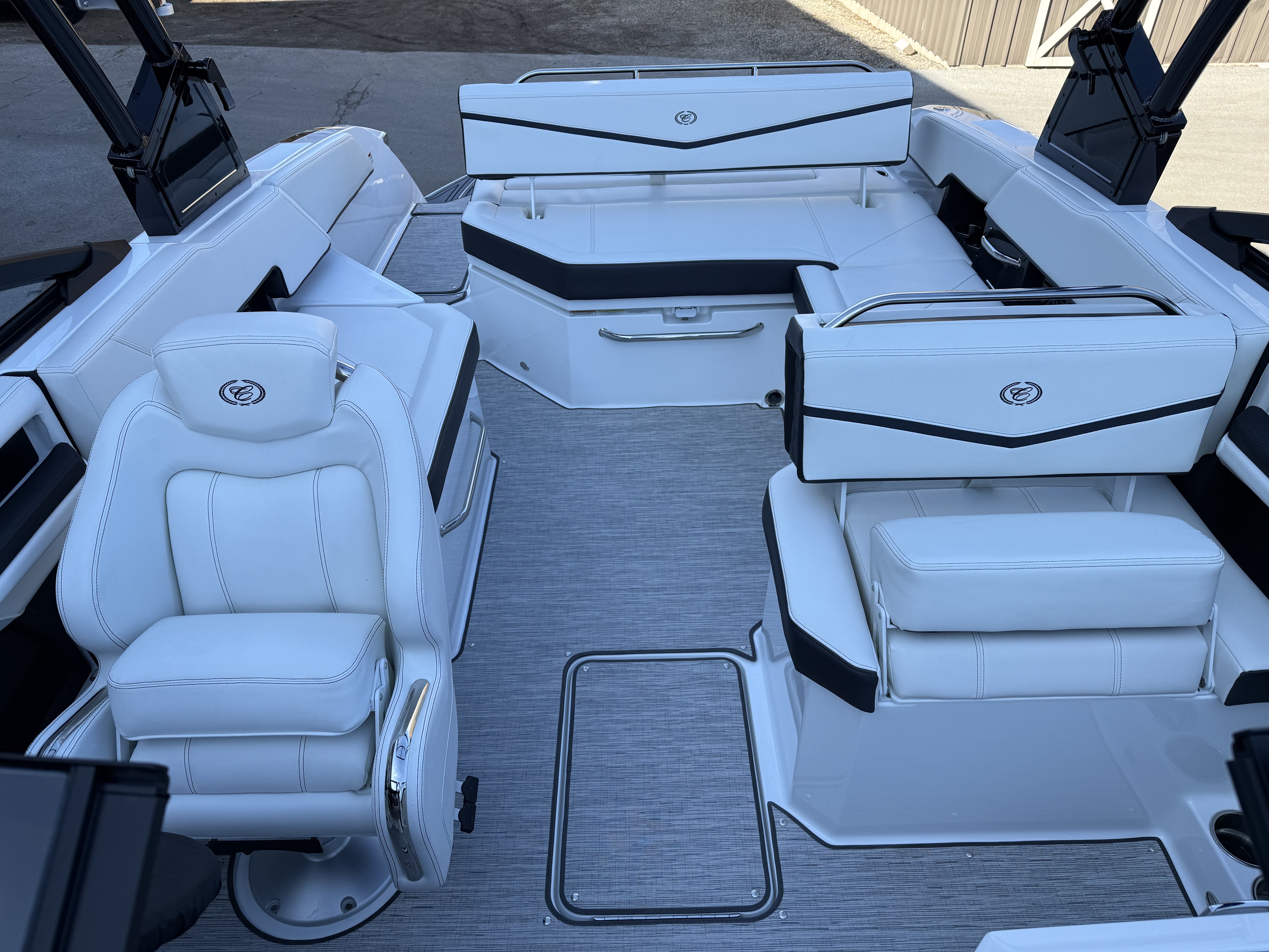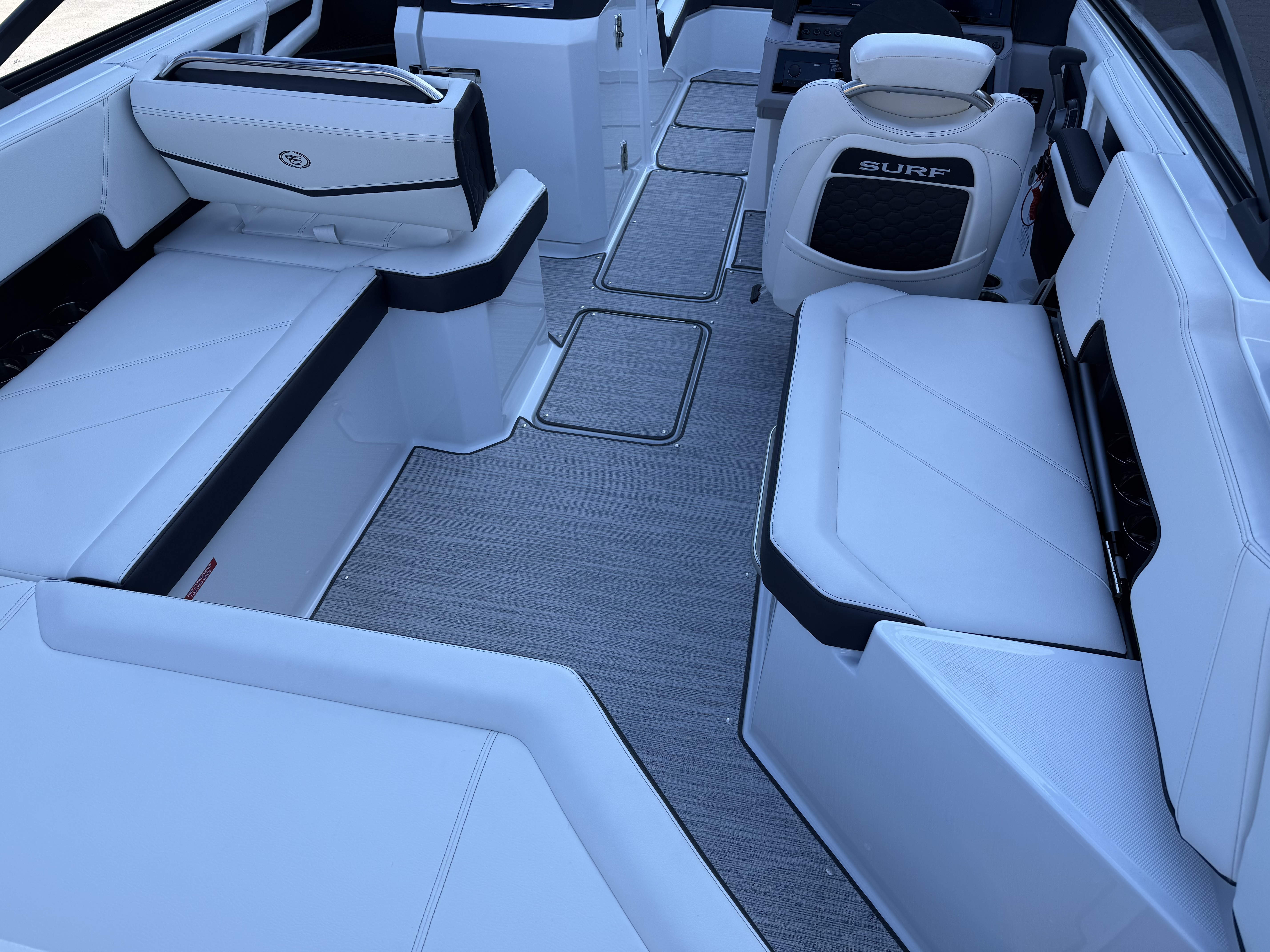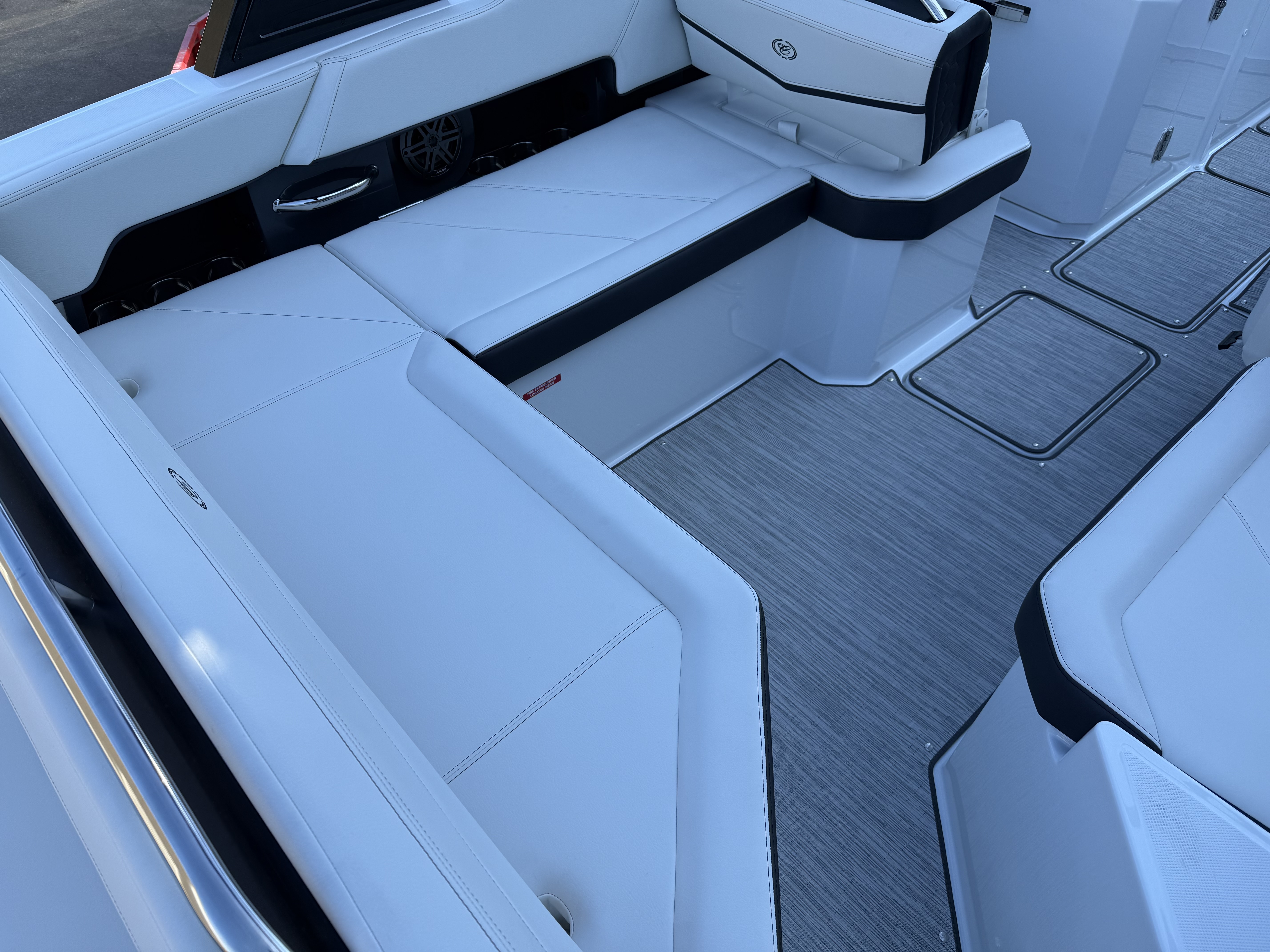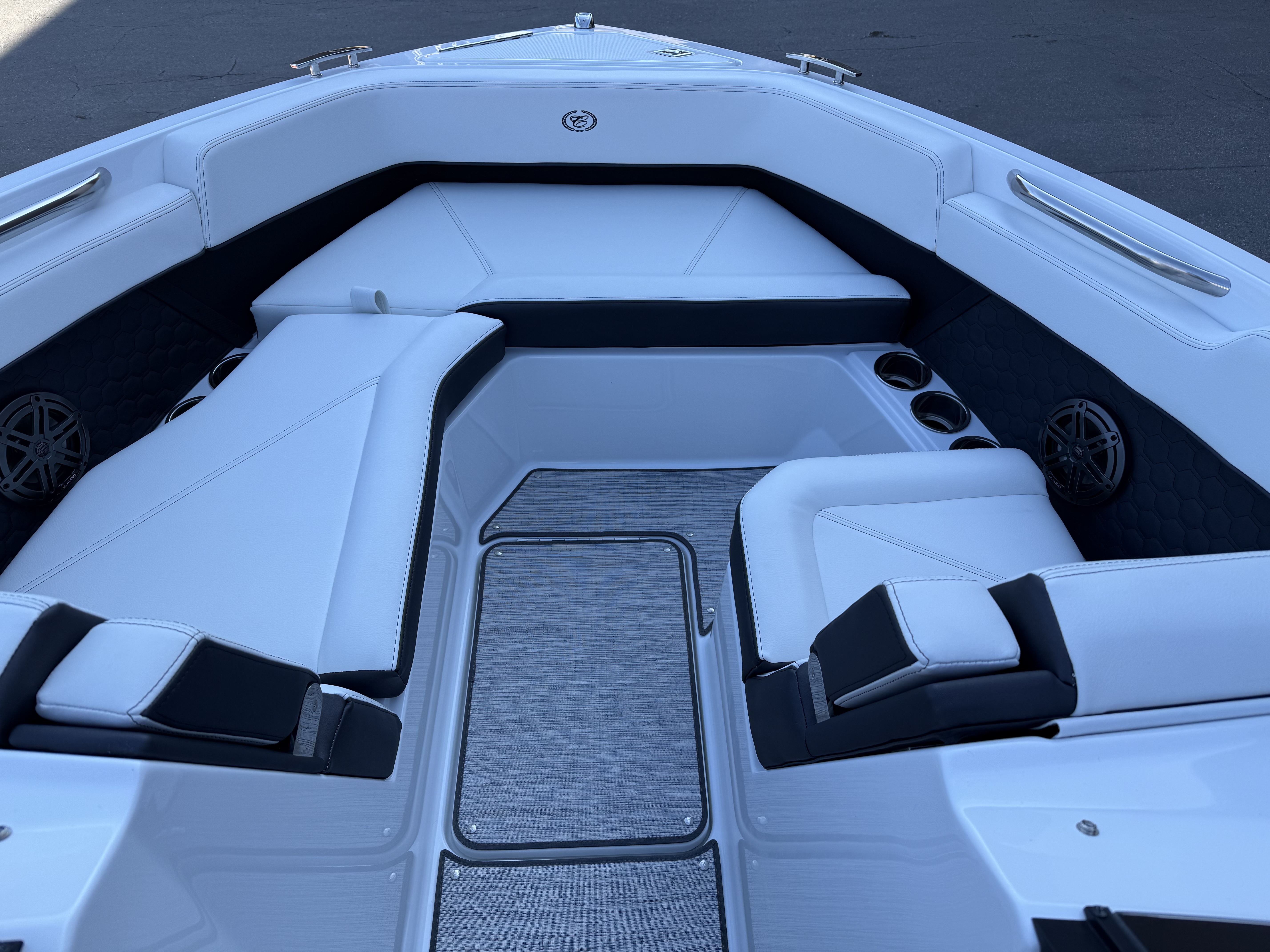 Finished in a bold Graphite Gray, Ebony, and White exterior, this R6 Surf carries an unmistakable presence on the water. Step aboard and you’re welcomed by a refined Summit/Frost interior, delivering a crisp, upscale contrast that feels both modern and timeless.
