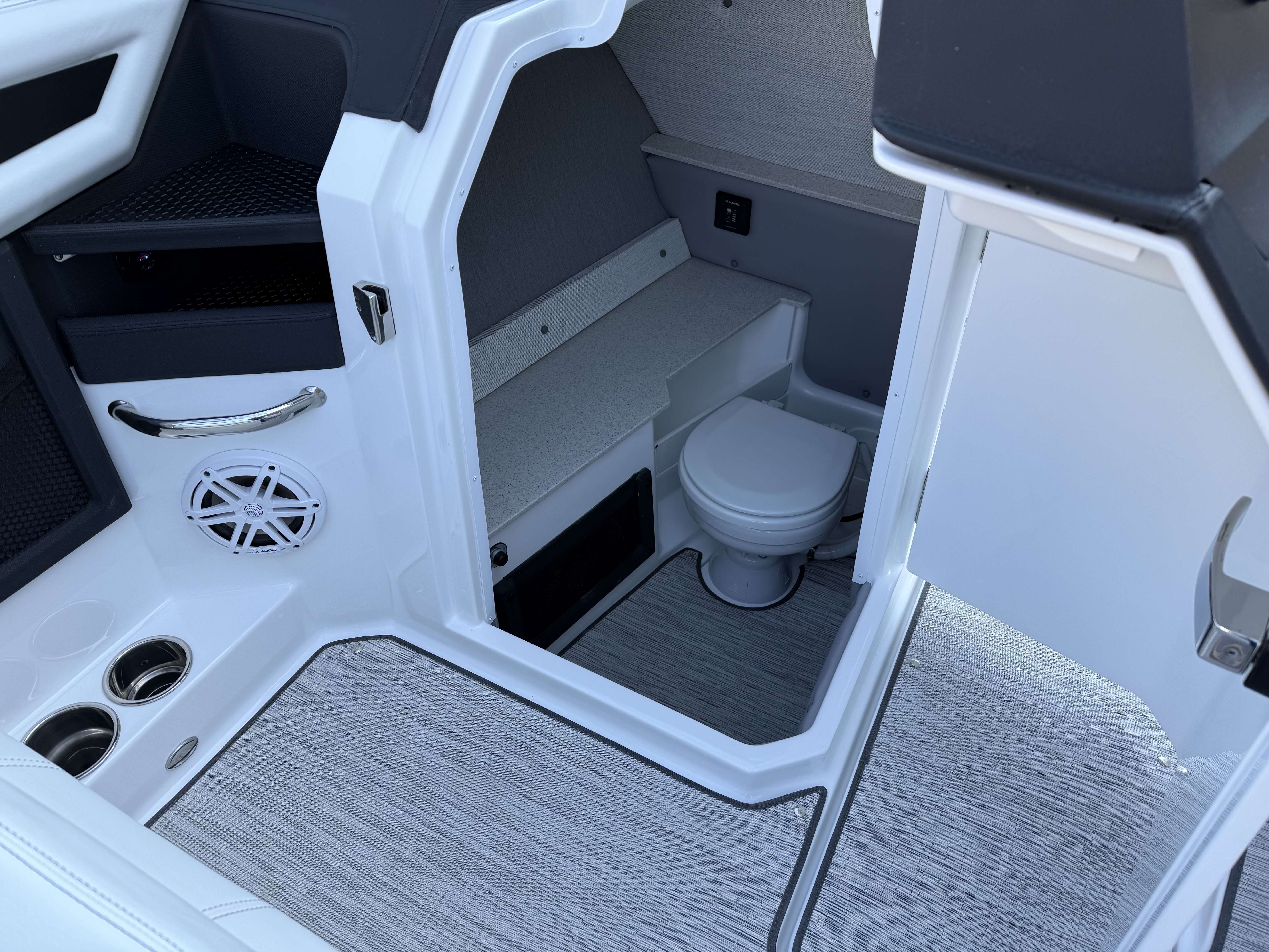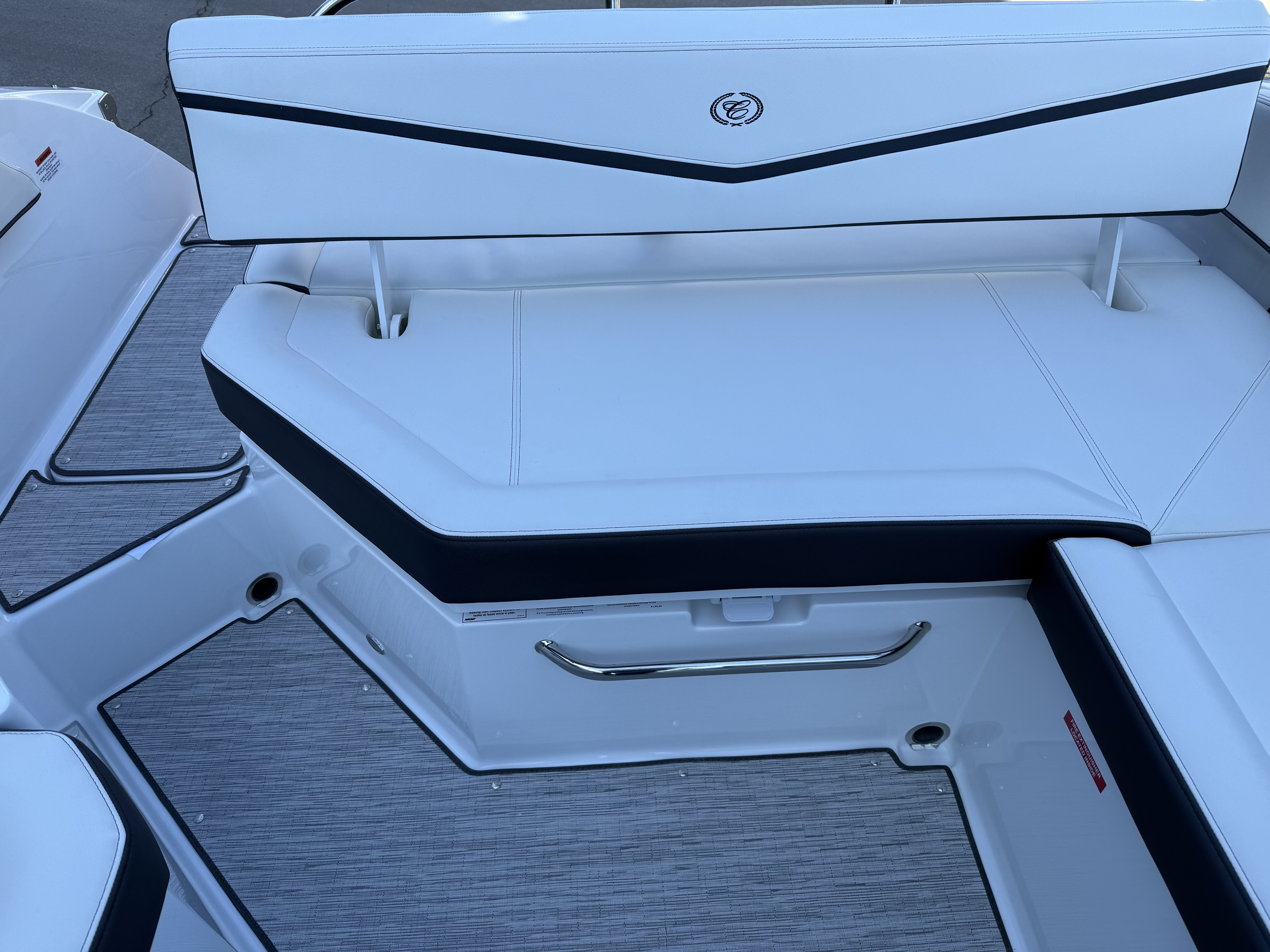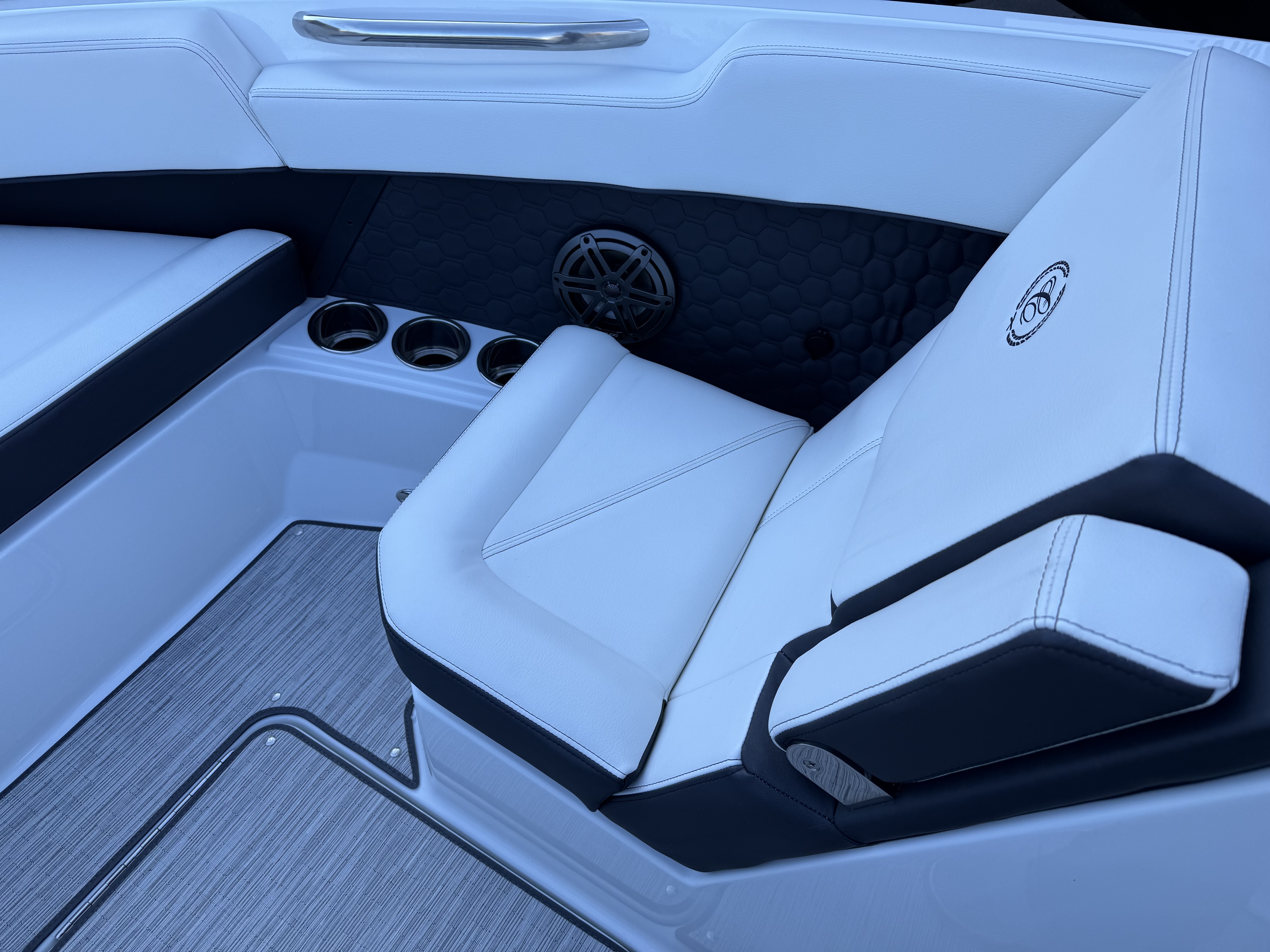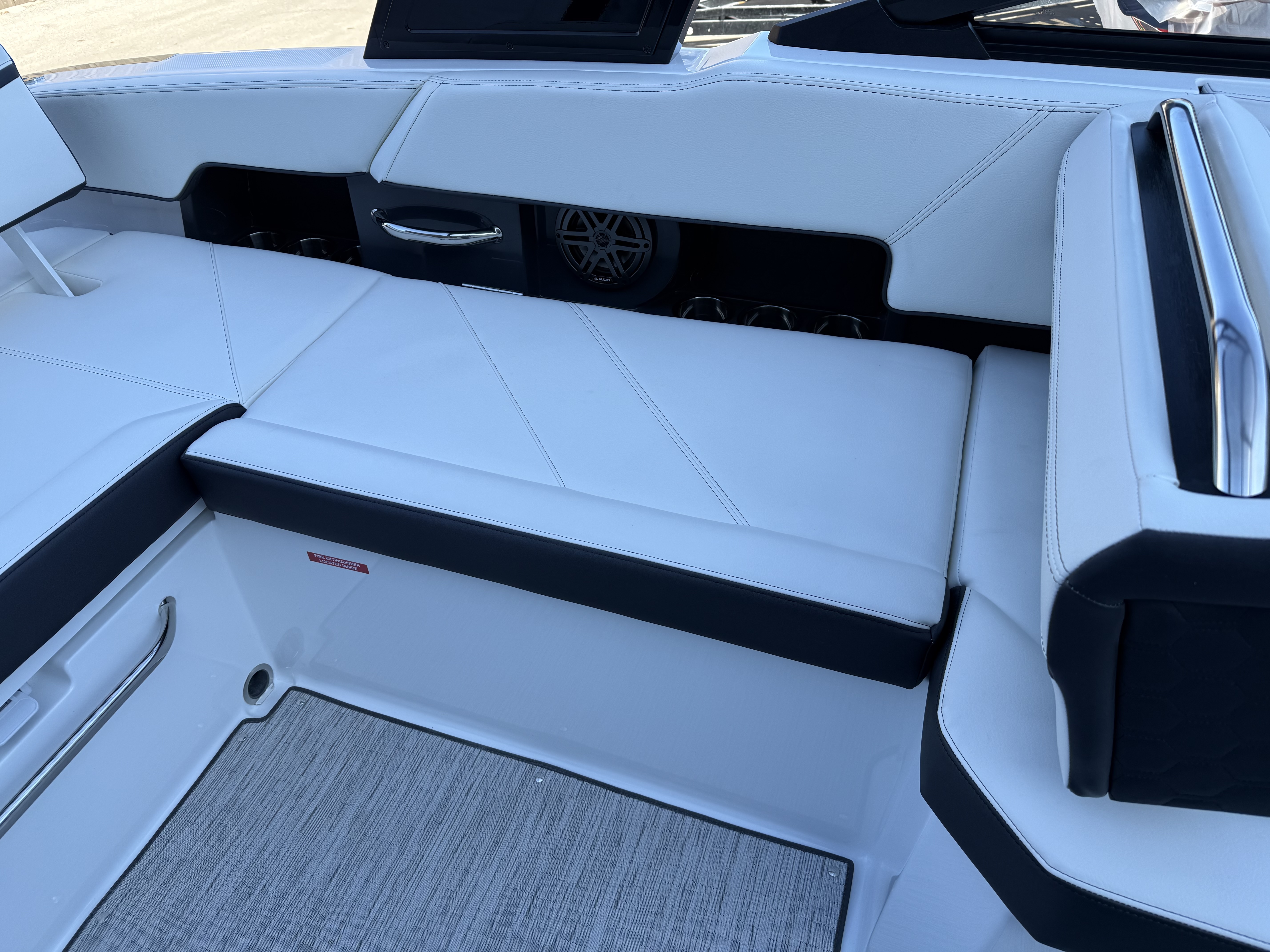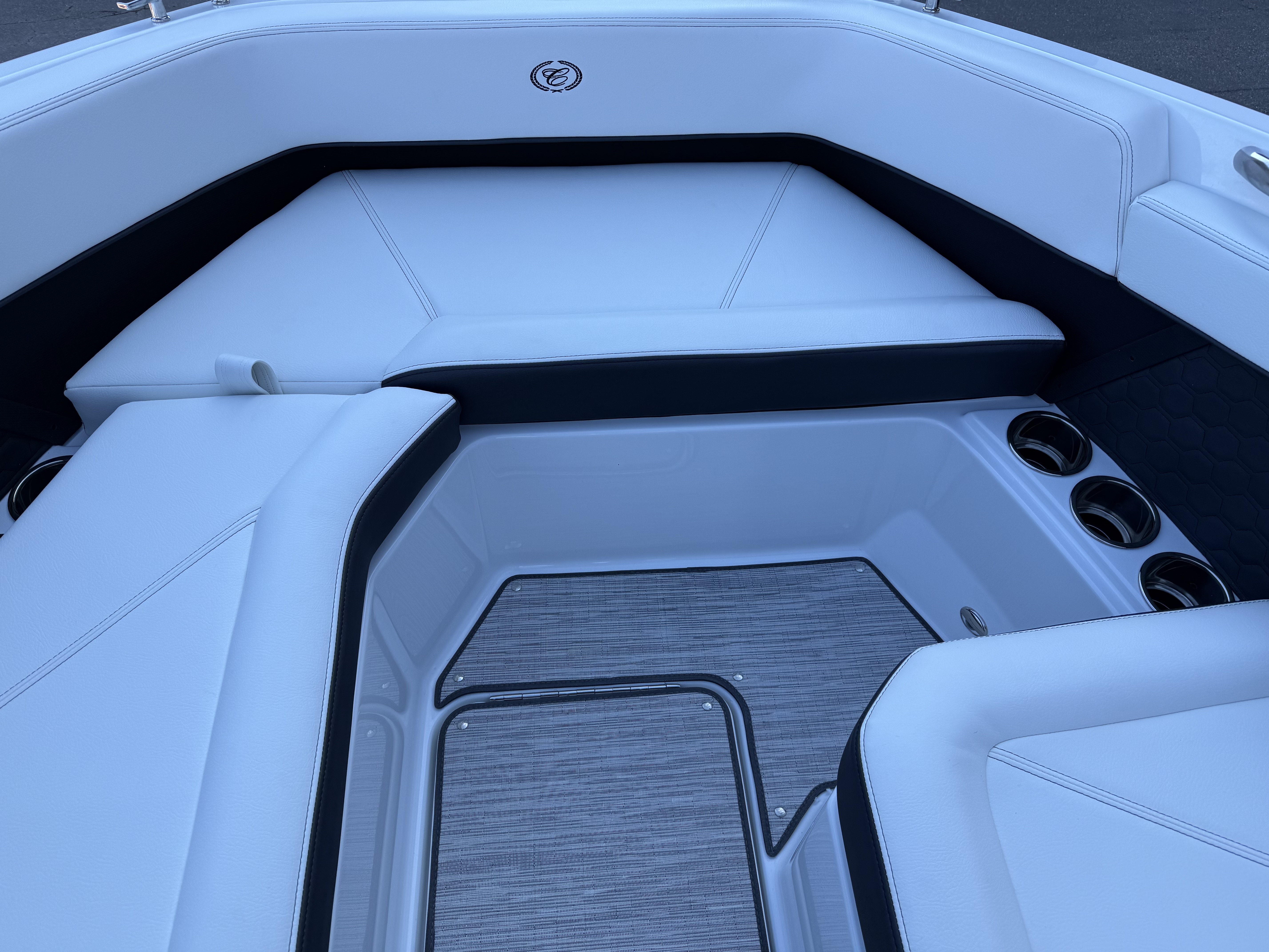 Finished in a bold Graphite Gray, Ebony, and White exterior, this R6 Surf carries an unmistakable presence on the water. Step aboard and you’re welcomed by a refined Summit/Frost interior, delivering a crisp, upscale contrast that feels both modern and timeless.
