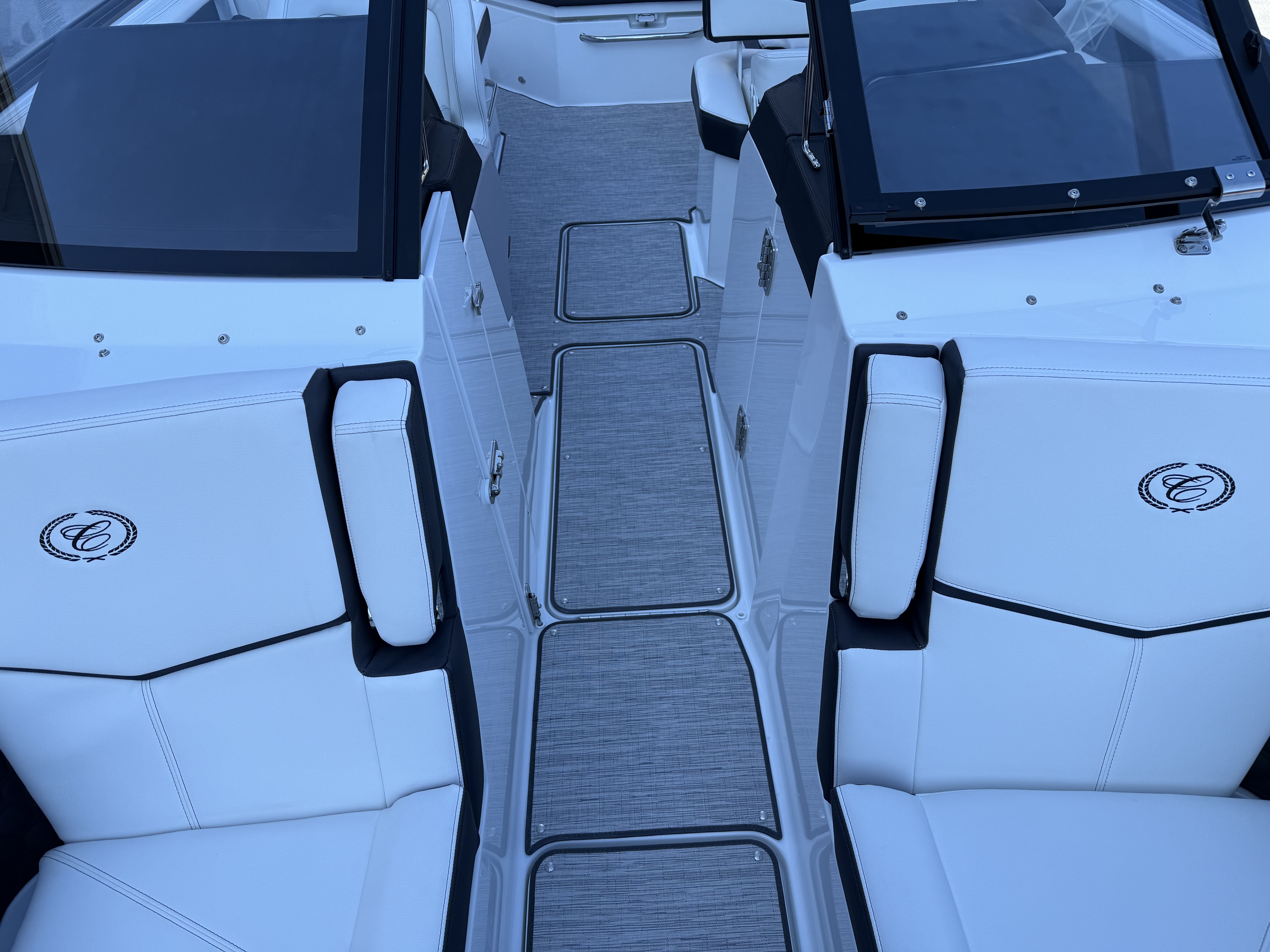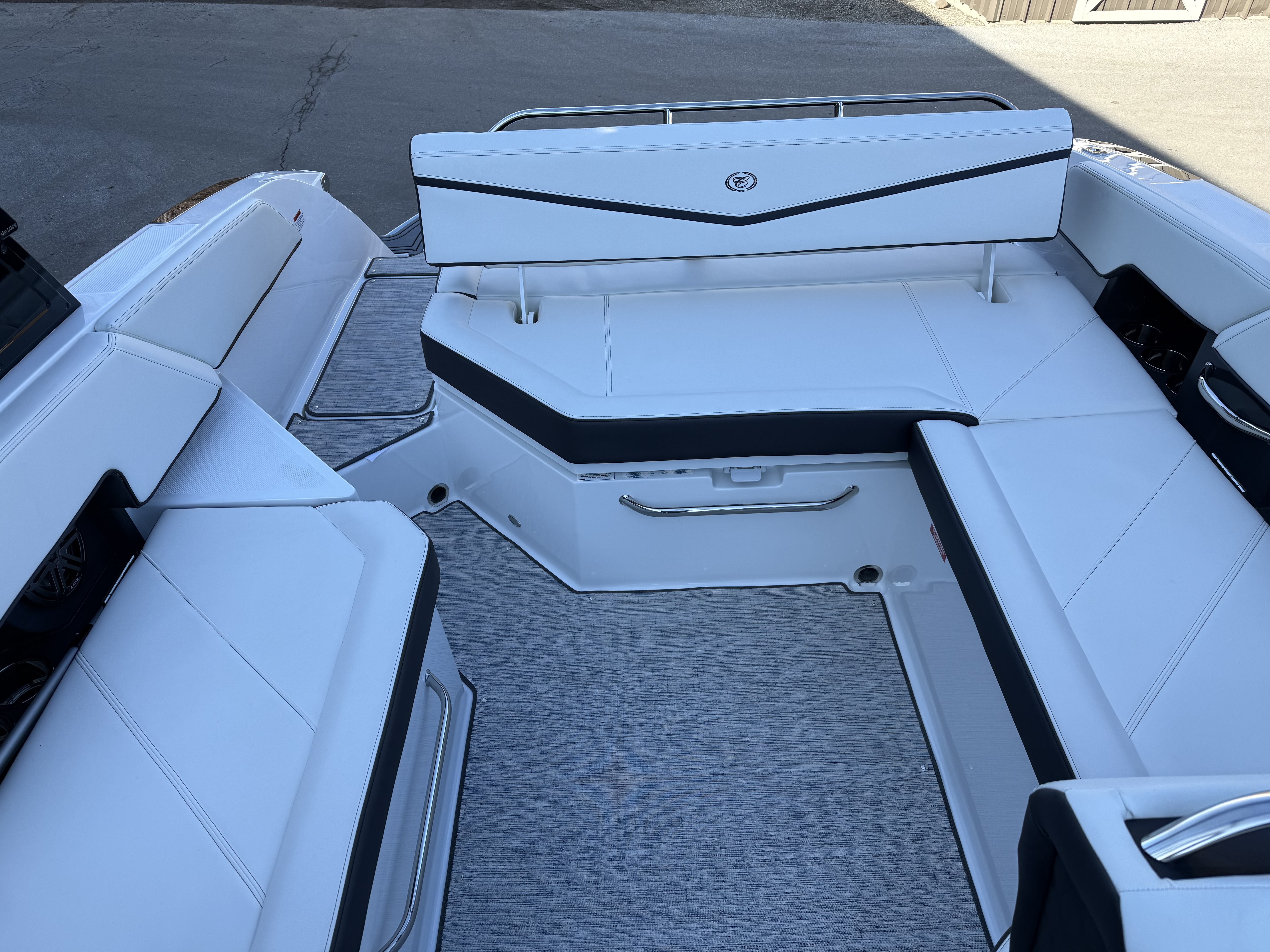 At its core is a forward-facing Volvo V8-350CE DP (350hp) — engineered specifically for surf performance while maintaining the smooth, confident ride Cobalt is known for. The forward drive places the propellers safely beneath the hull, creating a clean, powerful wave and peace of mind for families enjoying watersports. Whether you’re dialing in a long, pushy surf wave or cruising across open water, this R6 Surf delivers effortless versatility.