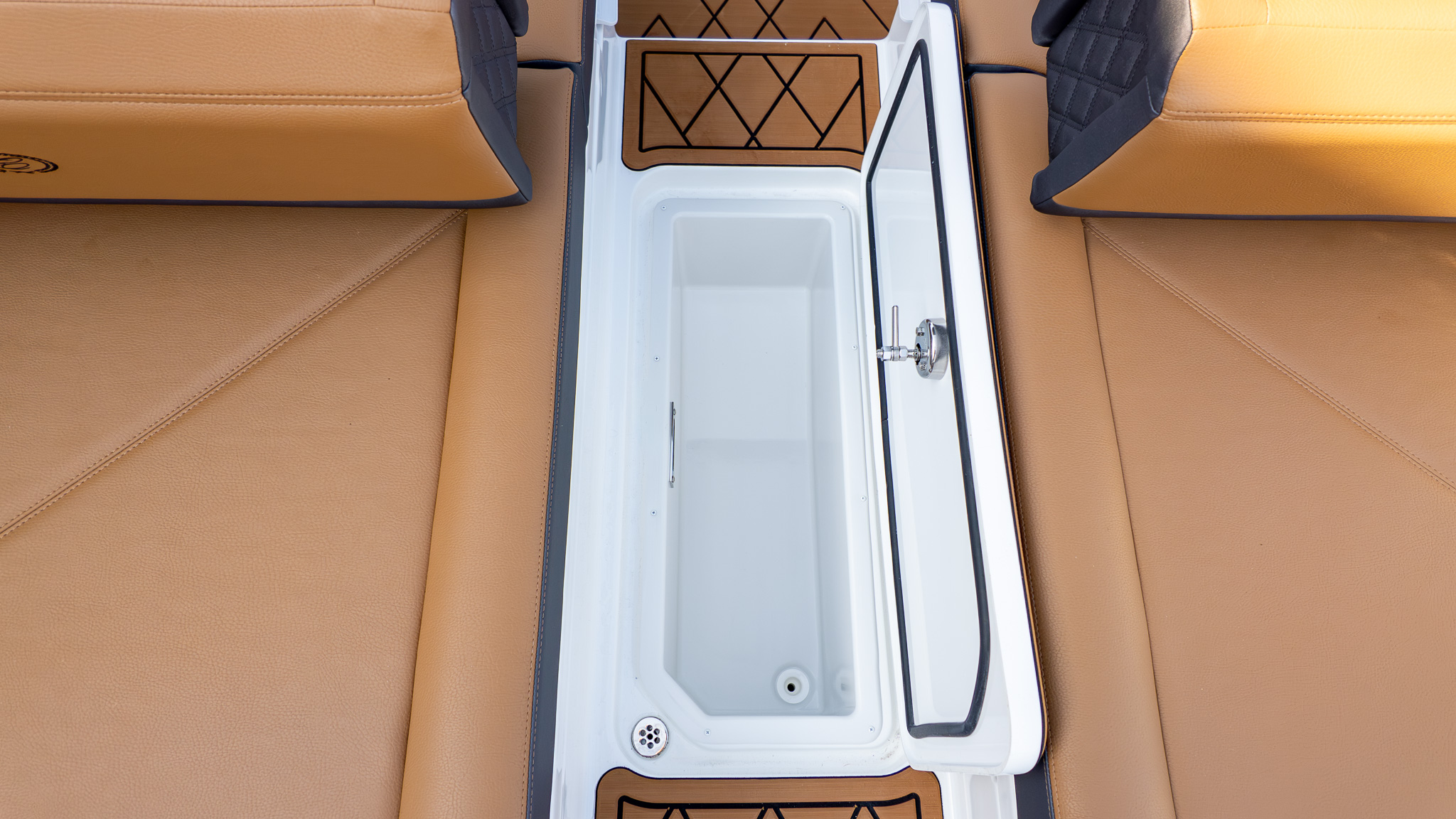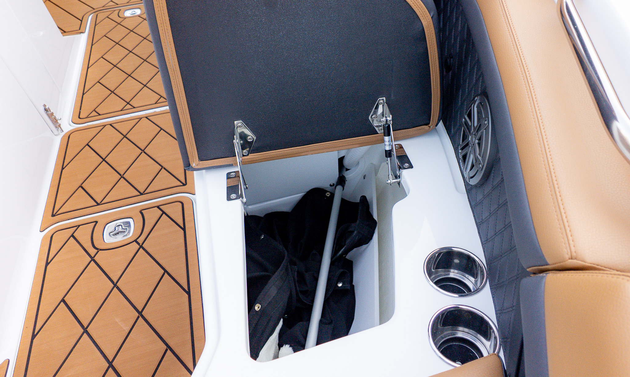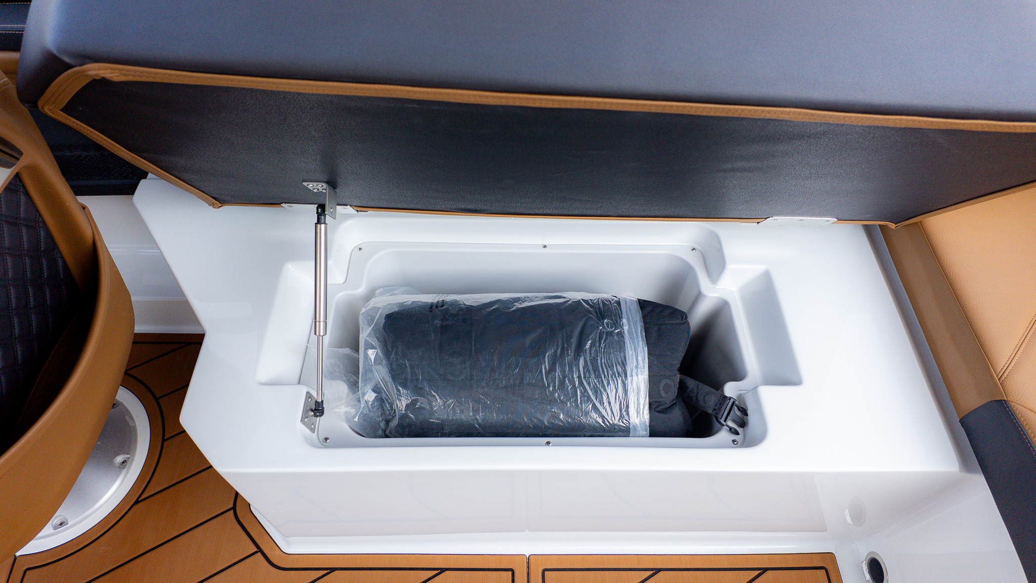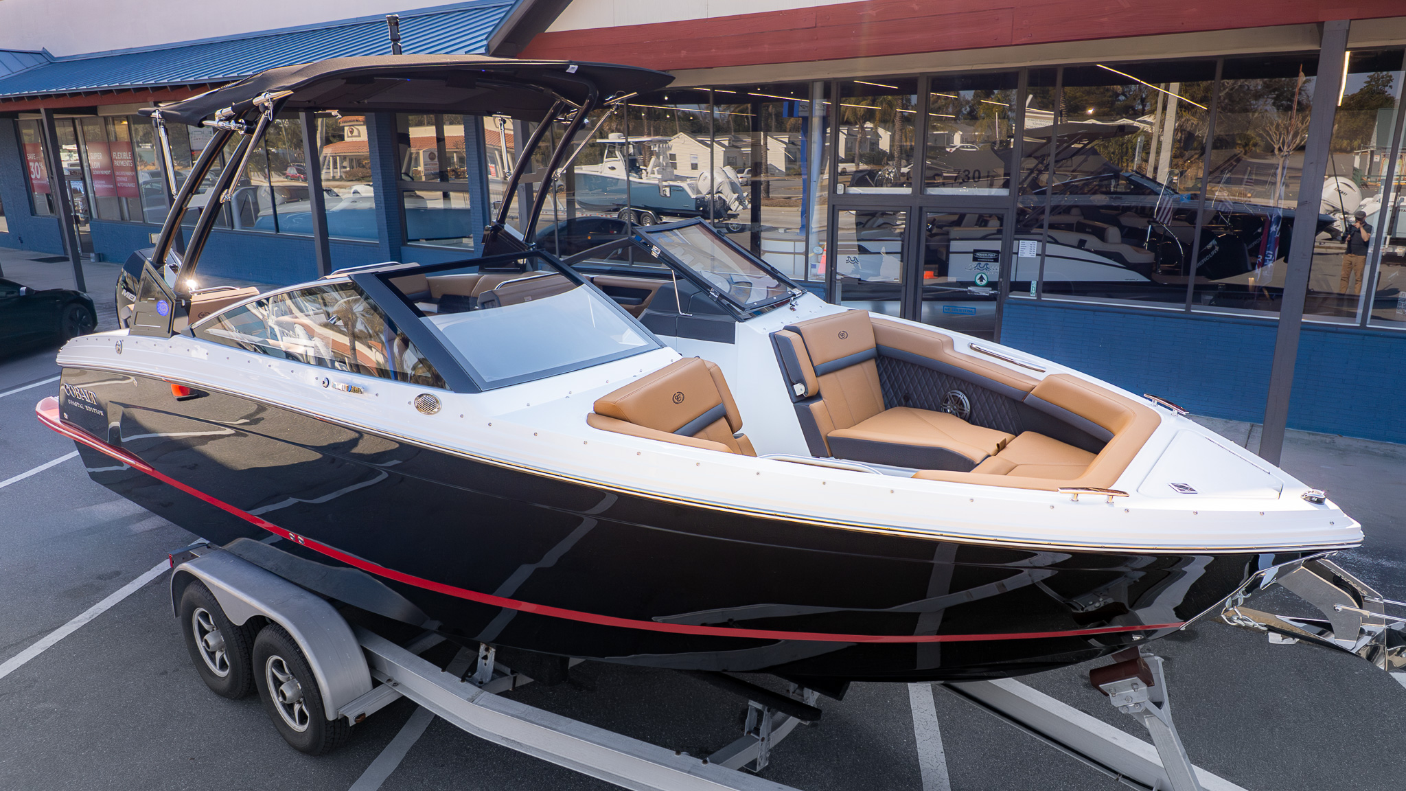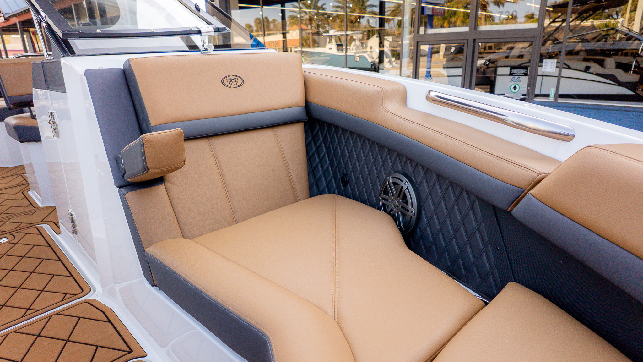 For those who love watersports, the extended swim platform and flip-down swim step are game changers, letting you dive in and climb out with ease. Pair that with the sleek dual Garmin glass cockpit for effortless navigation and a Bluetooth sound system that pumps your playlist through six speakers, and you’ve got the perfect setup for wakeboarding mornings, tubing afternoons, and sunset parties.