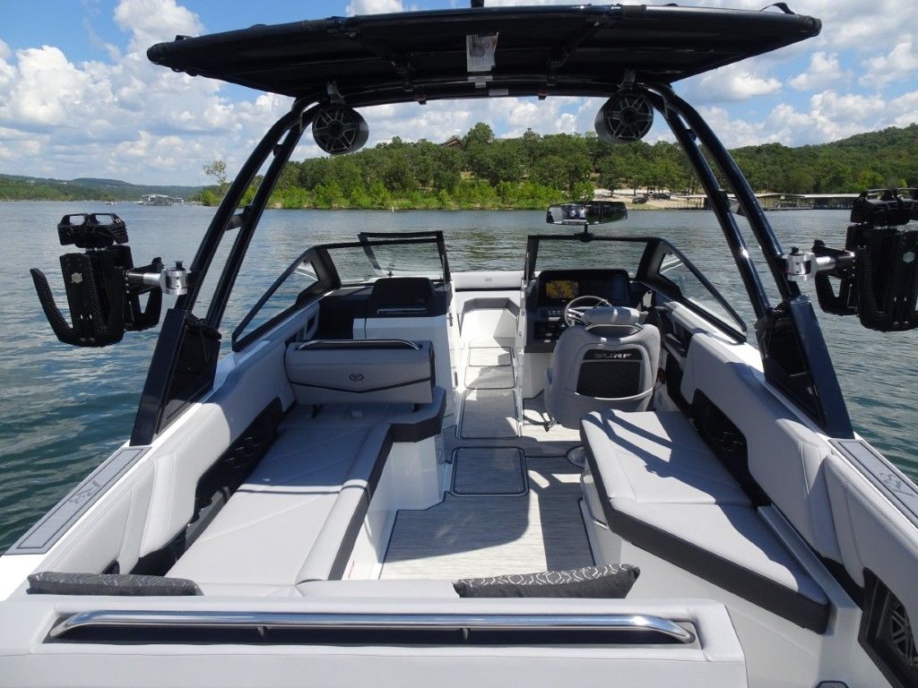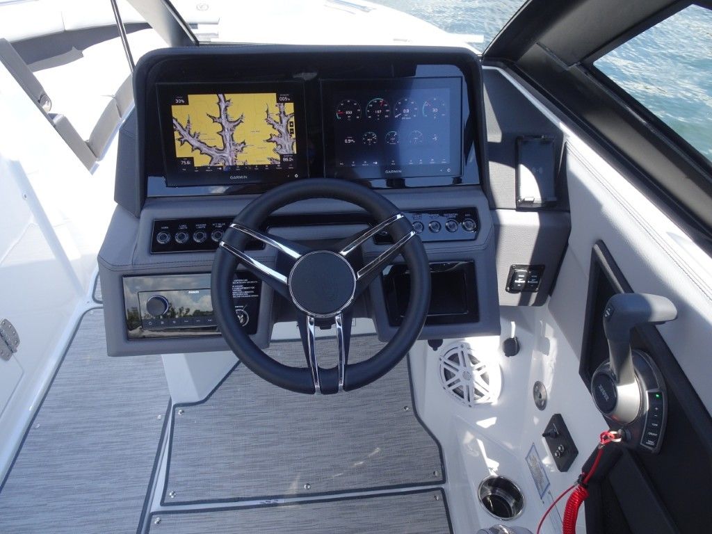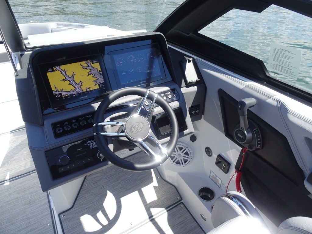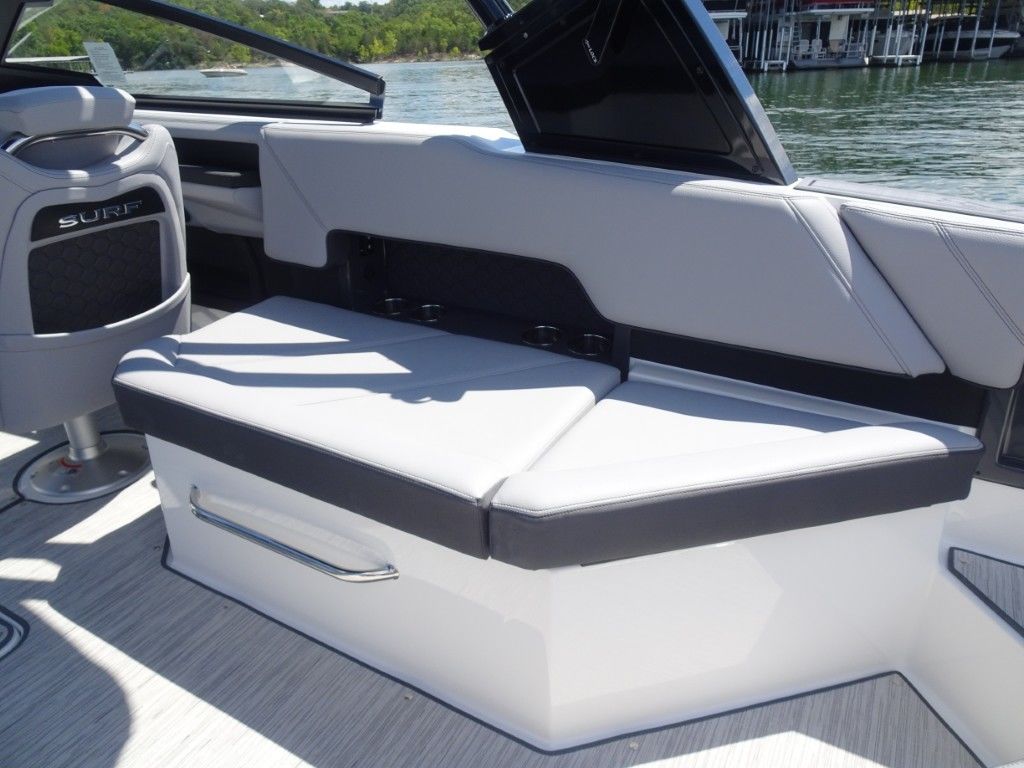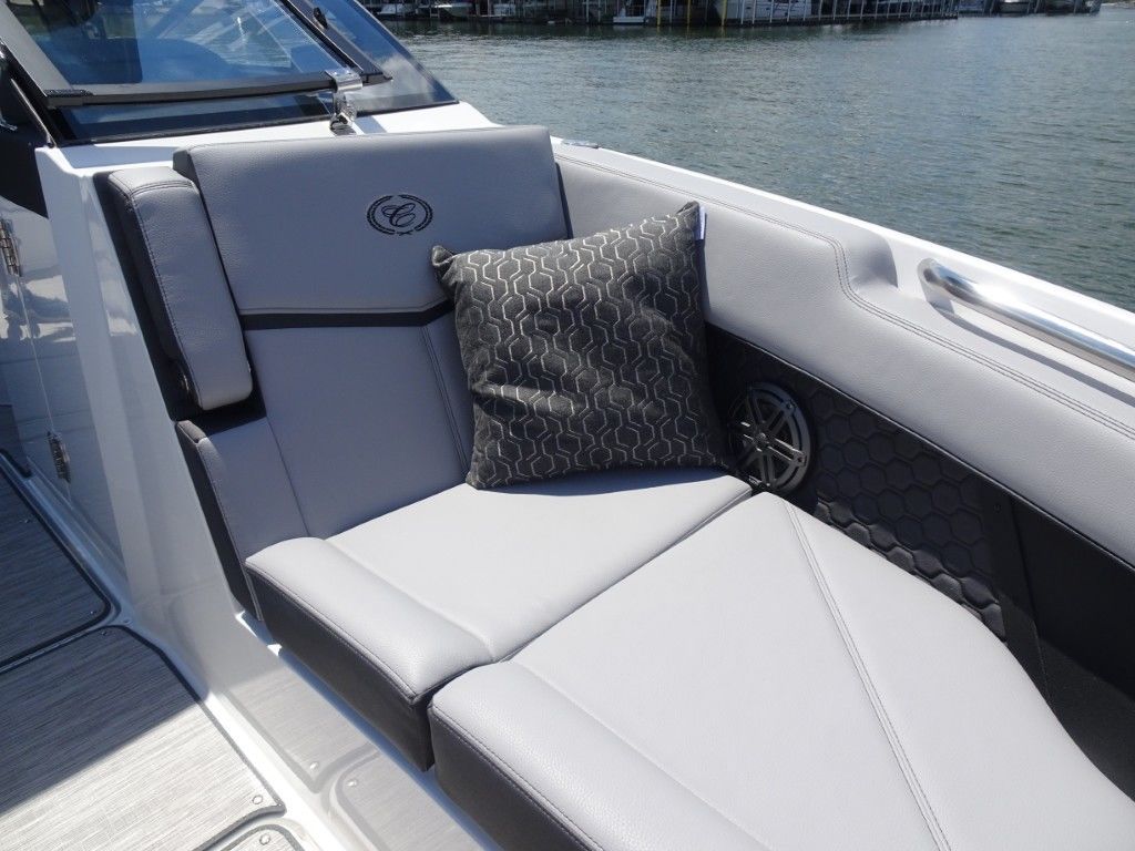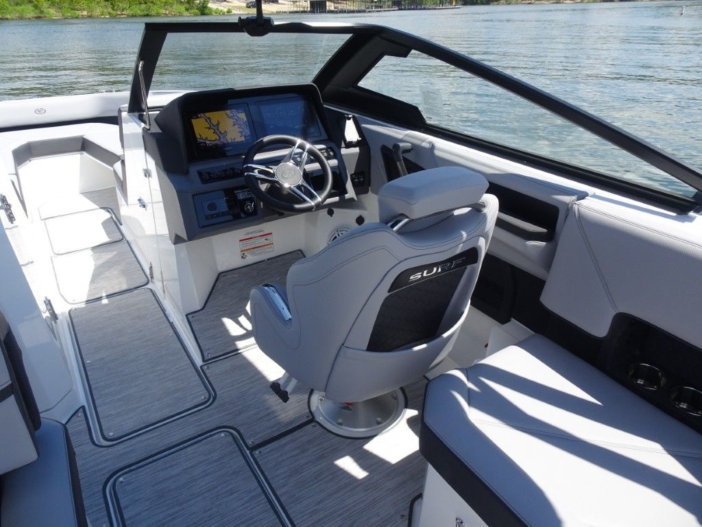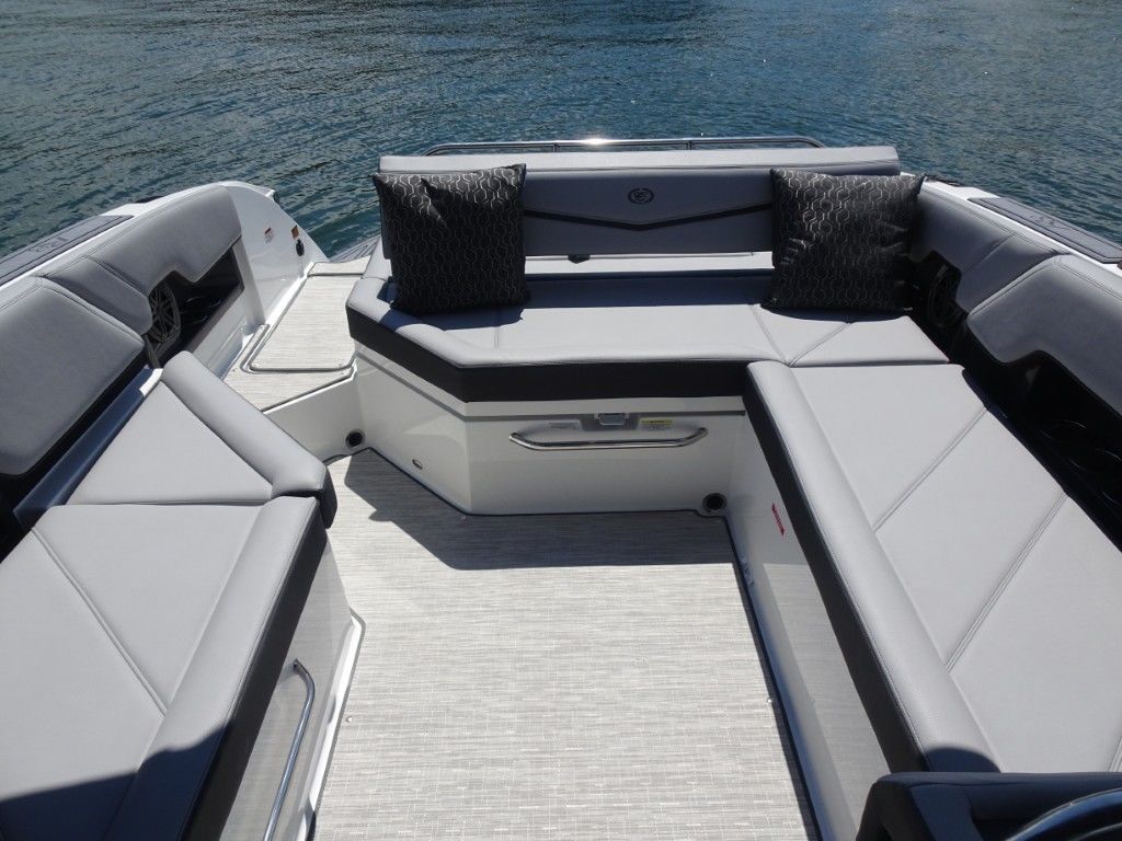 This is a new 2026 Cobalt R8 Surf featuring a Graphite Grey Hull Side, KO Red Accent Stripe, and a Rich Ebony Bottom. It has the Frost/Slate Interior package and is powered by a Volvo Penta 380hp FWD EVC Dual Prop. Other options include: