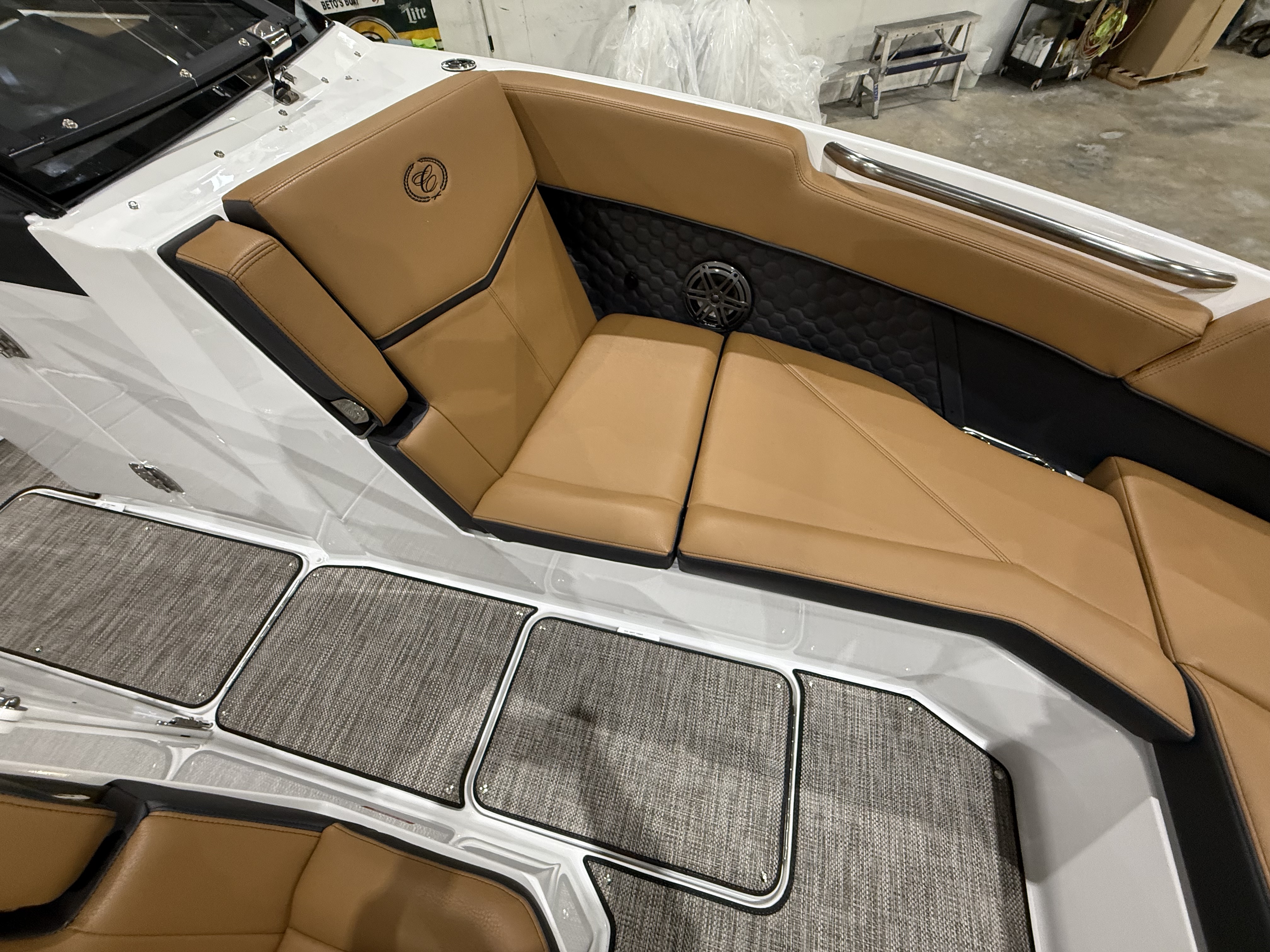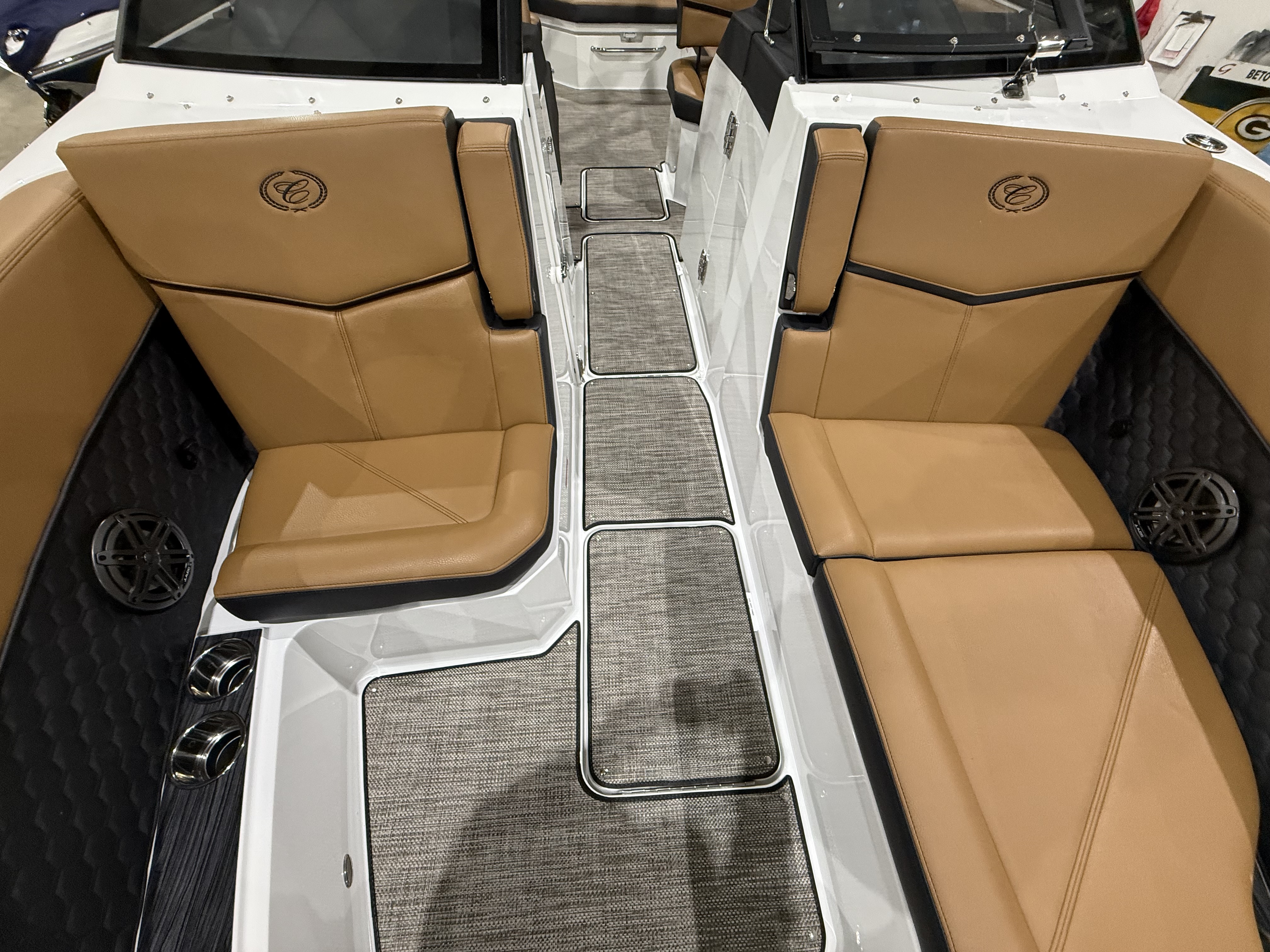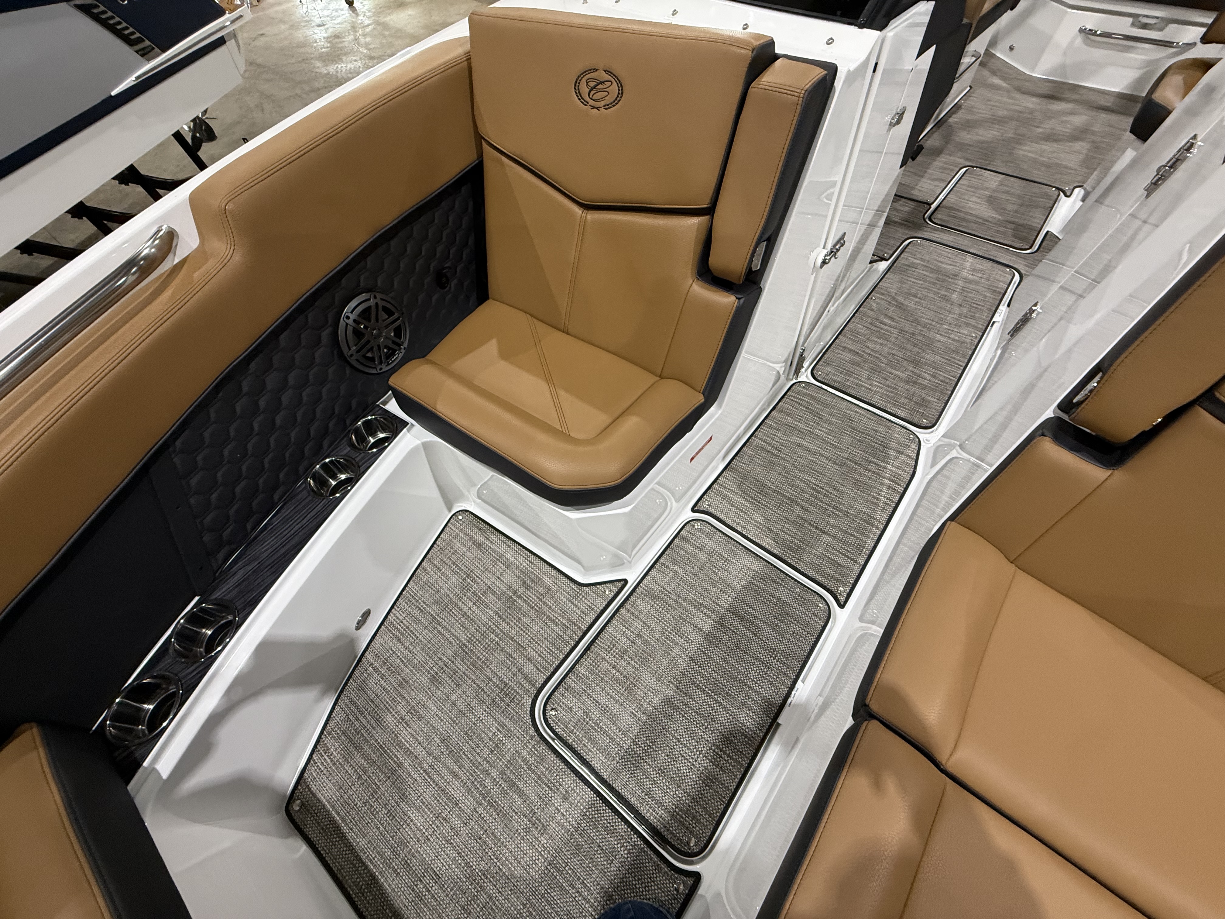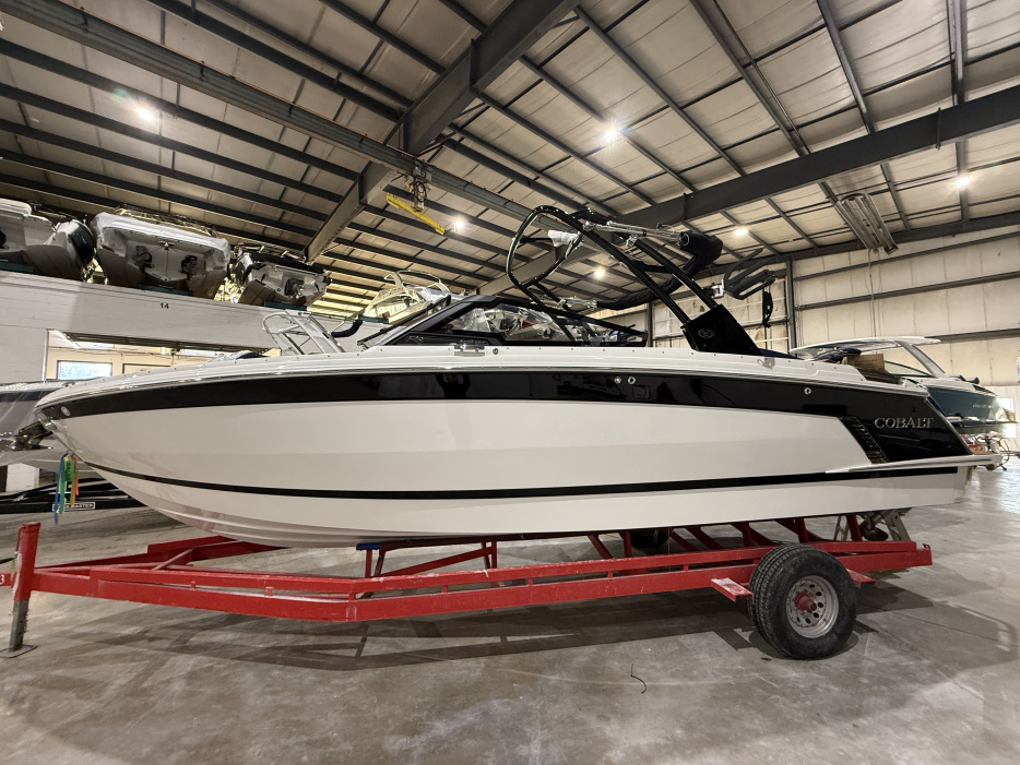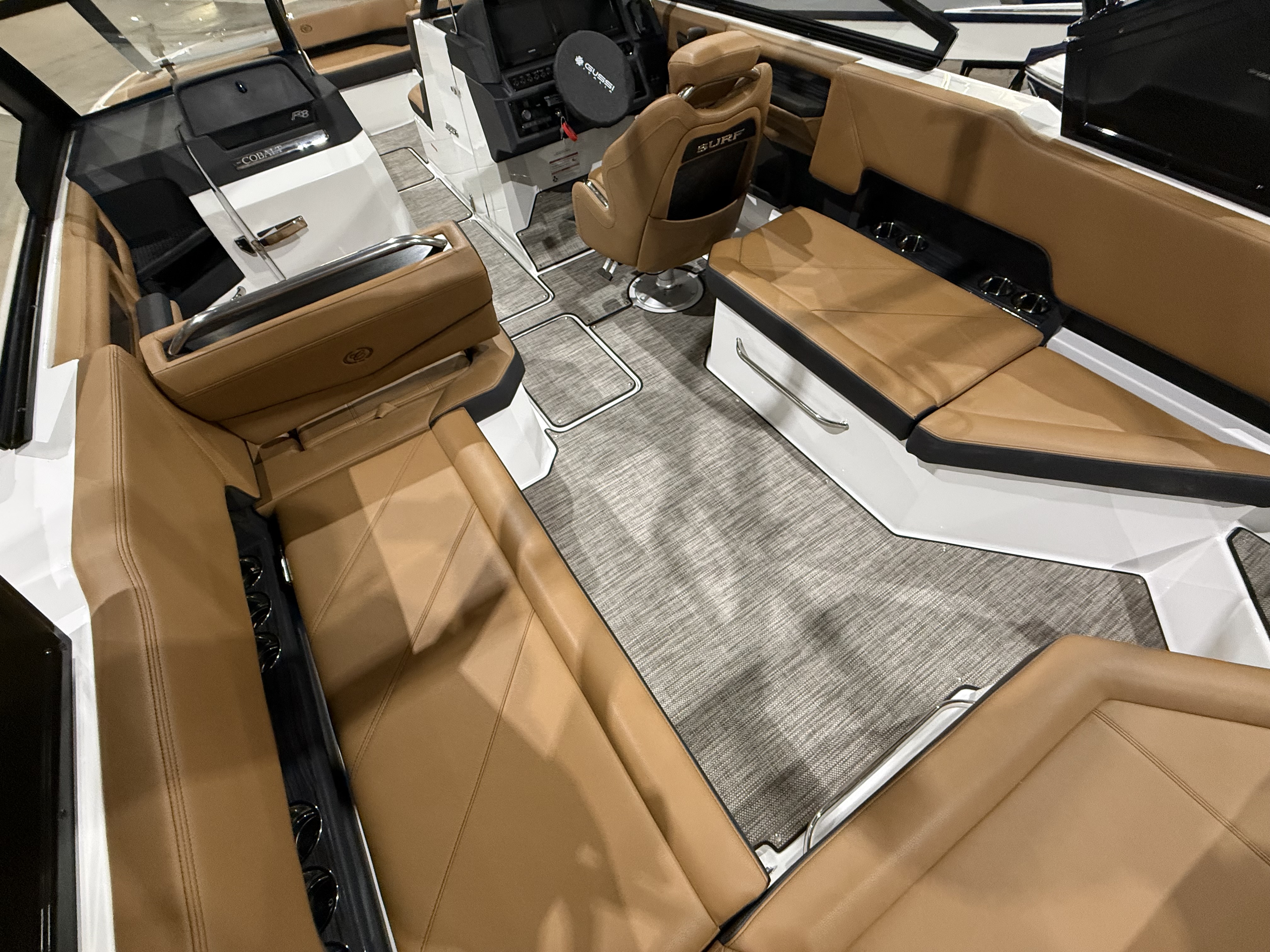 The rich Ebony and White exterior gives this boat a bold, upscale presence, while the Sea Grass flooring adds both durability and barefoot comfort—easy to maintain and perfect for long summer days on the water. Inside, every detail reflects Cobalt’s legendary craftsmanship, from the premium upholstery to the thoughtful layout designed for entertaining, relaxing, and riding.