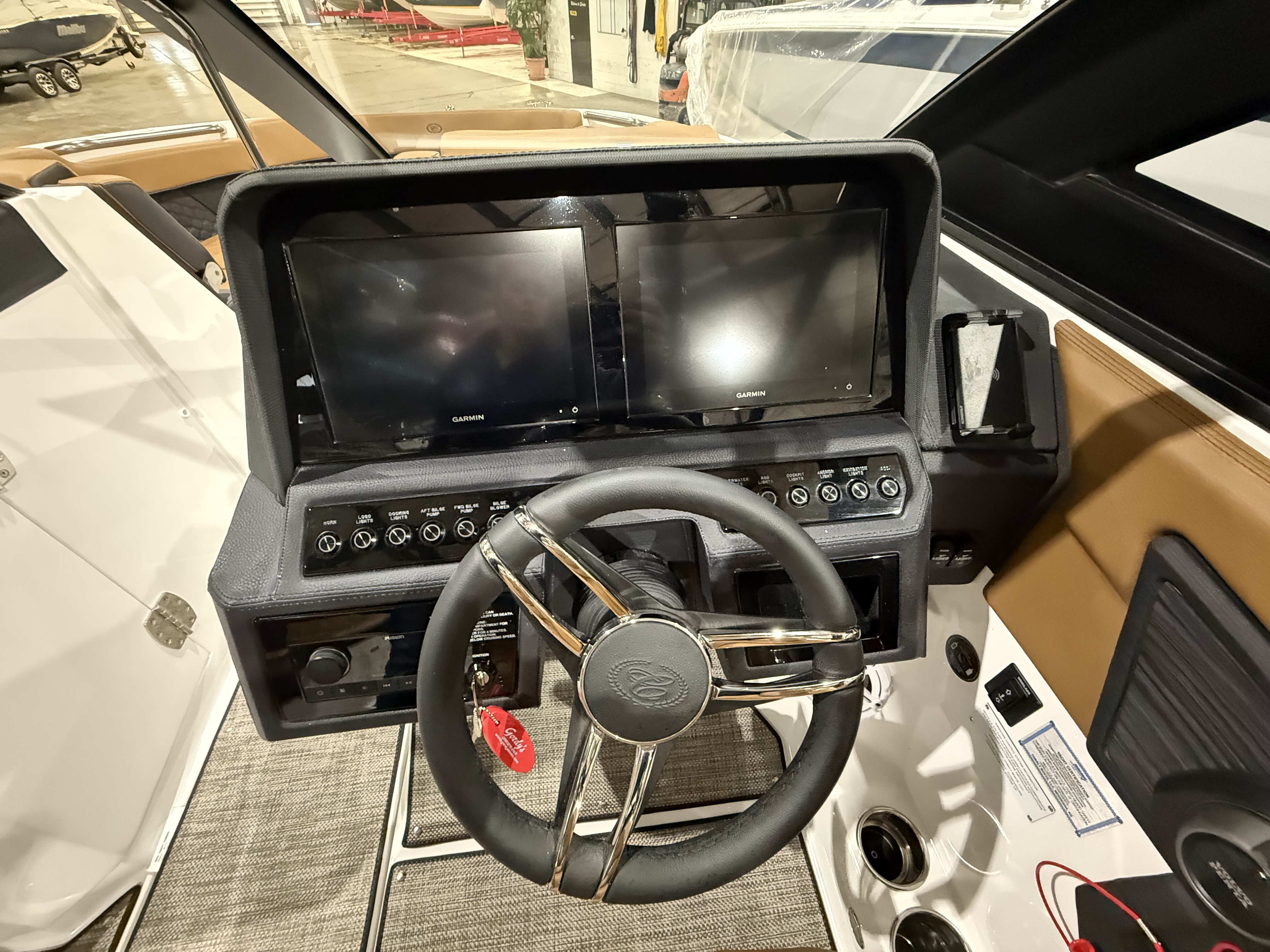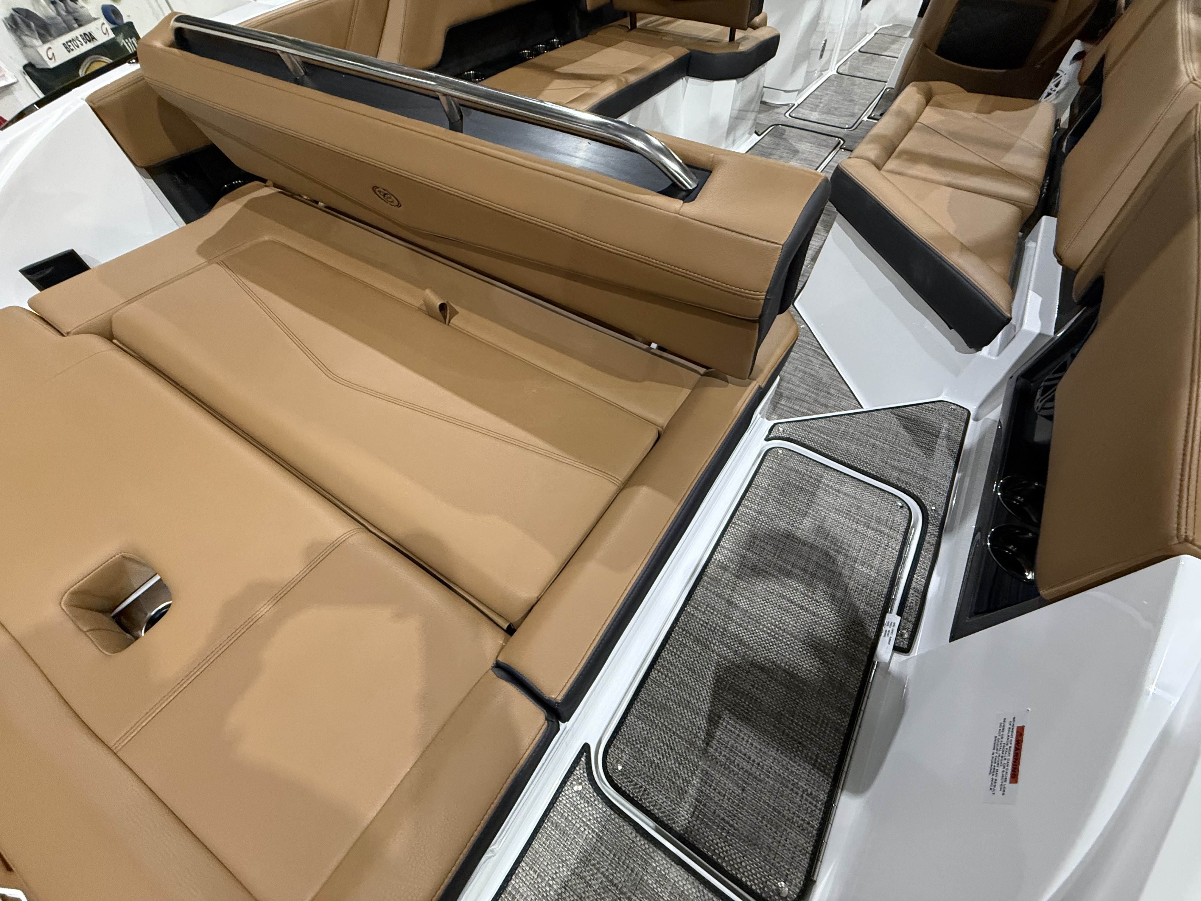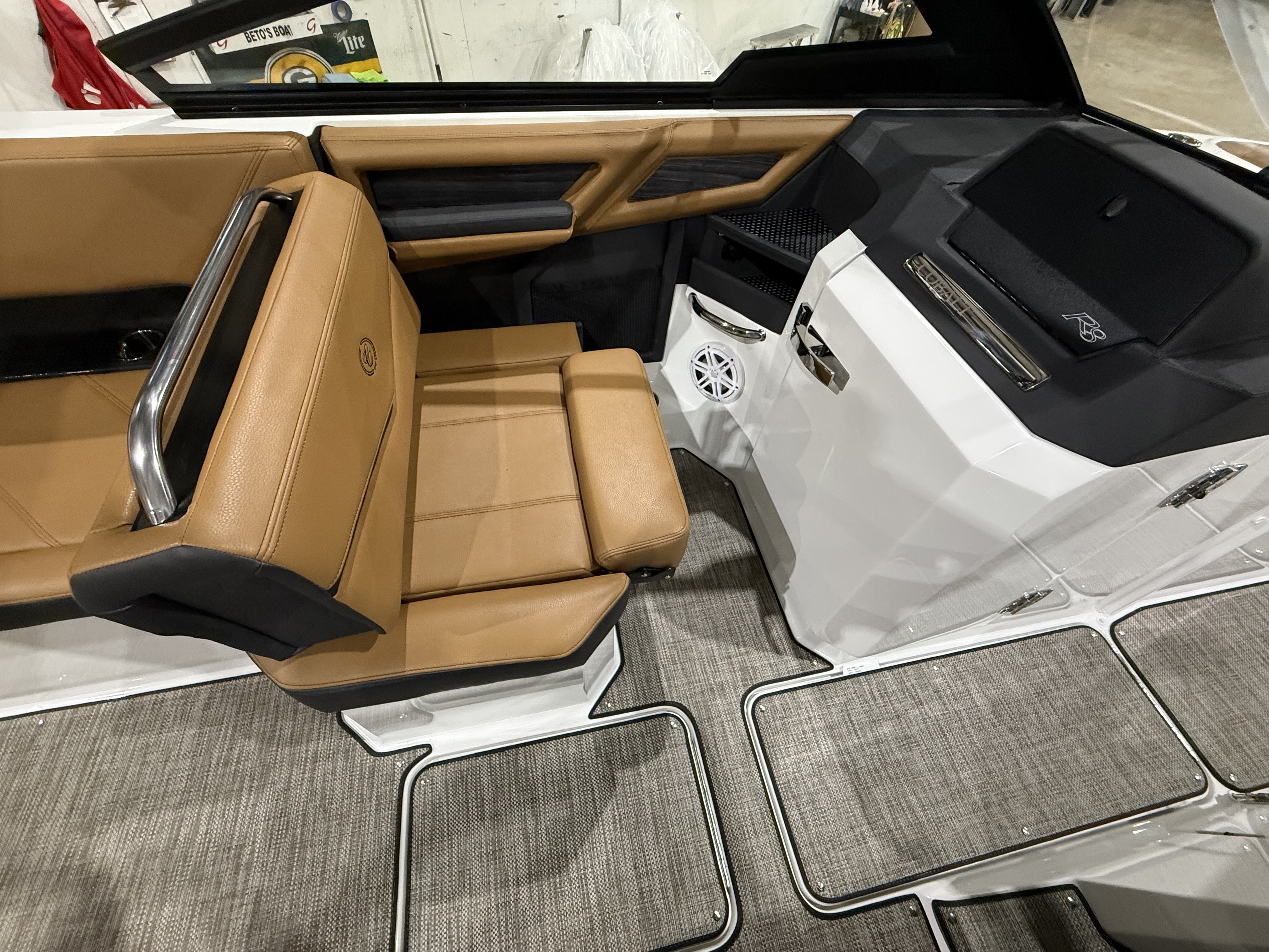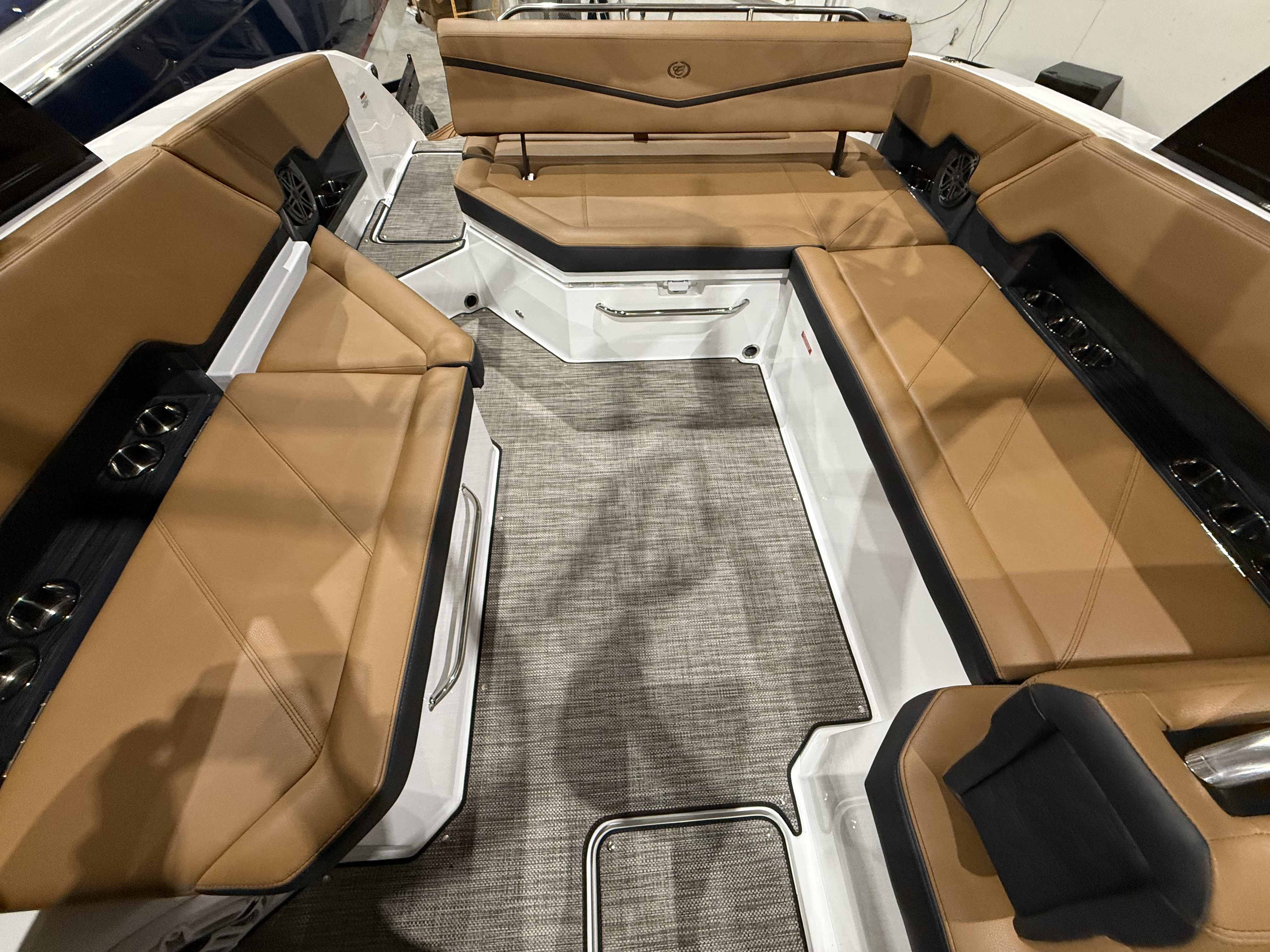 The rich Ebony and White exterior gives this boat a bold, upscale presence, while the Sea Grass flooring adds both durability and barefoot comfort—easy to maintain and perfect for long summer days on the water. Inside, every detail reflects Cobalt’s legendary craftsmanship, from the premium upholstery to the thoughtful layout designed for entertaining, relaxing, and riding.