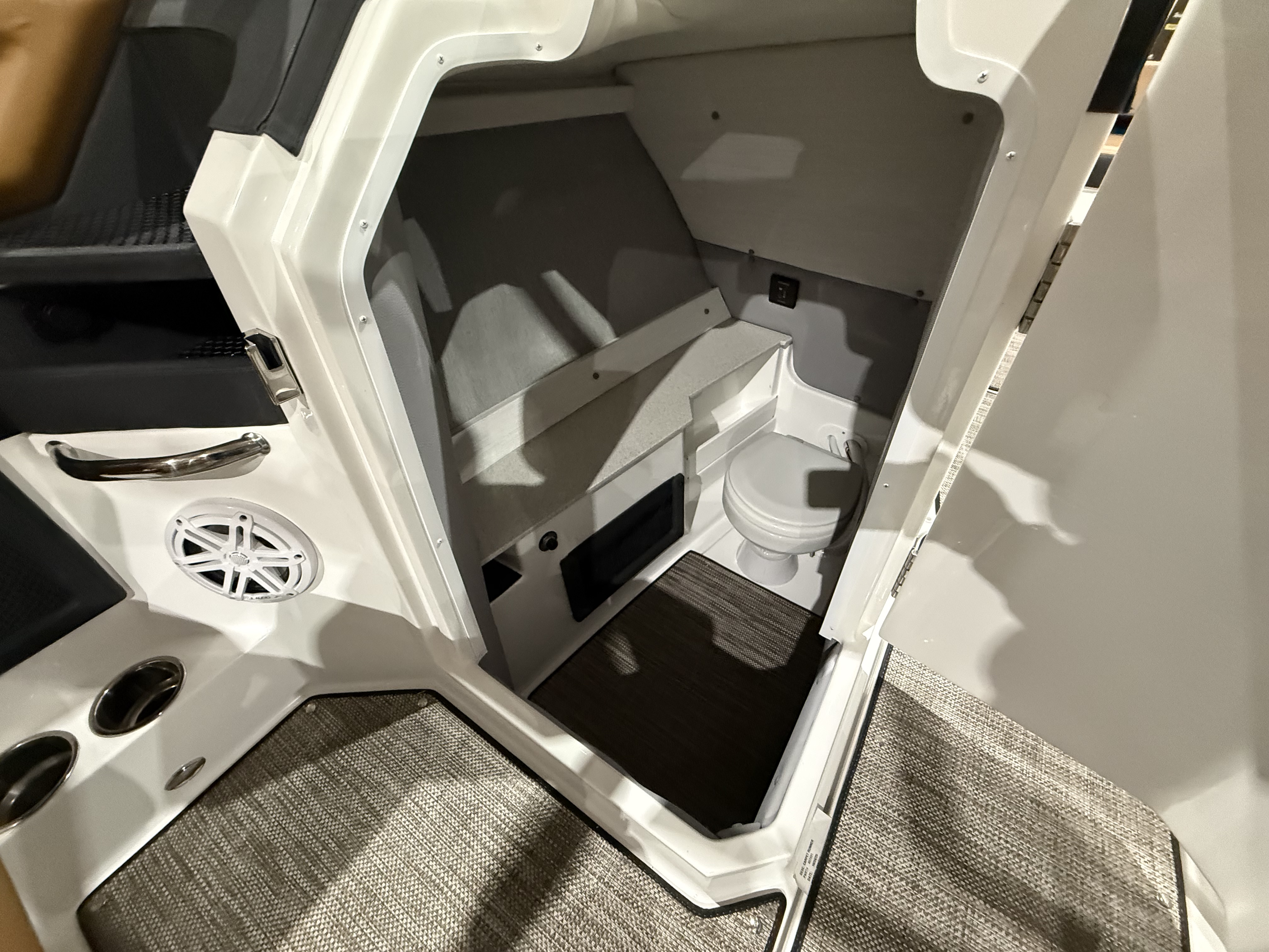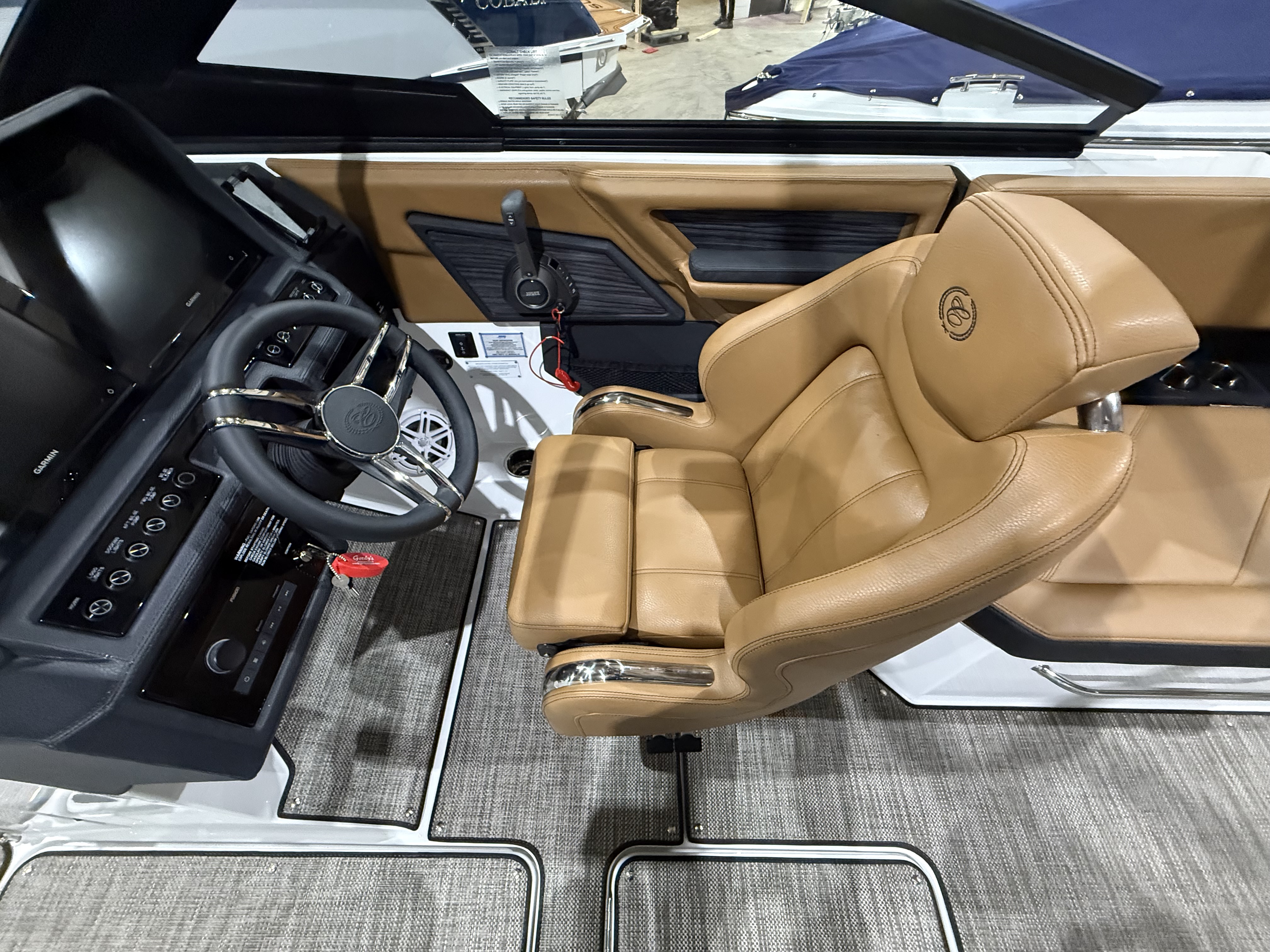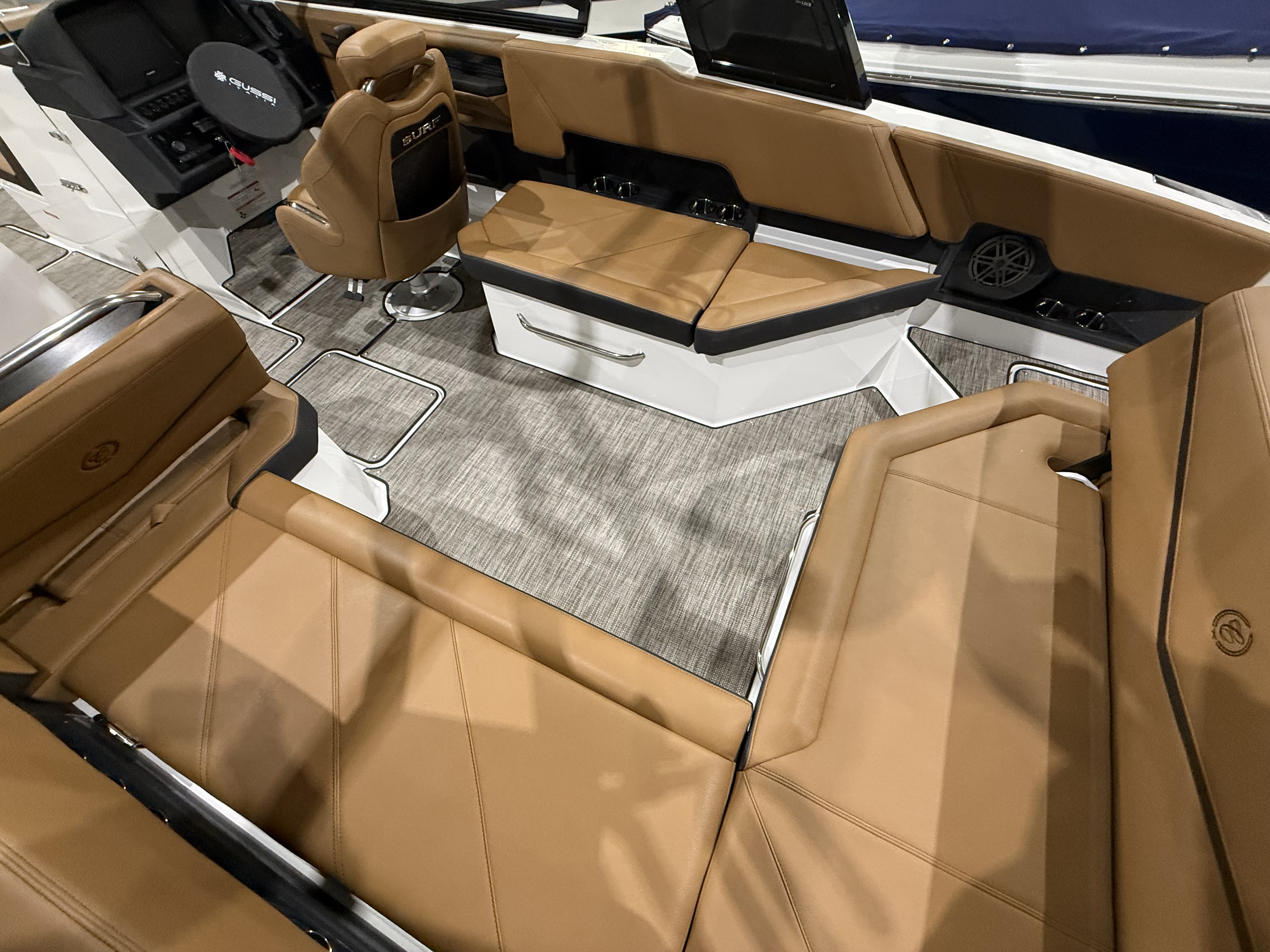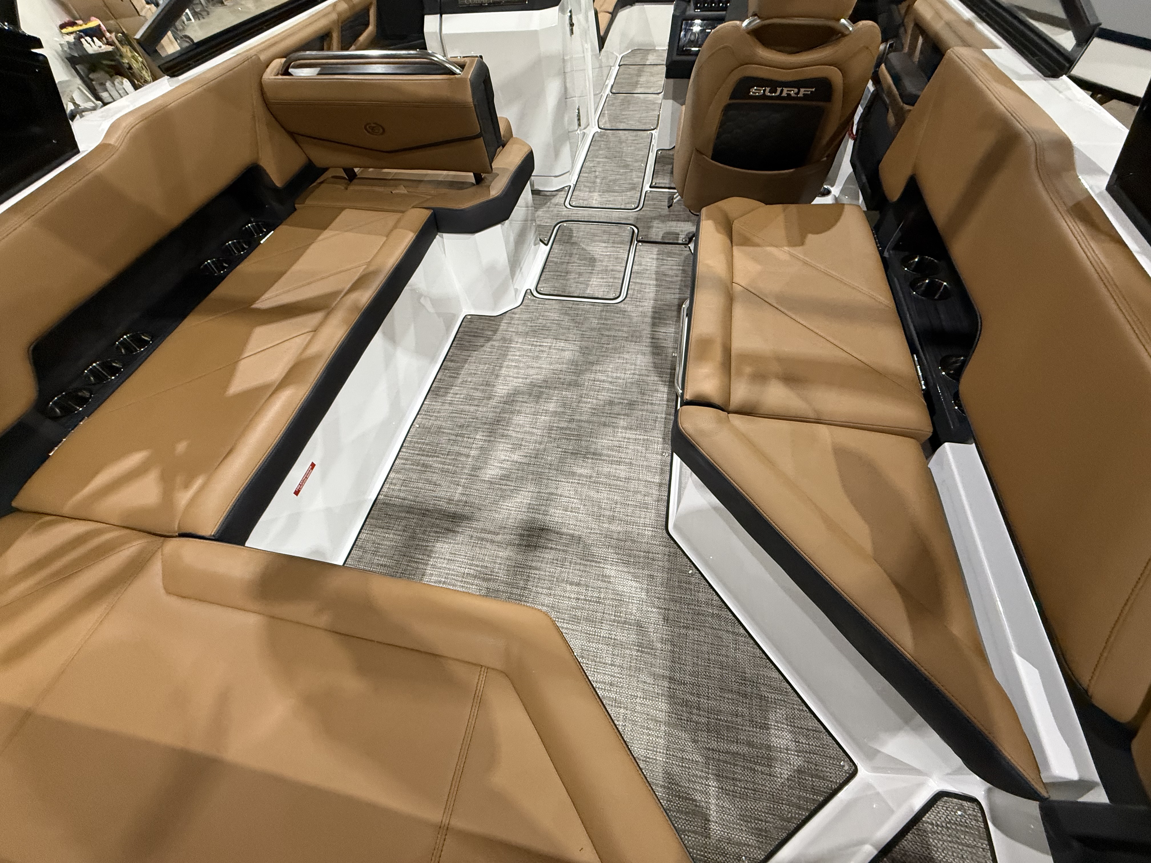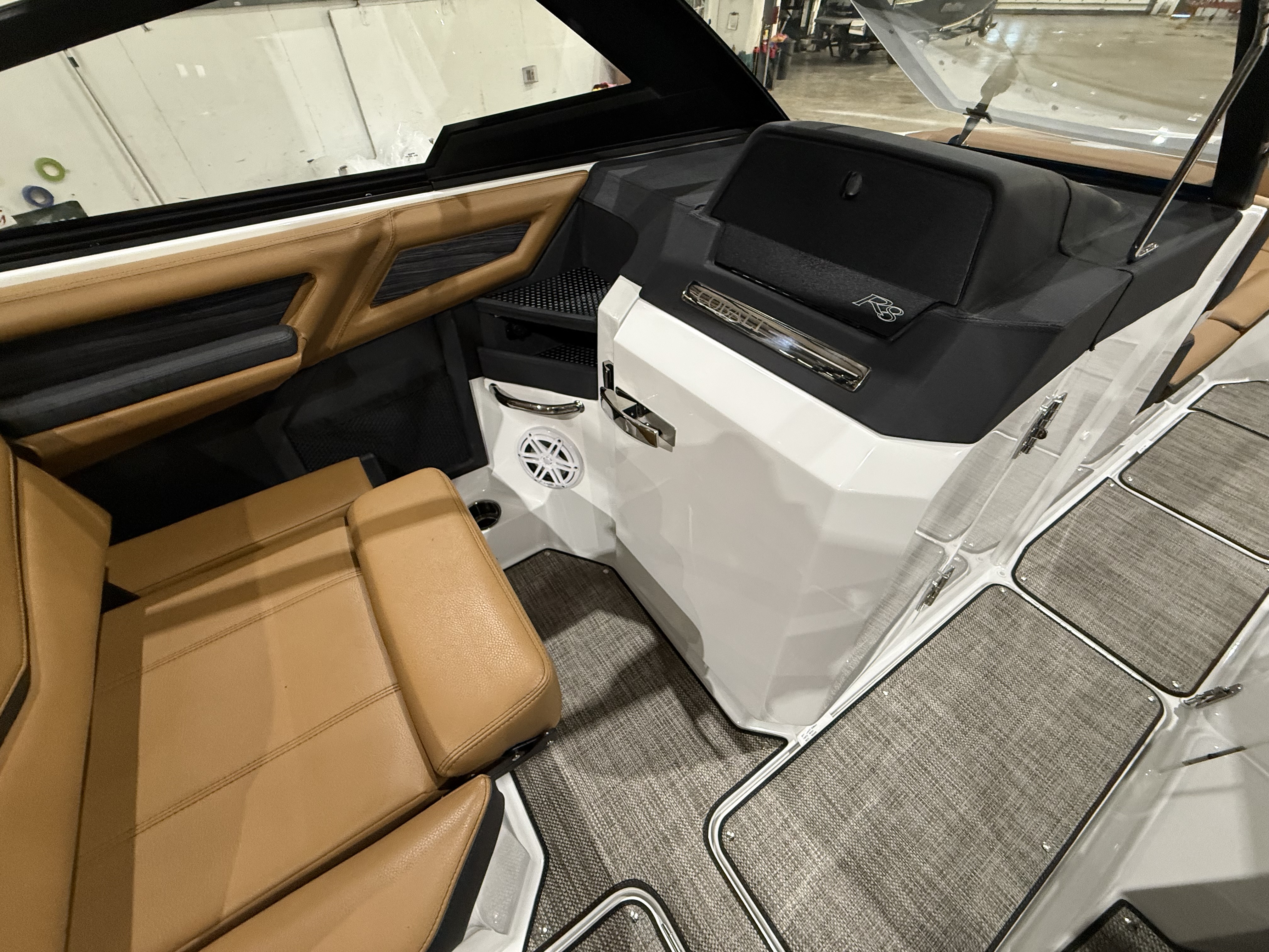 The rich Ebony and White exterior gives this boat a bold, upscale presence, while the Sea Grass flooring adds both durability and barefoot comfort—easy to maintain and perfect for long summer days on the water. Inside, every detail reflects Cobalt’s legendary craftsmanship, from the premium upholstery to the thoughtful layout designed for entertaining, relaxing, and riding.