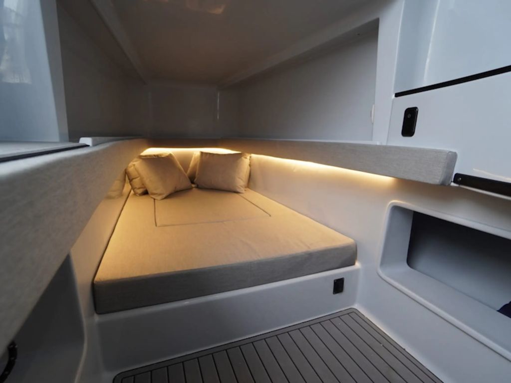 - Conveniences inside console include: berth with storage underneath and led lighting