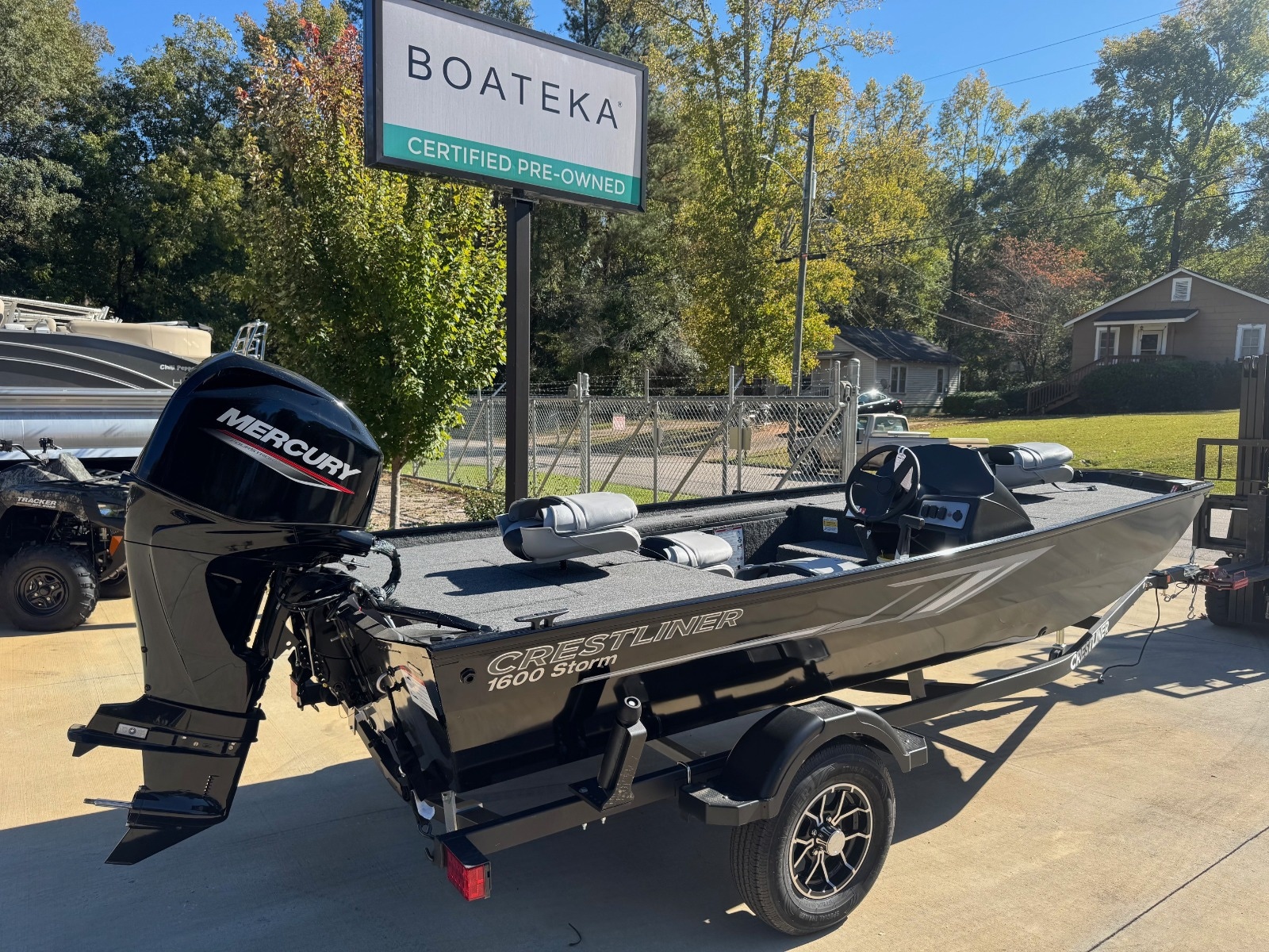 New Arrival! The 2026 Crestliner 1600 Storm is the budget boat that gives you everything you'd need to get on the water and start catching fish! Plenty of storage in this 16ft boat and powered with the fuel efficient Mercury 50HP fourstroke motor. Price includes trailer!
