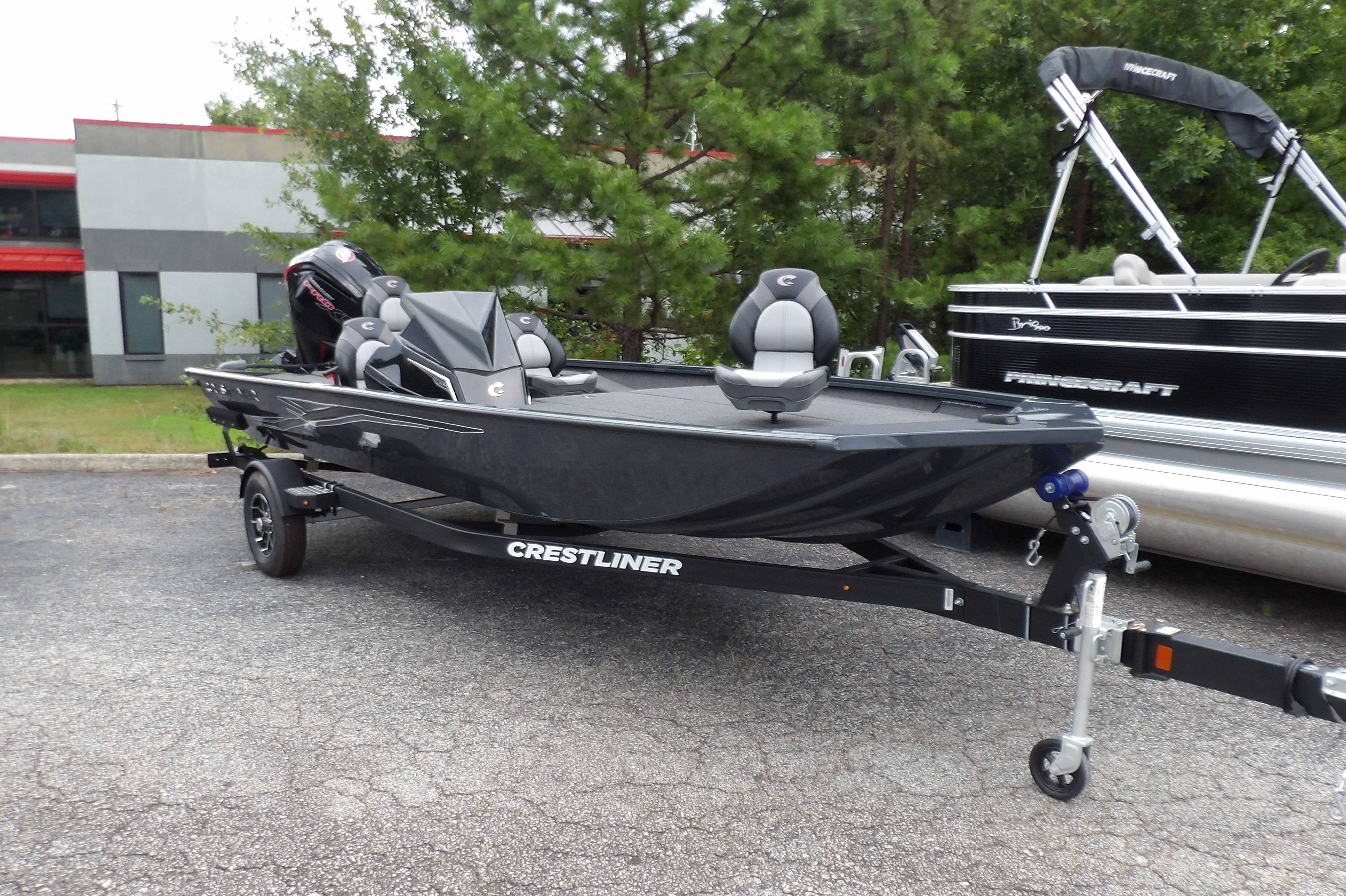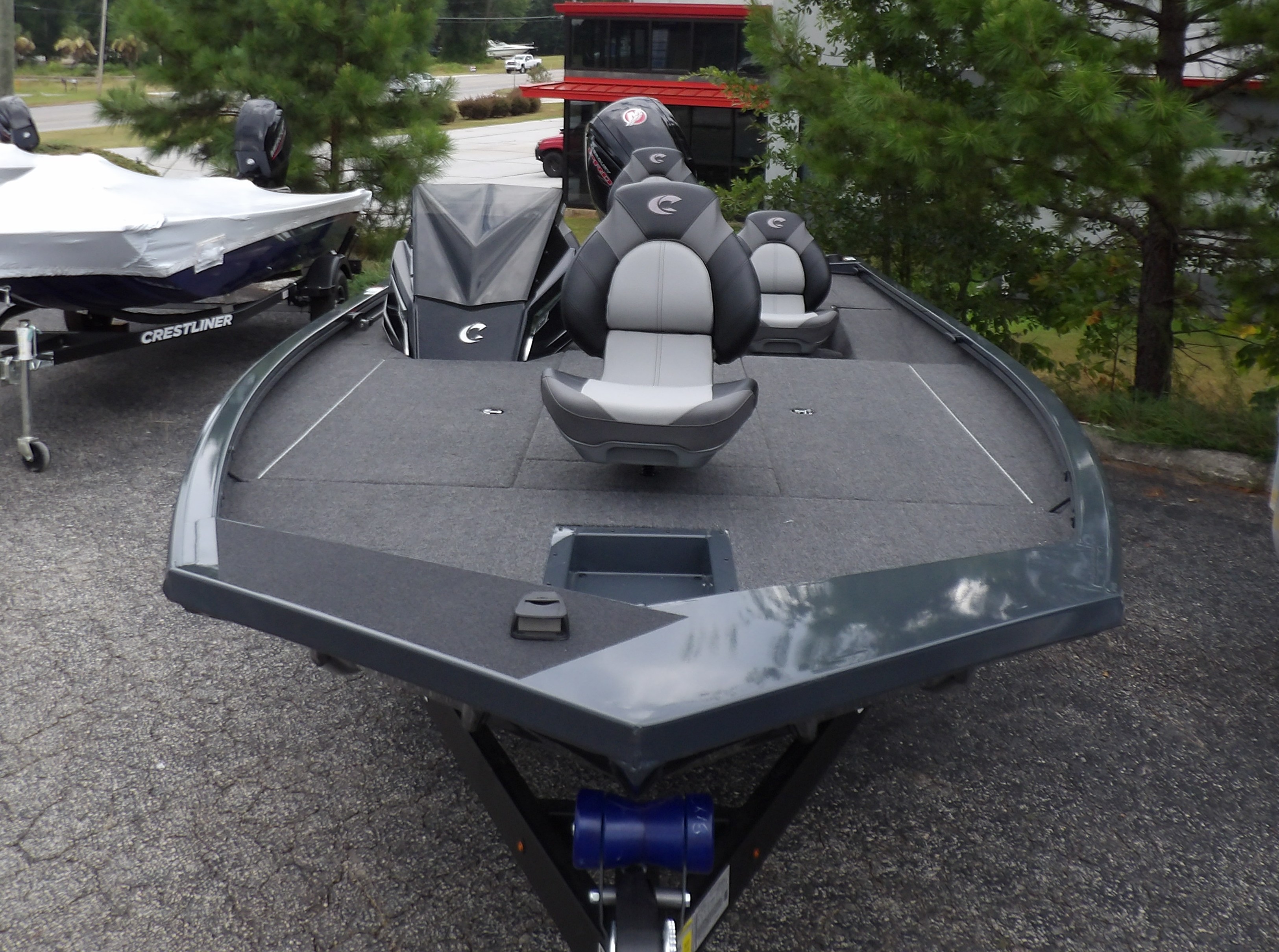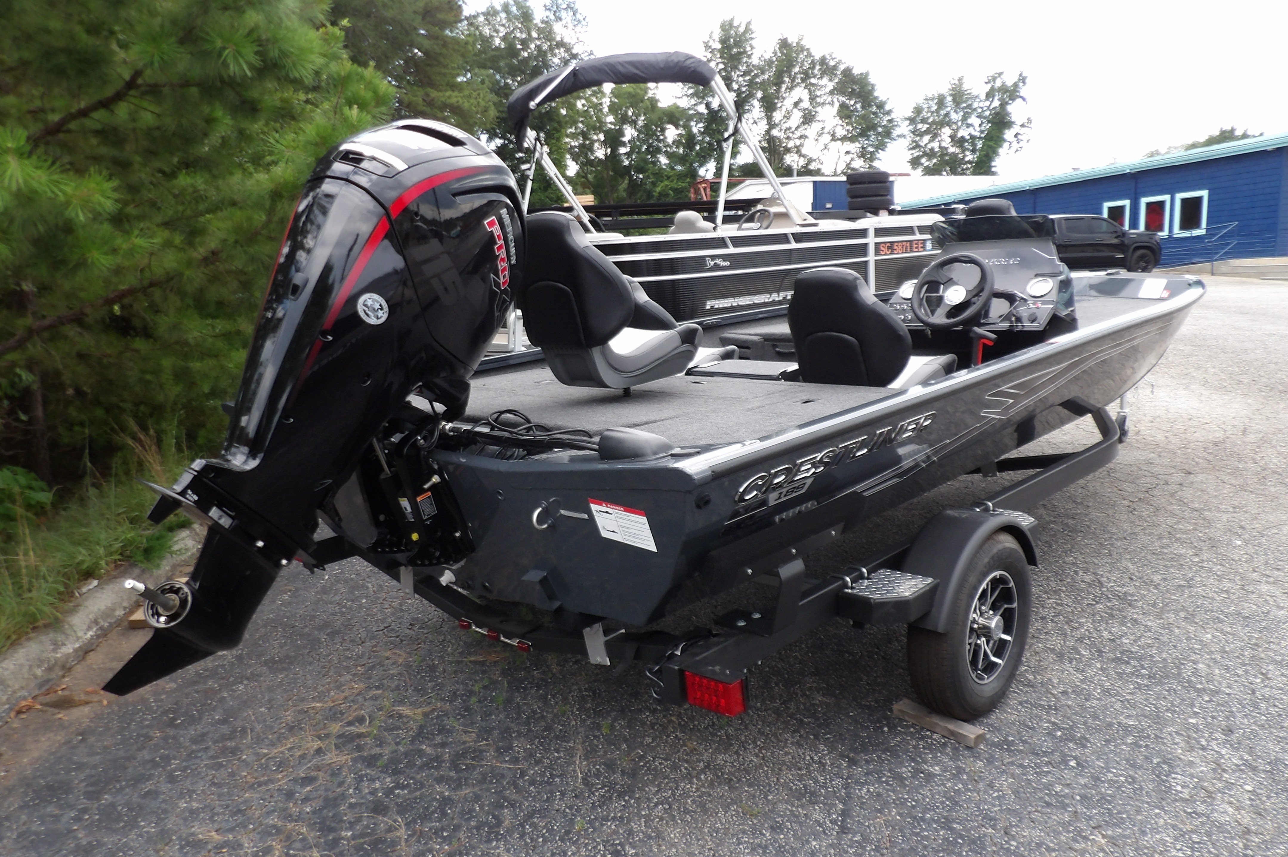 This new 2026 Crestliner XF 189 in dark grey metallic looks good on the trailer, but even better on the water. This new Mod- V aluminum bass boat from Crestliner comes with all the standard features of the XF series plus these added options: Reliable power from Mercury 115 hp PRO XS Four Stroke outboard, the Pro Package including- (black sport steering wheel, windscreen, automatic bilge pump, stern recirculating live well pump, insulated live well and storage lids, chrome latches, LED interior lights on the decks, stern live well & rod locker, ratchet straps & upgraded mag wheels on the trailer), center seat option & 24V 6 gauge trolling motor harness all sitting on a matching Crestliner bunk trailer. Looking for the latest in electronics? This boat is a blank canvas for you to add the latest tech from Humminbird, Lowrance, Garmin or Minn Kota. Have our service dept give you a quote to get just the right gear for however you fish. For more details, the latest in pricing and incentives give us a call at Eclipse Marine Seneca (864) 653-6767 or stop in and see us at 305 US Hwy 123 bypass Seneca, SC.