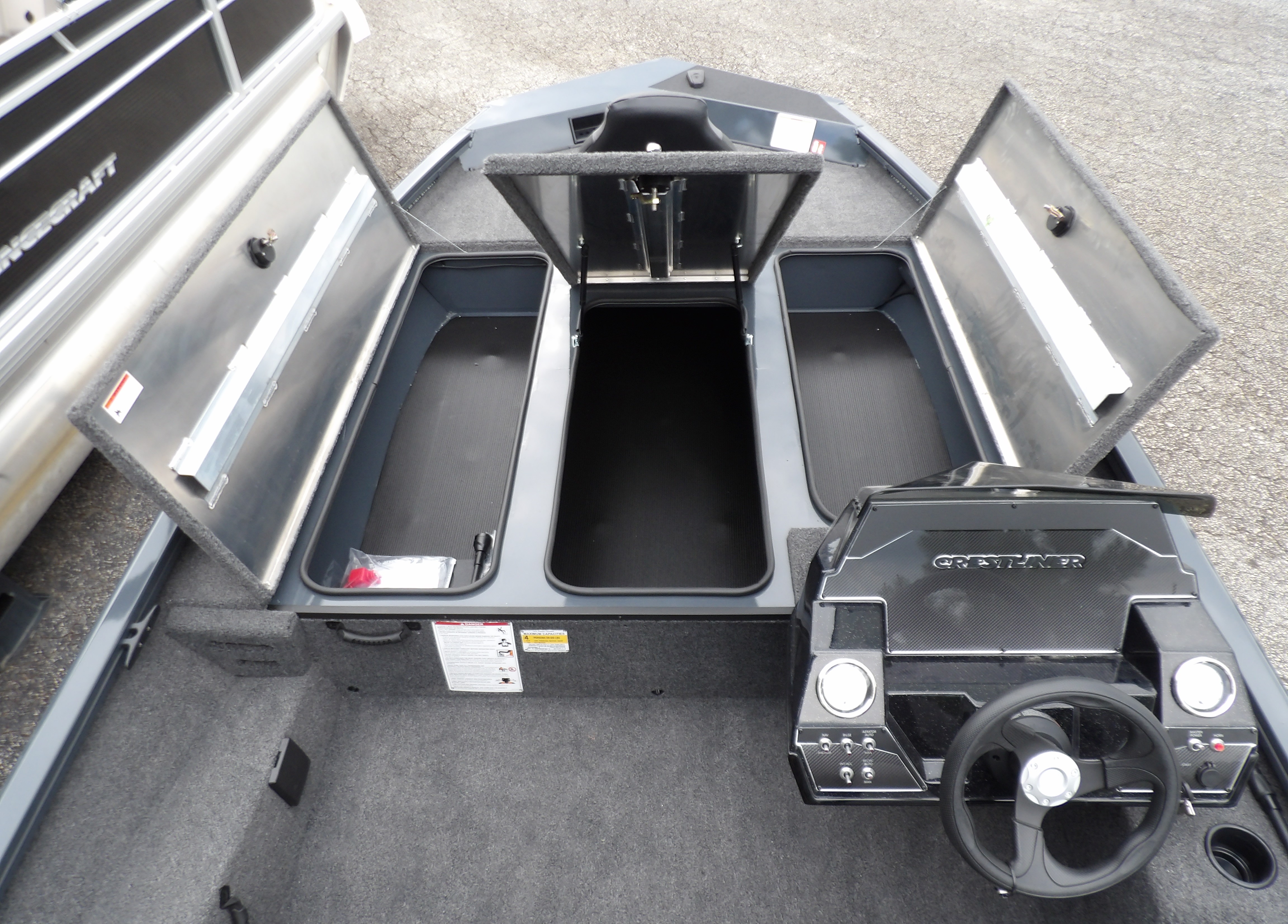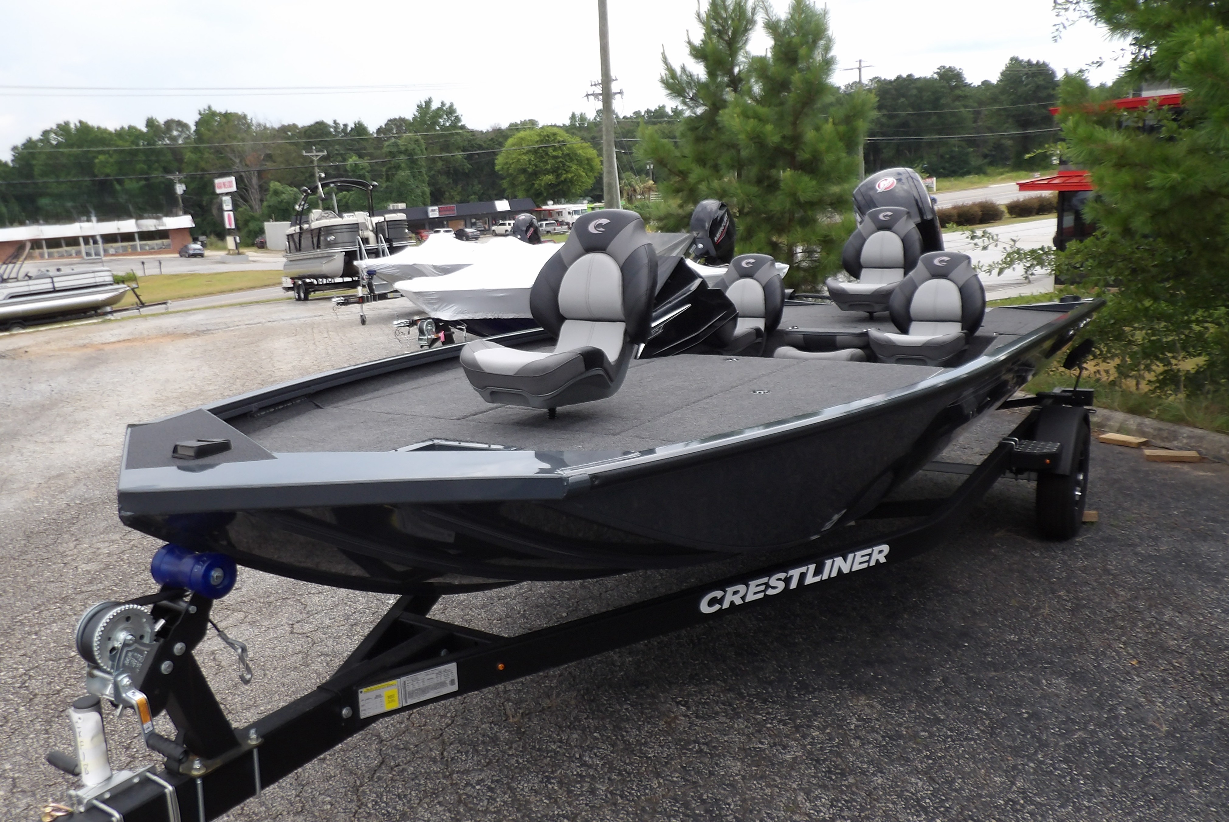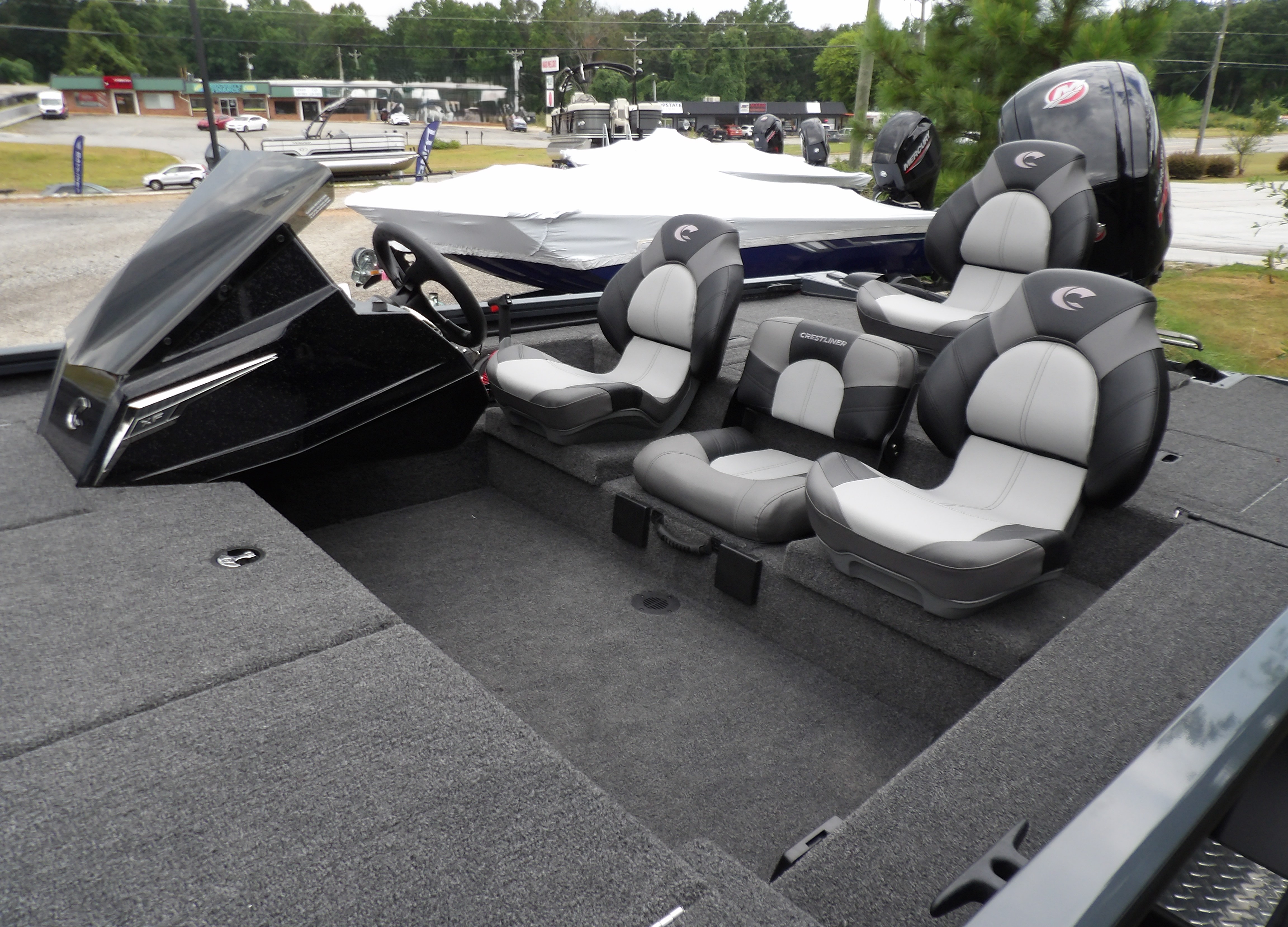 This new 2026 Crestliner XF 189 in dark grey metallic looks good on the trailer, but even better on the water. This new Mod- V aluminum bass boat from Crestliner comes with all the standard features of the XF series plus these added options: Reliable power from Mercury 115 hp PRO XS Four Stroke outboard, the Pro Package including- (black sport steering wheel, windscreen, automatic bilge pump, stern recirculating live well pump, insulated live well and storage lids, chrome latches, LED interior lights on the decks, stern live well & rod locker, ratchet straps & upgraded mag wheels on the trailer), center seat option & 24V 6 gauge trolling motor harness all sitting on a matching Crestliner bunk trailer. Looking for the latest in electronics? This boat is a blank canvas for you to add the latest tech from Humminbird, Lowrance, Garmin or Minn Kota. Have our service dept give you a quote to get just the right gear for however you fish. For more details, the latest in pricing and incentives give us a call at Eclipse Marine Seneca (864) 653-6767 or stop in and see us at 305 US Hwy 123 bypass Seneca, SC.