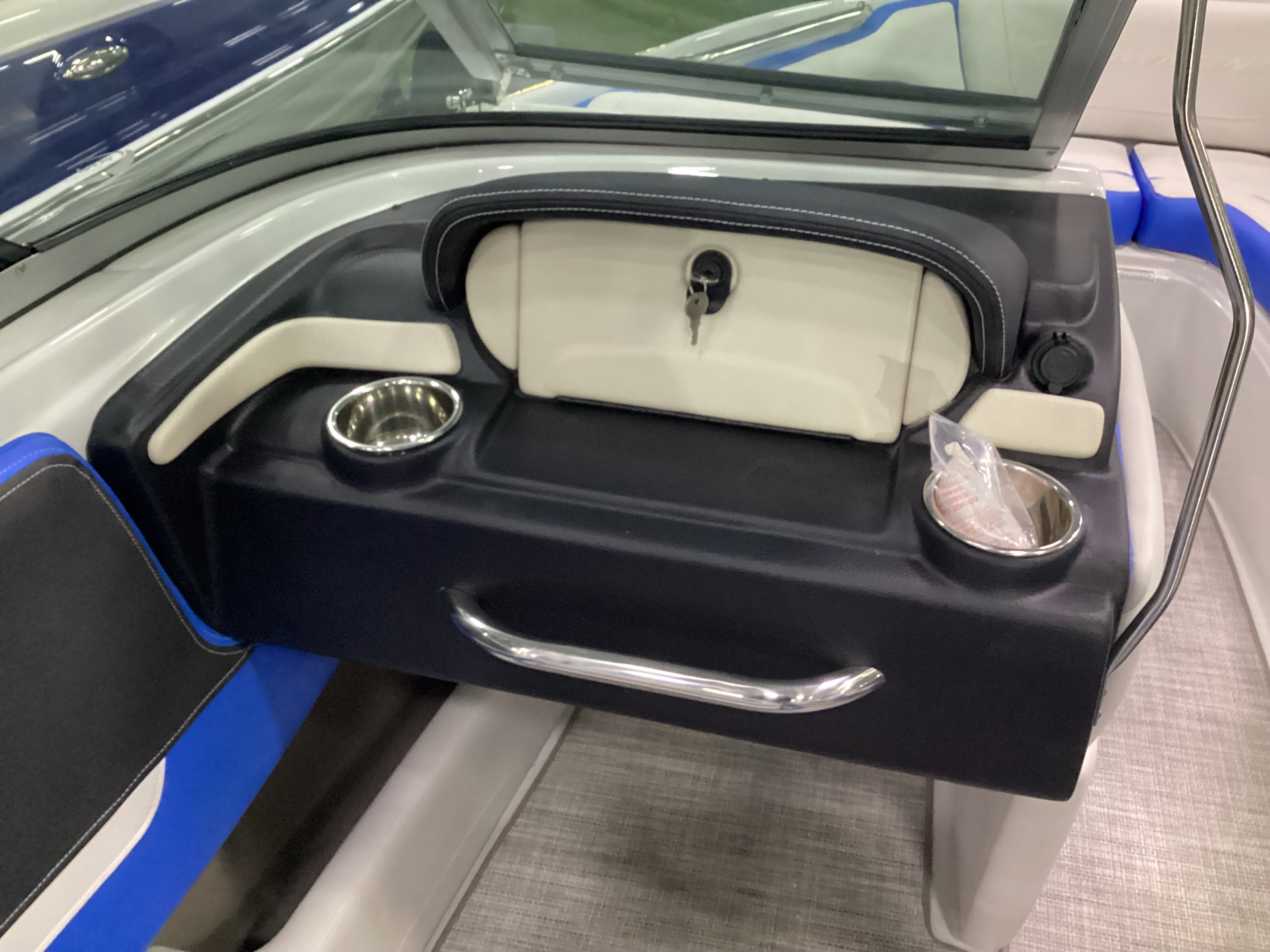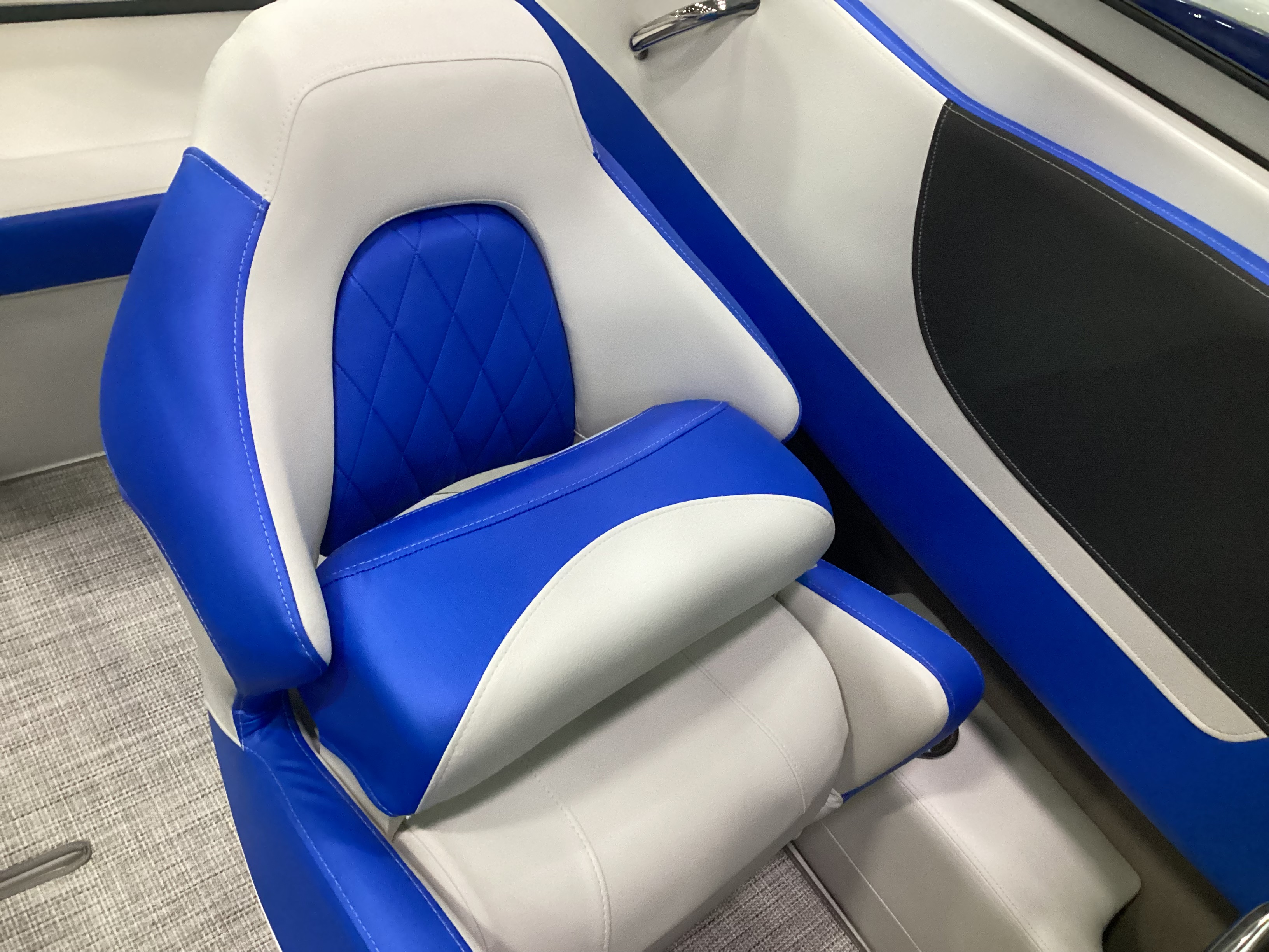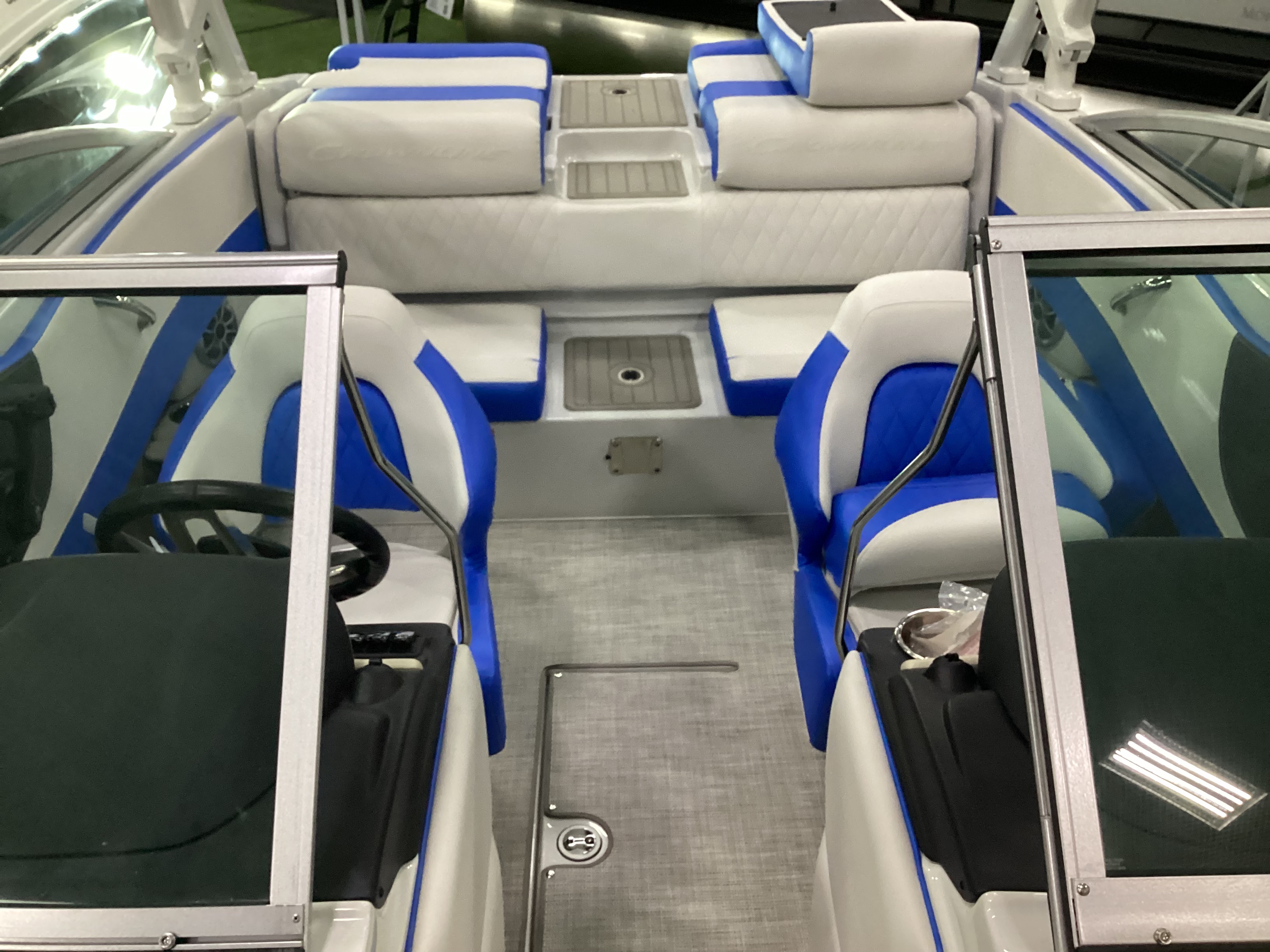 The 210 SS has a sporty silhouette and features a walk-through transom with filler cushion to create a full-length sunbed area for relaxing and catching some rays. There’s comfortable seating throughout this model including driver and passenger Gen-2 bucket seats with flip-up bolsters, rear bench seat with hidden storage, and bow seating with 16-degree lean backs, pillowtop cushioning, flip-down armrests and dual aft sun lounges.