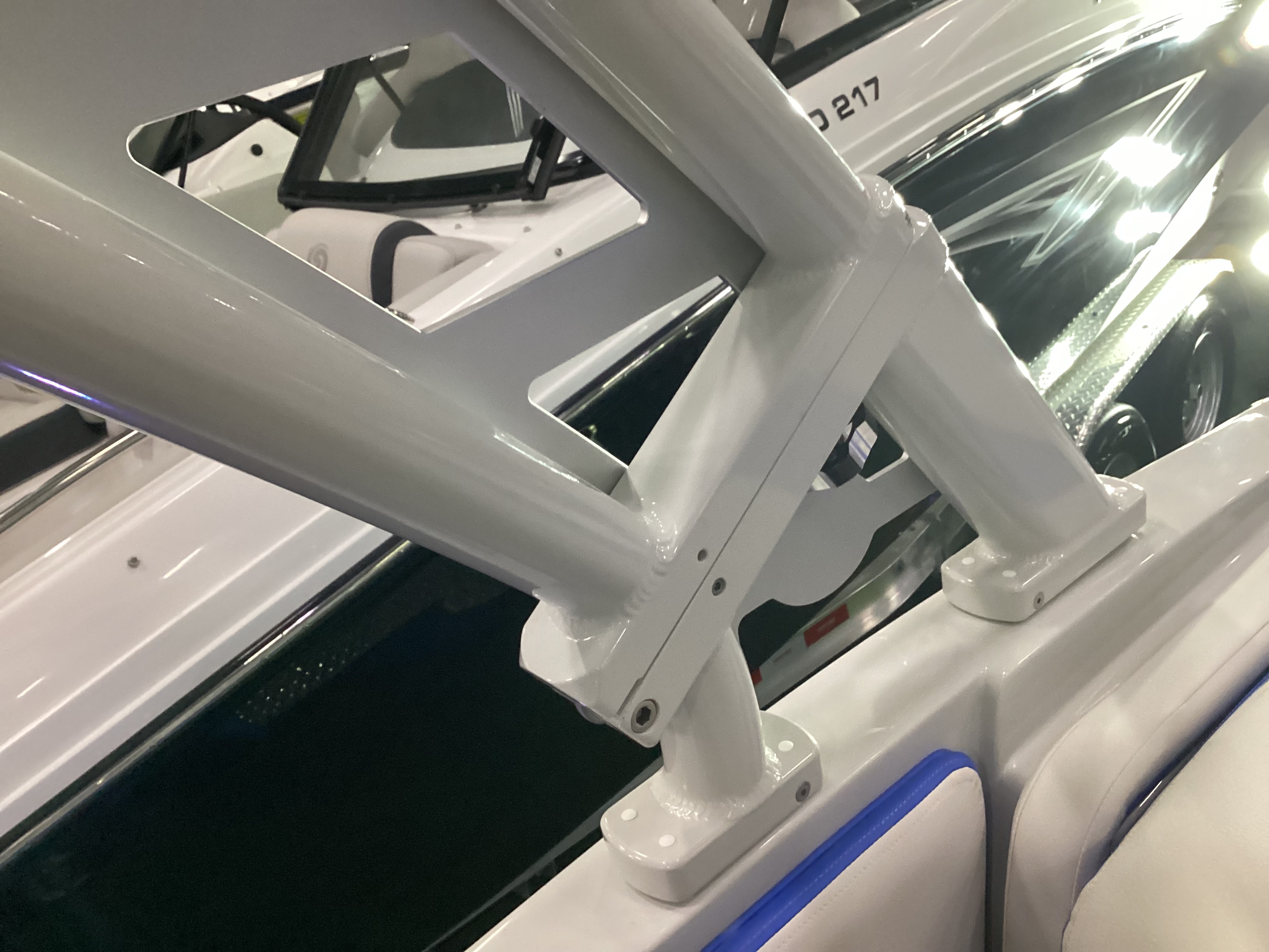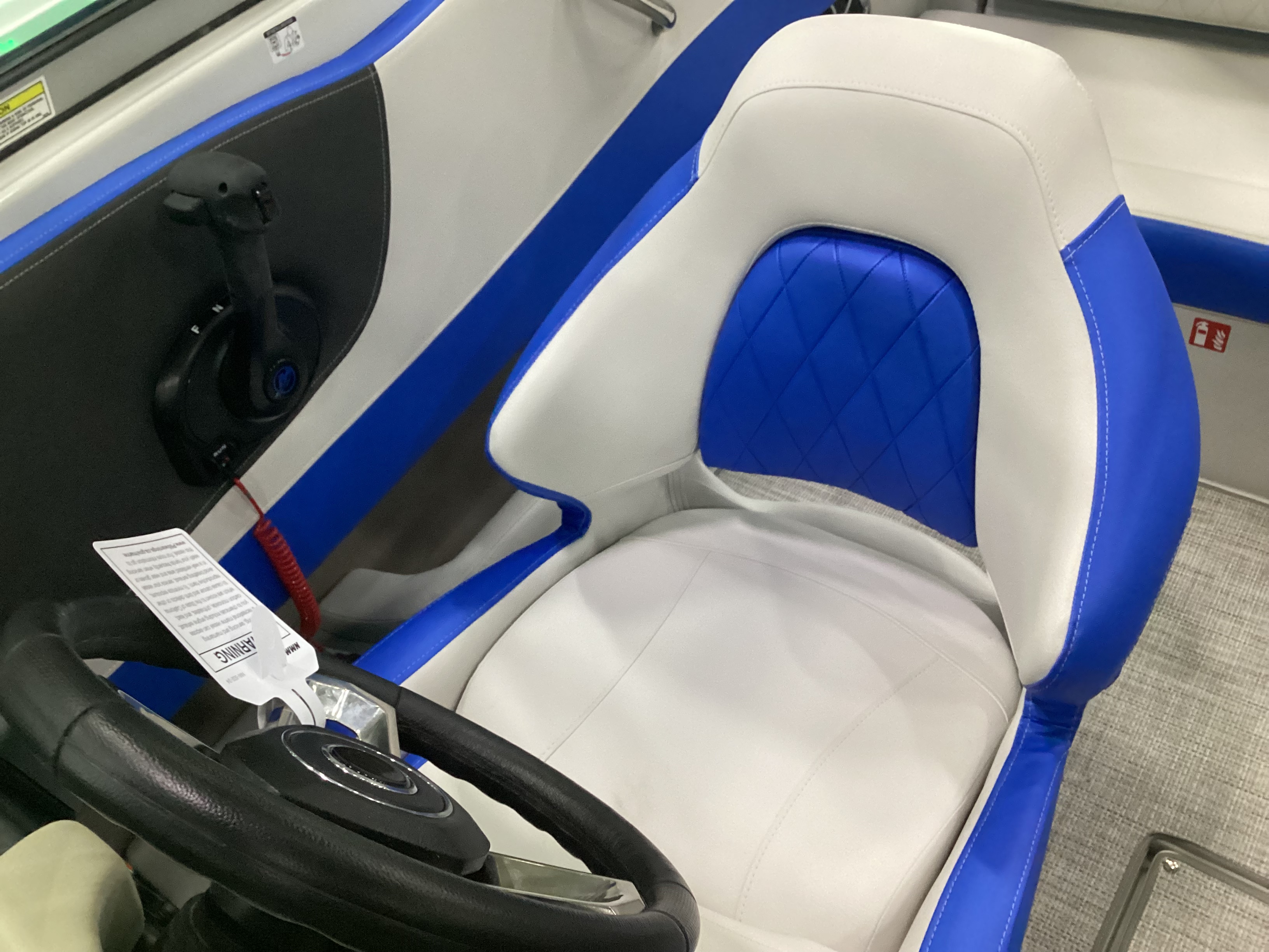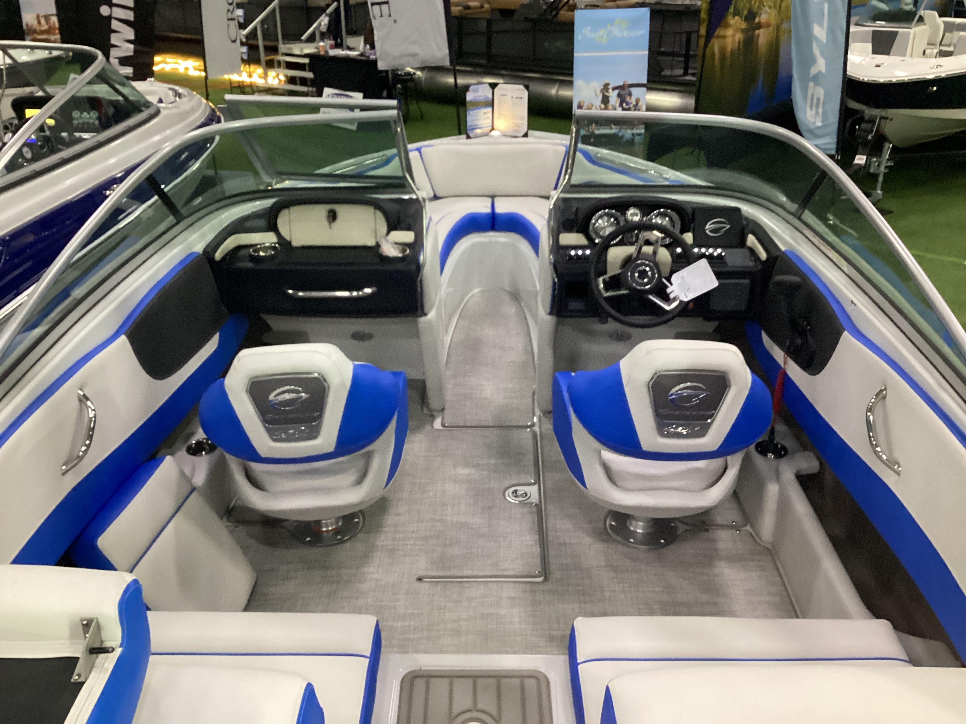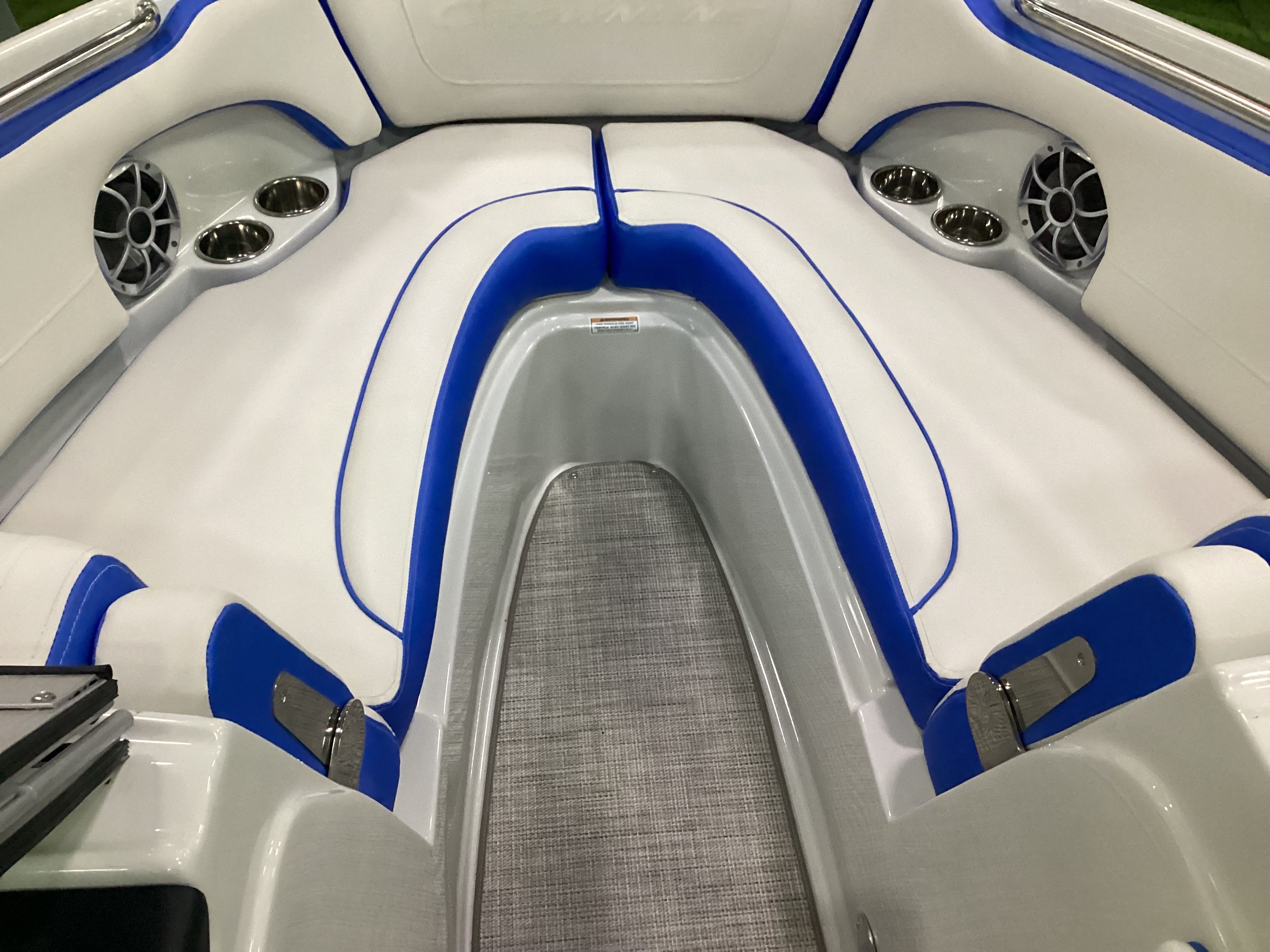 The 210 SS has a sporty silhouette and features a walk-through transom with filler cushion to create a full-length sunbed area for relaxing and catching some rays. There’s comfortable seating throughout this model including driver and passenger Gen-2 bucket seats with flip-up bolsters, rear bench seat with hidden storage, and bow seating with 16-degree lean backs, pillowtop cushioning, flip-down armrests and dual aft sun lounges.