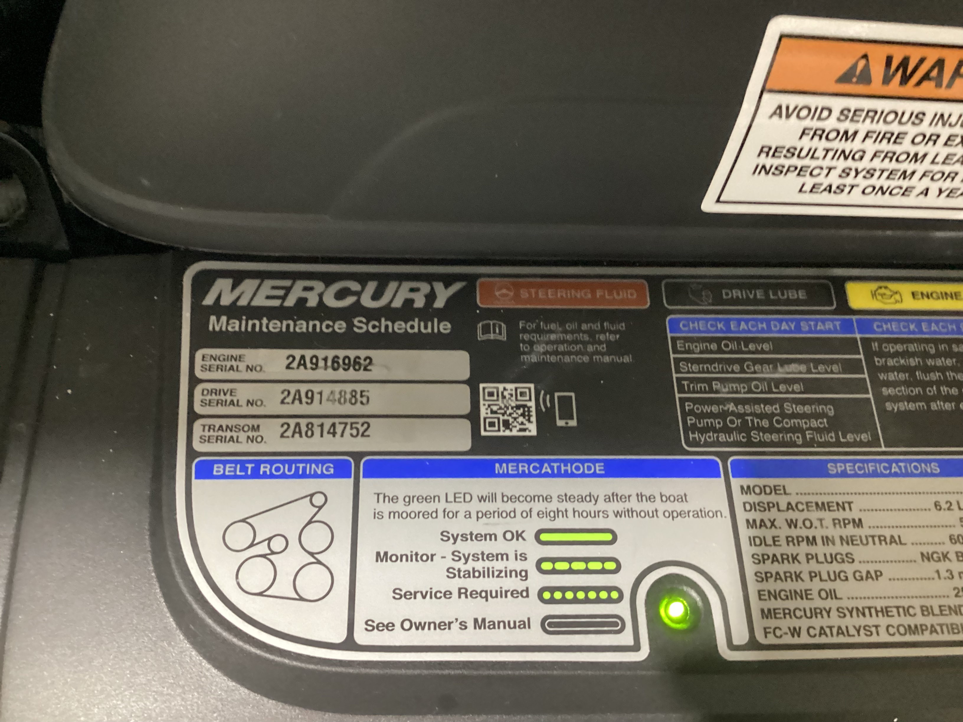 Engine Detail2026 Mercruiser 6.2L B3 w/DTS controls 300HP Inboard/Outboard