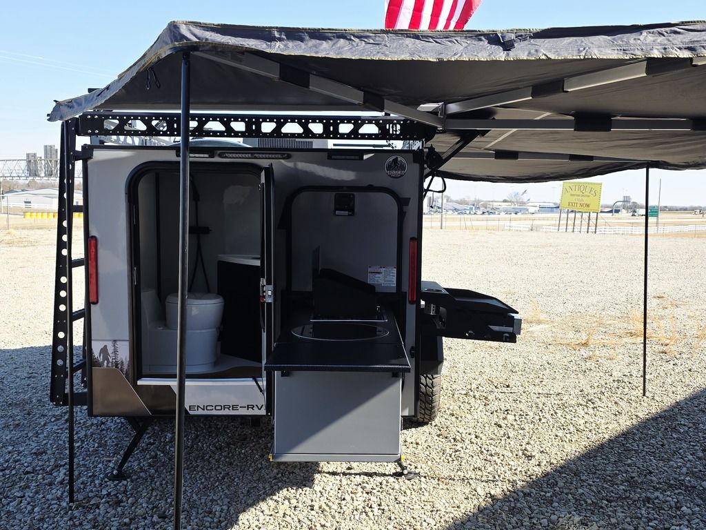 The 2026 Encore ROG 14RKB-SS is a rugged, ultra-lite travel trailer designed for outdoor enthusiasts who want off-road capability without the size and weight of a traditional RV. Built for adventure, this bumper pull camper features aggressive styling, durable construction, and a smart layout that makes it perfect for weekend trips, overlanding, or campground travel.