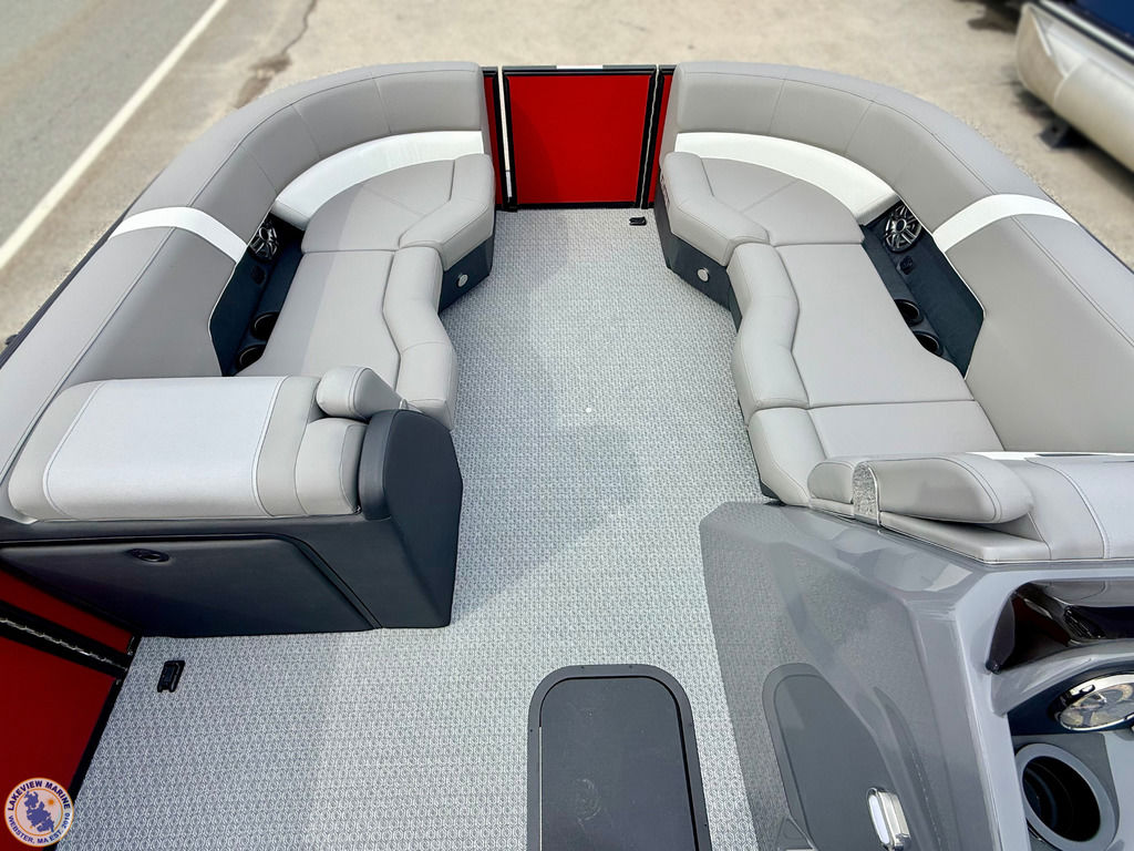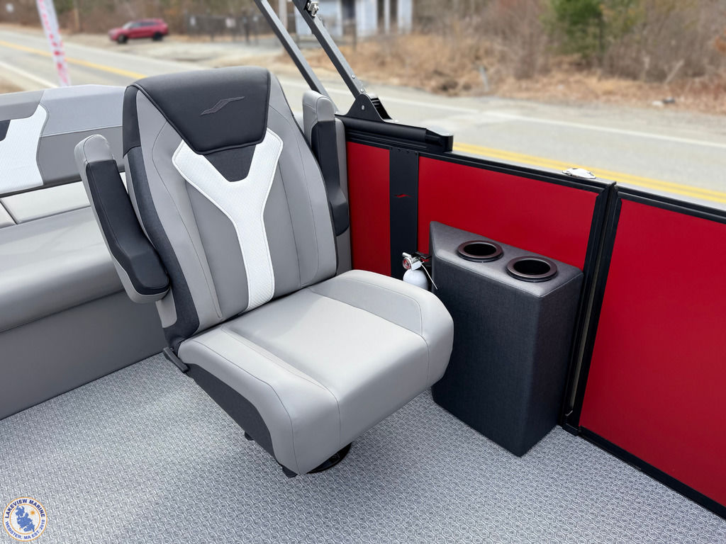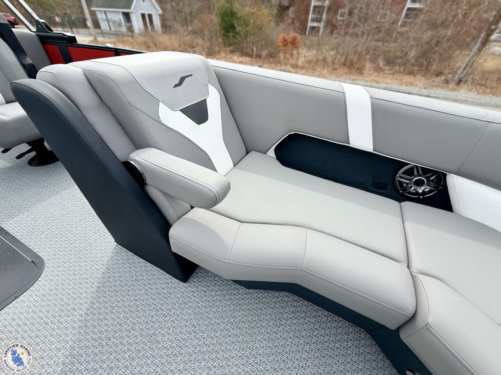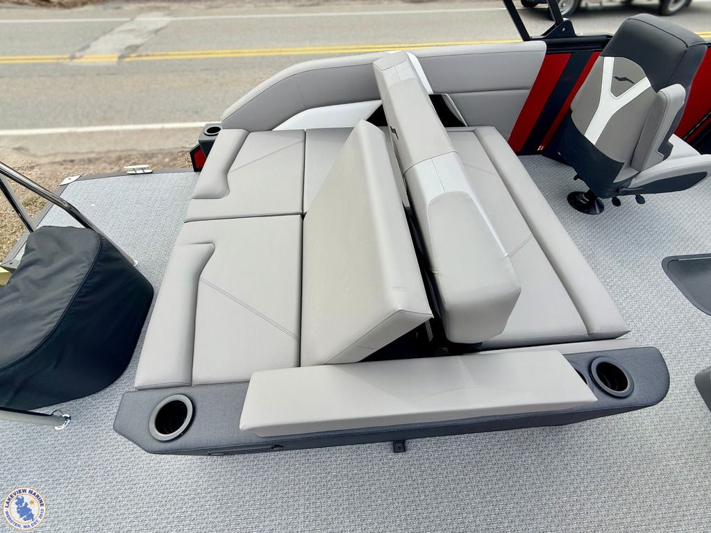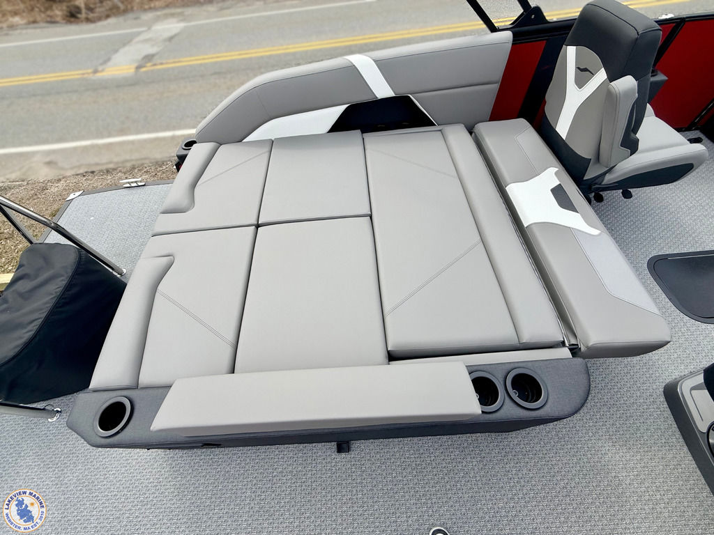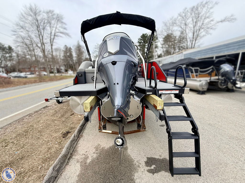 This Tritoon is powered by the 250hp Yamaha V-Max SHO and is built as a Saltwater Edition with Sealed Lifting Strakes and Saltwater Anodes for added durability. The convertible stern layout features two forward chaise loungers and a 7-position stern lounger, giving you flexible seating for relaxing or hosting. Key features include Power Assist Steering, RGB Interior Lighting, Exterior White Lighting, Single Battery On/Off Switch, a Fiberglass Helm and a Power Bimini!
