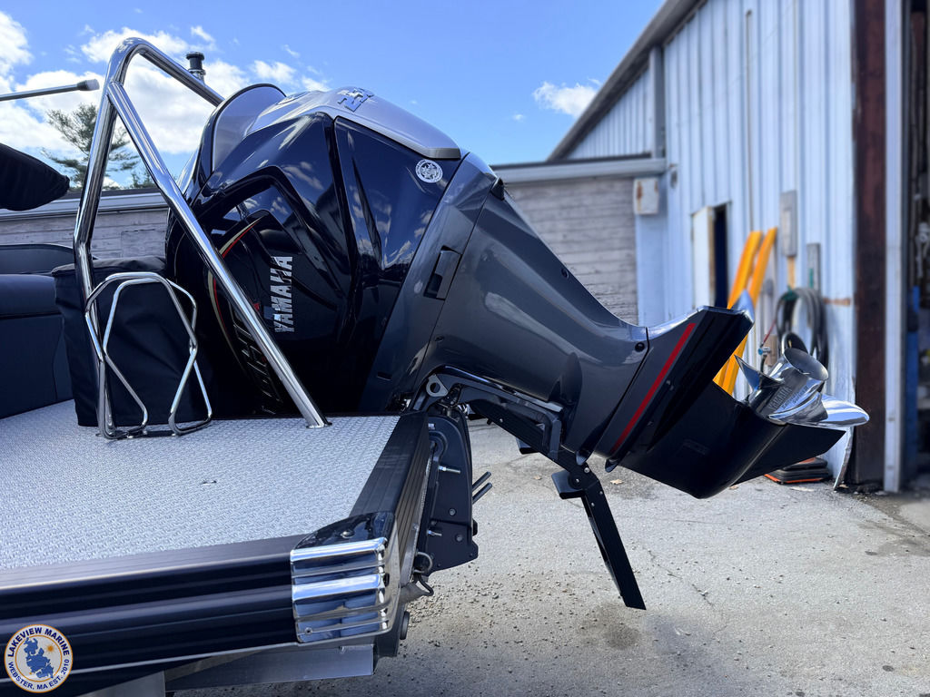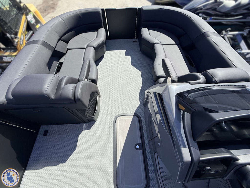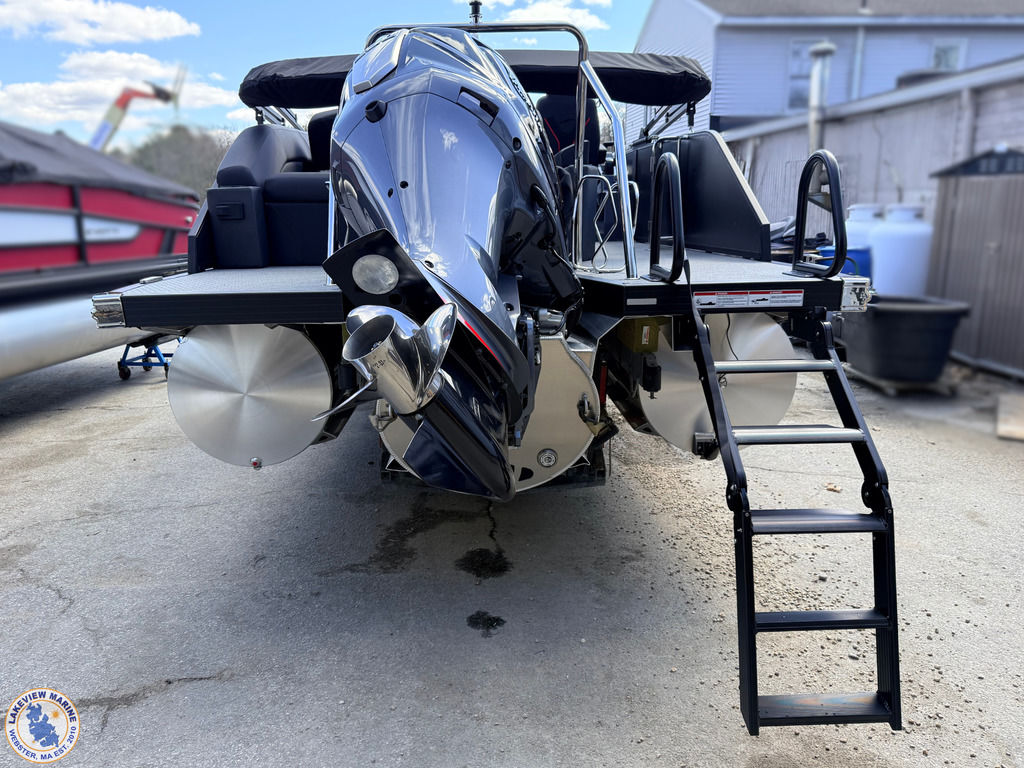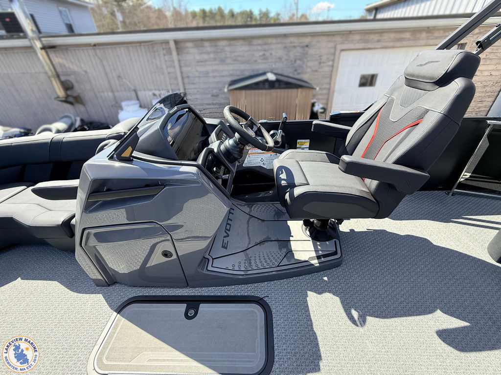 Evotti 723CS in Diamond Black Satin / Platinum Blue Satin! This tritoon is rigged with the 250hp Yamaha V-Max SHO Outboard for reliability and strong performance! Features include Spectra Black Interior Vinyl, Steel Gray Evolution Flooring, 15" Ultra-Wide Garmin Display, Power Assist Steering, 7-Position Convertible Stern, Exterior White Lighting Package and Fusion Head Unit w/ JL Audio Speakers, Sub & Amp!