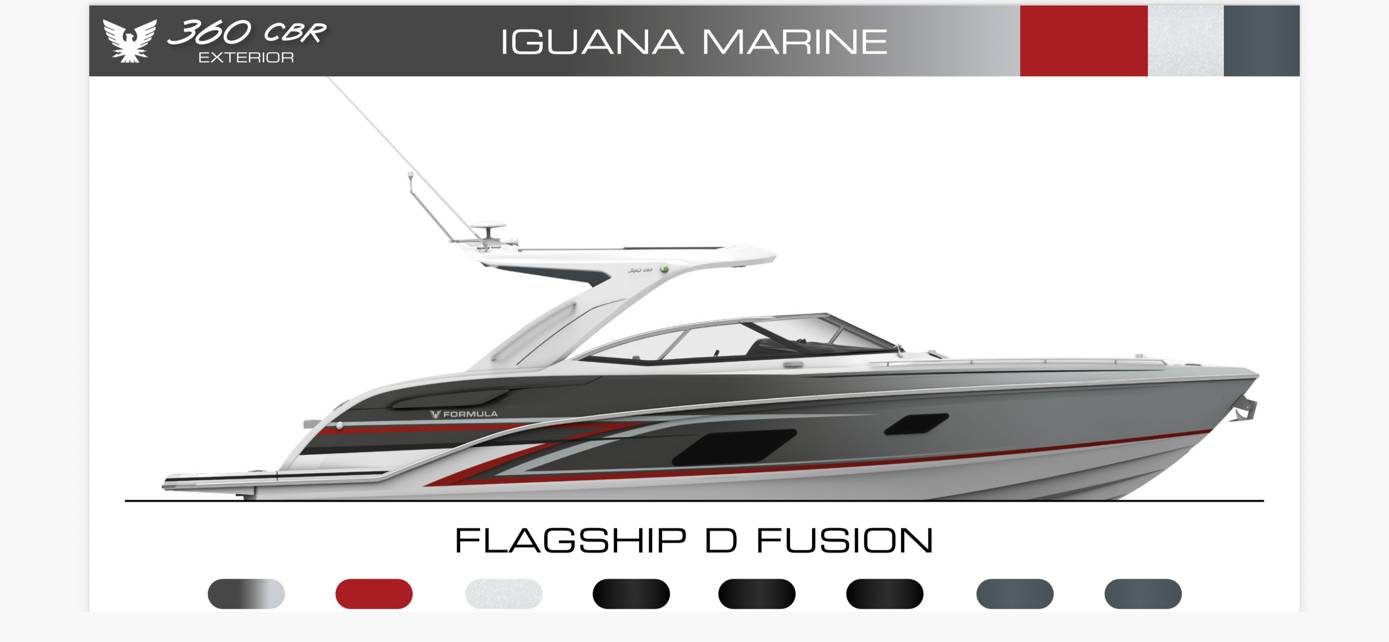 All-New 2026 Formula 360 CBR: A Unique Masterpiece on the Water Experience luxury and performance like never before with the All New 2026 Formula 360 CBR with Mercury 520 Racing engines . This world-class fisher-cruiser boat is adorned with a customised, awe-inspiring Fusion paint complemented with distinguished FX striping , ensuring you stand out on every adventure. One of the most striking features of this boat is its extended swim platform . Adding a whole new level of fun and convenience, it is furnished with a sea deck and an electric platform step. Moreover, a unique side board door caters to easy boarding and exiting. Cruise to your favorite soundtrack with the upgraded JL Audio Stereo system equipped with Fusion head units that deliver rocketing sound vibes throughout. The onboard entertainment is simply unparalleled! With a modern touch, the All New 2026 Formula 360 CBR features an innovative, sleek design. It includes a flush mounted 16" Raymarine with a newly designed dashboard that enhances its stylish appeal. The Lovorsi throttles, shifters, and the thoughtful placement of joystick controls ensure a seamless, intuitive interaction with the boat. A true one-of-a-kind marvel, this masterpiece coupled with top-tier performance is built to prominently impress. Don’t miss out on the chance to own this unique build. For any inquiries or to schedule a viewing, please call Iguana Marine Group Oklahoma at 918-921-6363 .