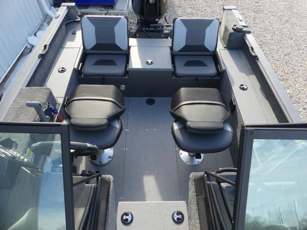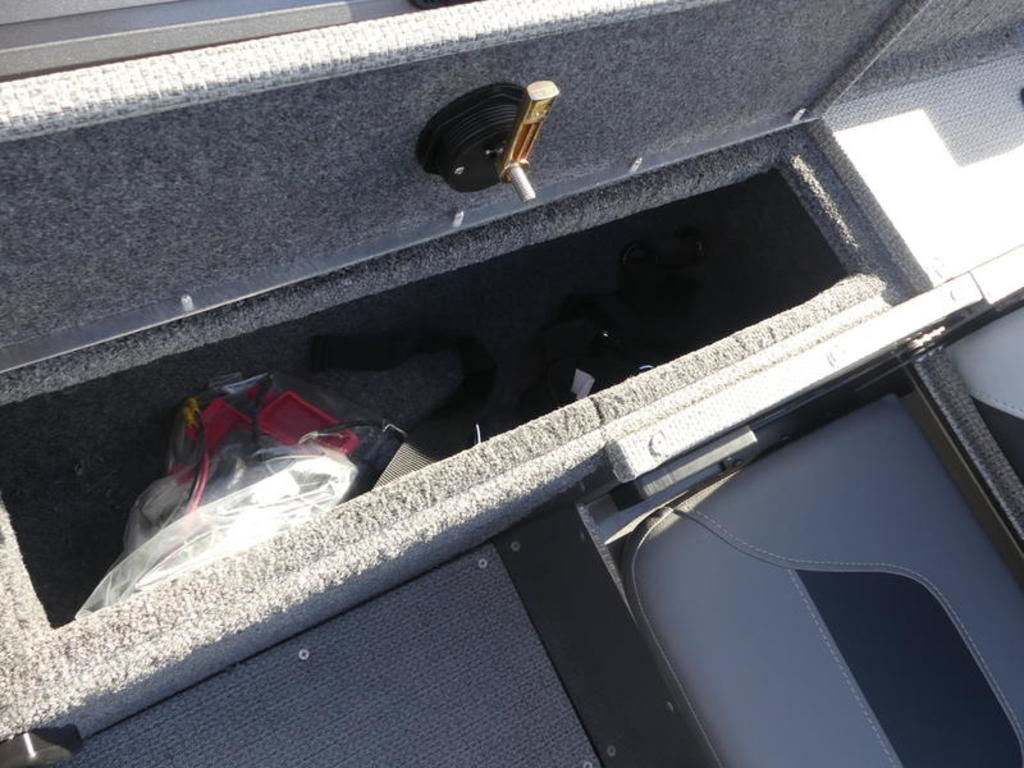 Step onboard and you’ll find a thoughtfully designed layout that maximizes your freshwater fishing experience. The spacious interior offers plenty of room to move while casting, while the elevated bow casting deck gives you the perfect vantage point for targeting bass, crappie, and other freshwater favorites. Multiple storage compartments, including dedicated rod storage, help keep your gear organized and secure so you can focus on fishing.