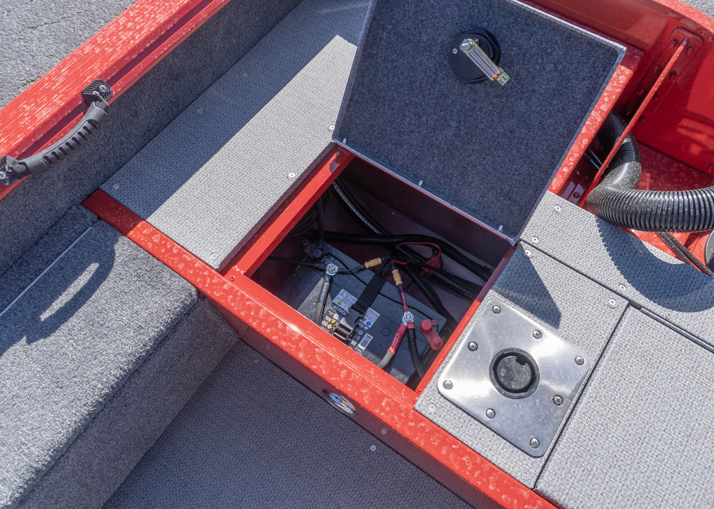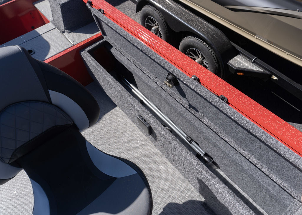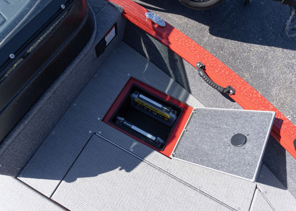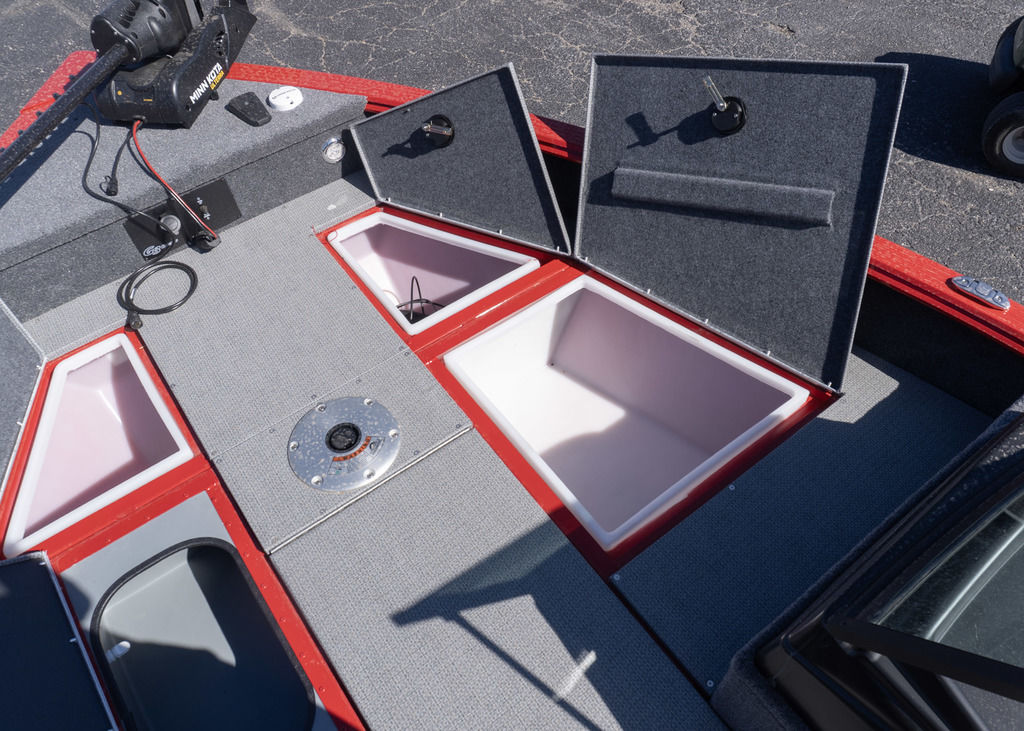 Never a lack of storage space. Storage keeps your gear dry. Has a 15-gallon livewell with tackle tray storage close by.