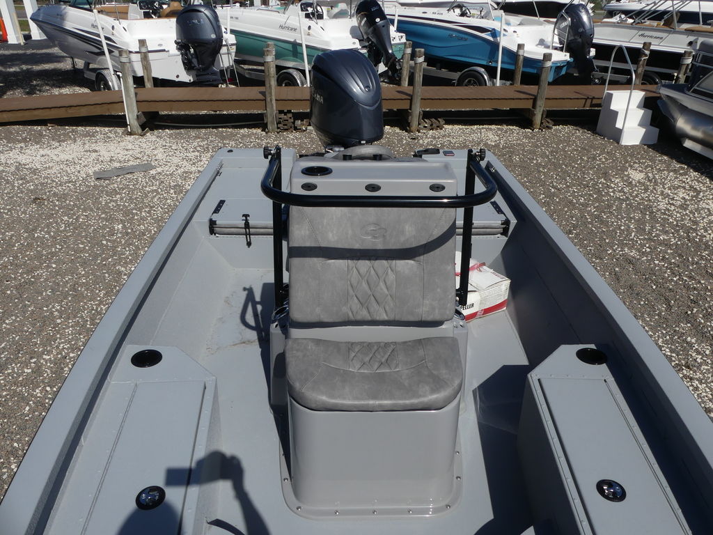 - Lean post and two fish seats are standard on the GX models. Shown here in the new smokey gray upholstery.