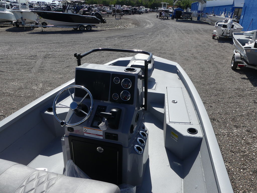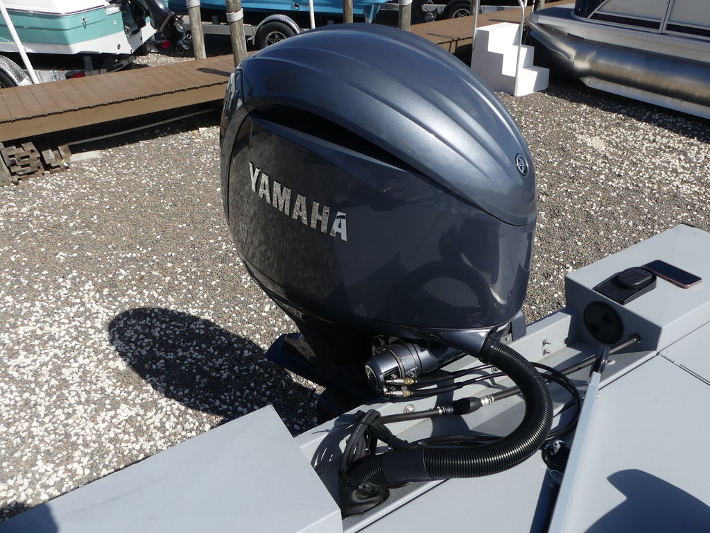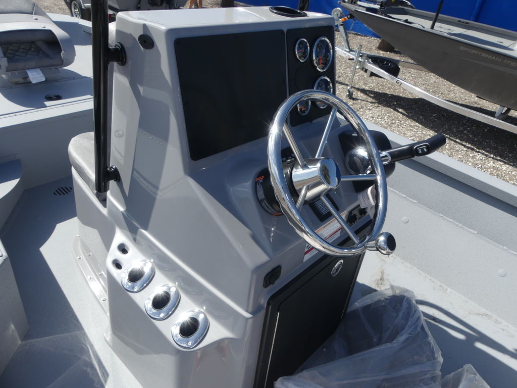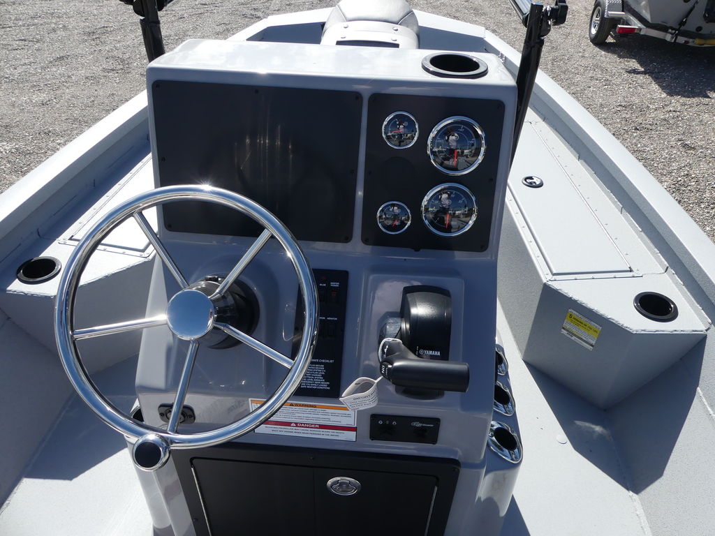 - Stainless steel steering wheel, Yamaha gauges, place for electronics, console door and upright rod holders.