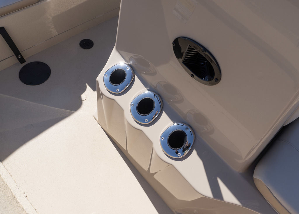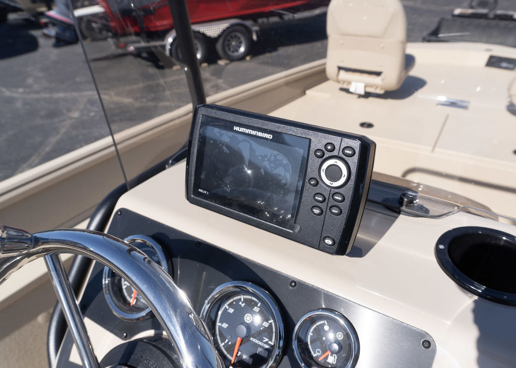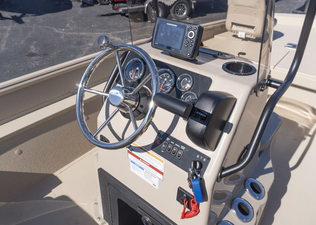 Console allows for larger electronics, has Yamaha gauges, stainless steering wheel and built in cupholder.