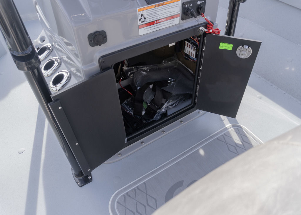 - Abundant storage in the bow with port side rod storage compartment.