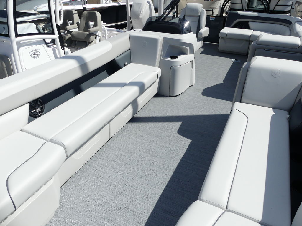 - Our stern storage box, featuring tip-out fender storage and dock line hooks, offers ample space for all your on-the-water essentials.