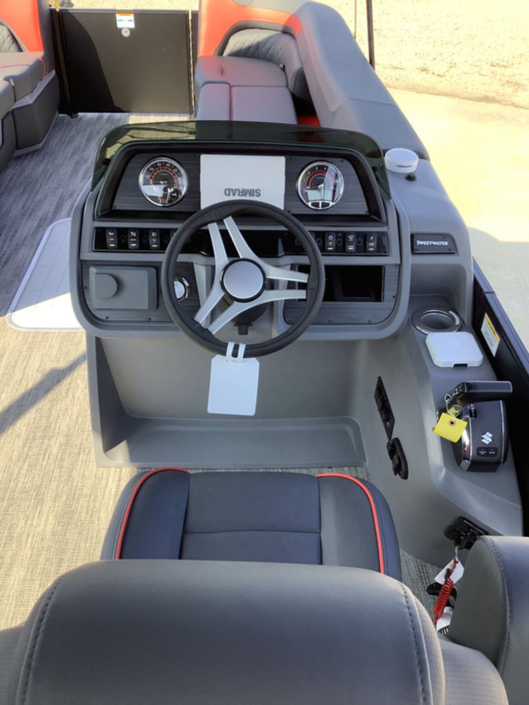 Power Options: The Sweetwater 2486 SFLC can be equipped with outboards ranging from 150 HP to 400 HP, depending on the chosen pontoon package.