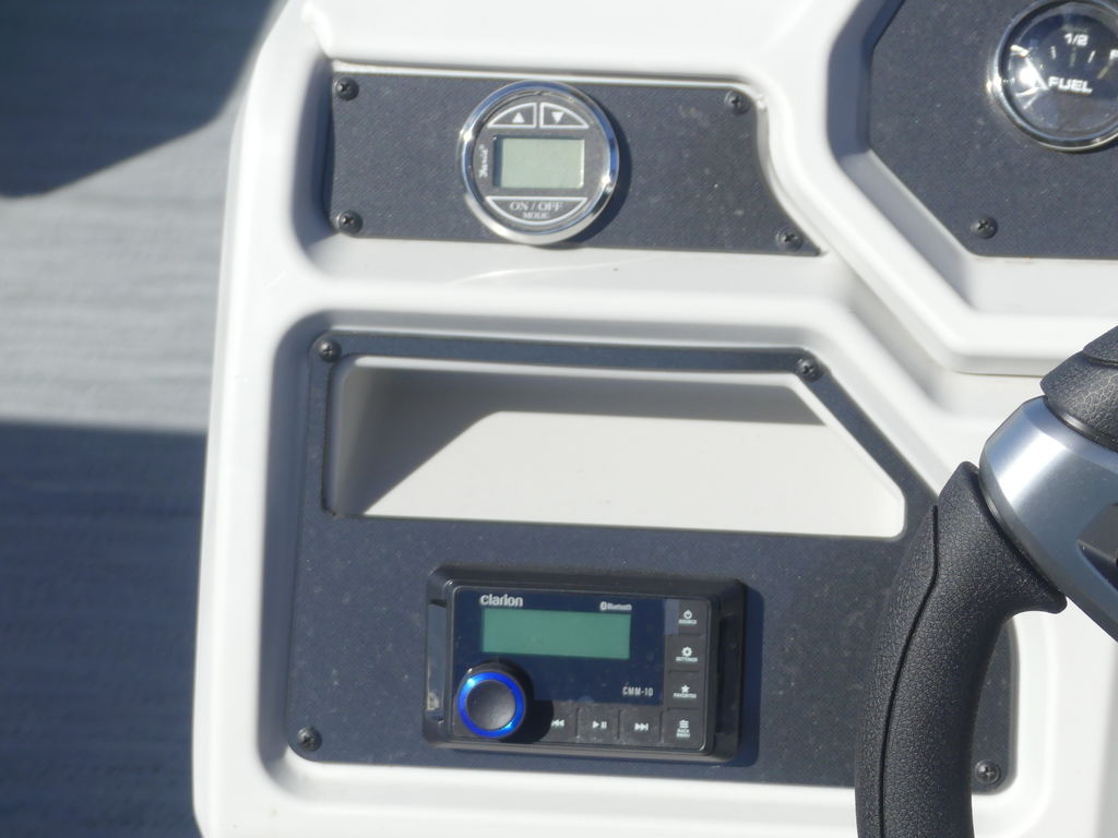 Steering the Course- The Xperience's helm is equipped with perfectly placed controls and an optional wireless phone charger mount to create a difference you can see and feel.