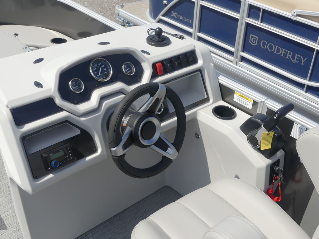 Godfrey’s proven pontoon construction ensures durability and a smooth ride, while the open layout maximizes usable space for relaxing, casting a line, or simply enjoying a day on the lake. Whether you’re planning a peaceful morning fishing trip or an afternoon cruise with friends, this model delivers the versatility today’s boaters expect from quality pontoons for sale.