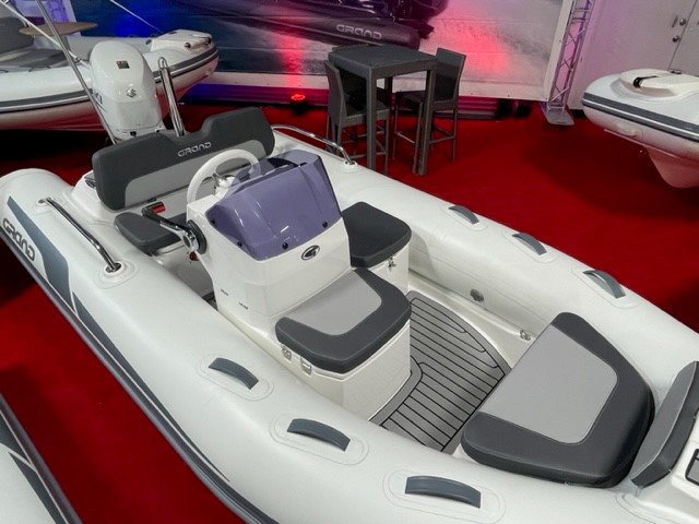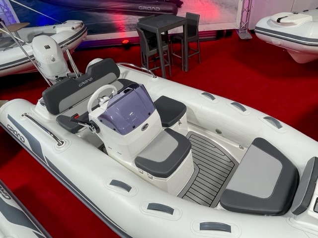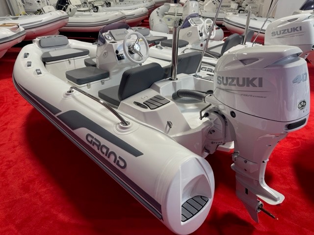 The G380, with it's smooth lines and ergonomic layout have put itself in the forefront of popularity. Seating 5 people in seats with ample storage below deck makes the Grand G380 the perfect yacht tender for those who want to stay in the 12' dinghy size and under 700 lbs while still having a deluxe luxury tender. Rigged with a 60hp, the G380 has more than enough power to do what you want to do.