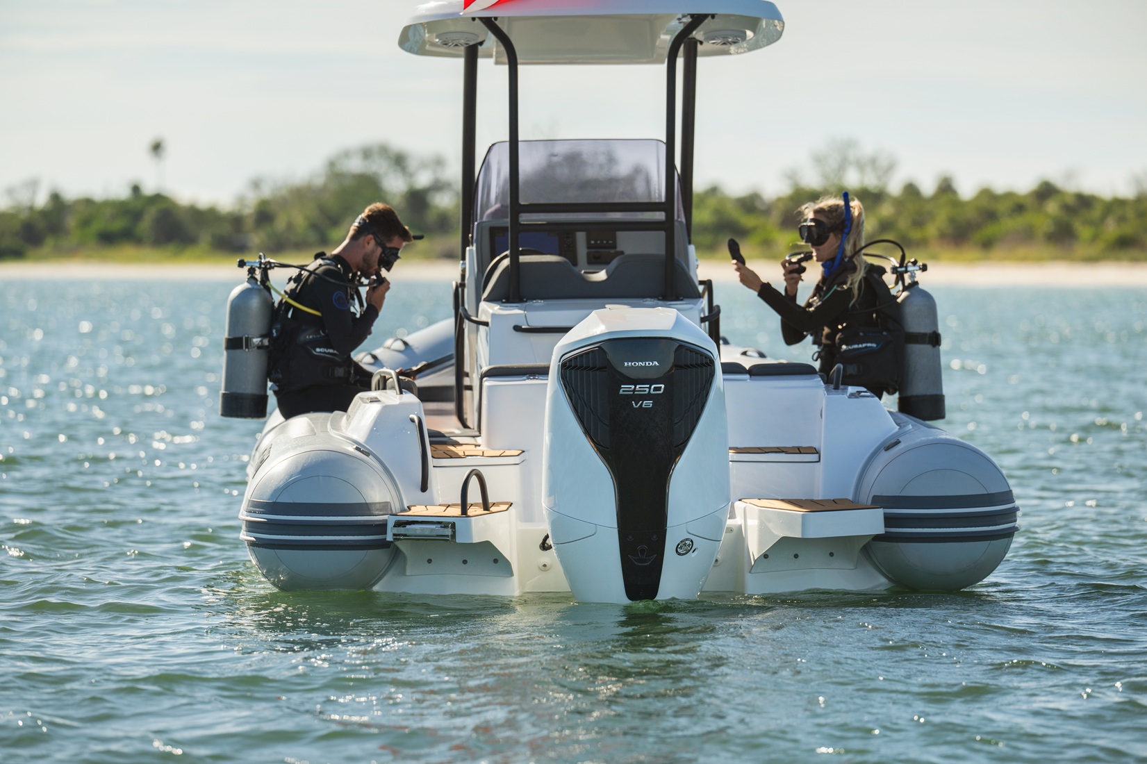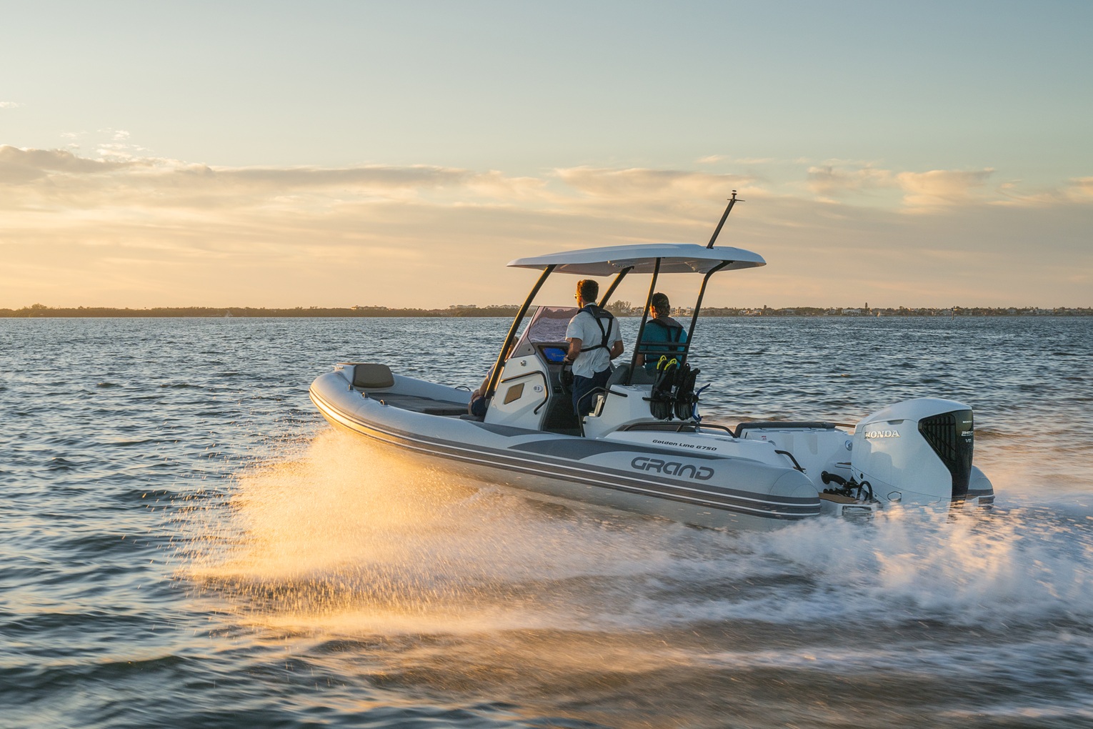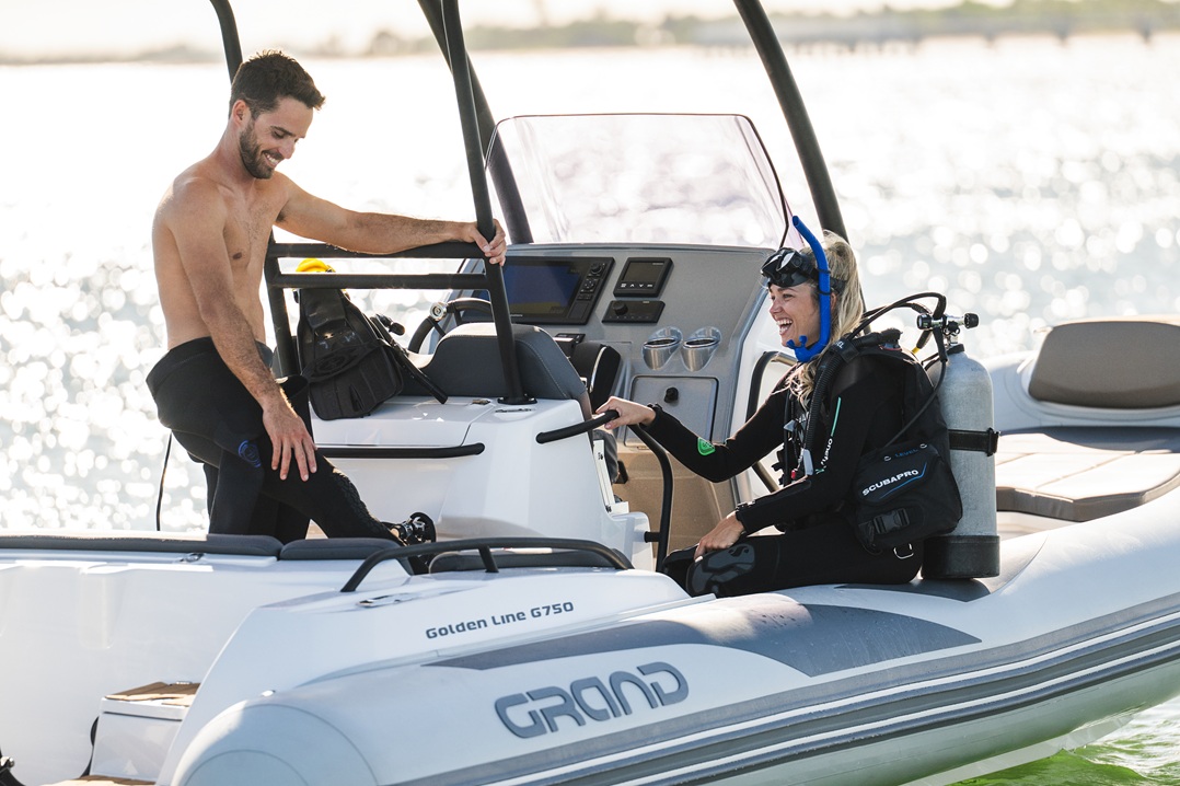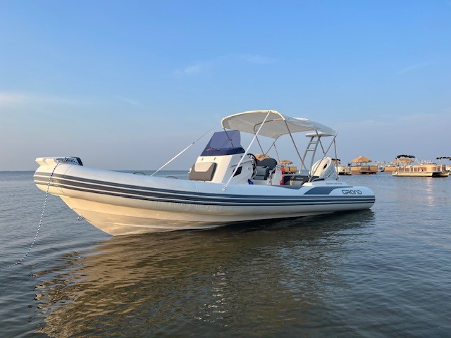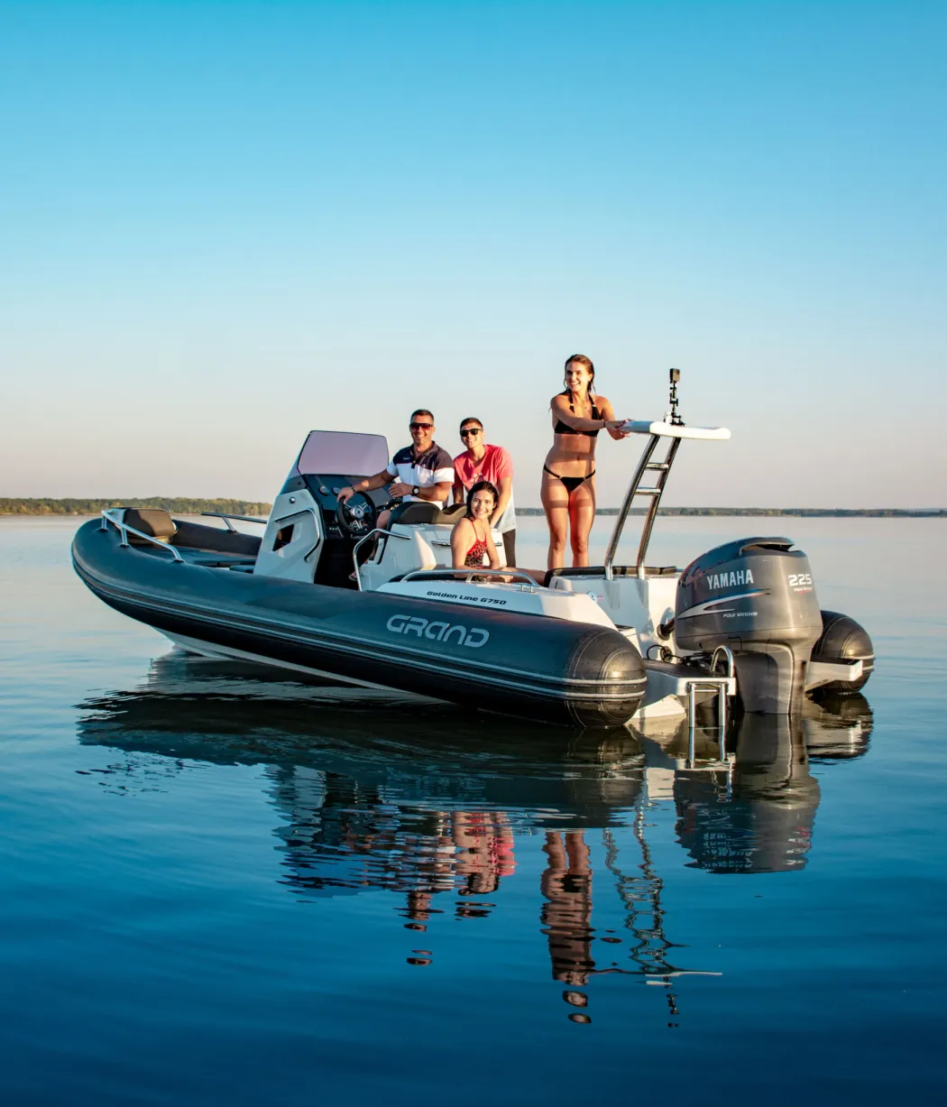 The extensive specification and options list includes features customers expect from their GRAND RIBS including a U-form rear sofa-style seat that now includes a boarding passageway, stainless steel bow rails, a newly designed centrally-positioned steering console with internal space for a marine WC, a new 260 liter built in fuel tank, a spacious and expandable bow sundeck, GRAND’s stylish waterski towing arch, accommodation for up to 10 passengers and much more!