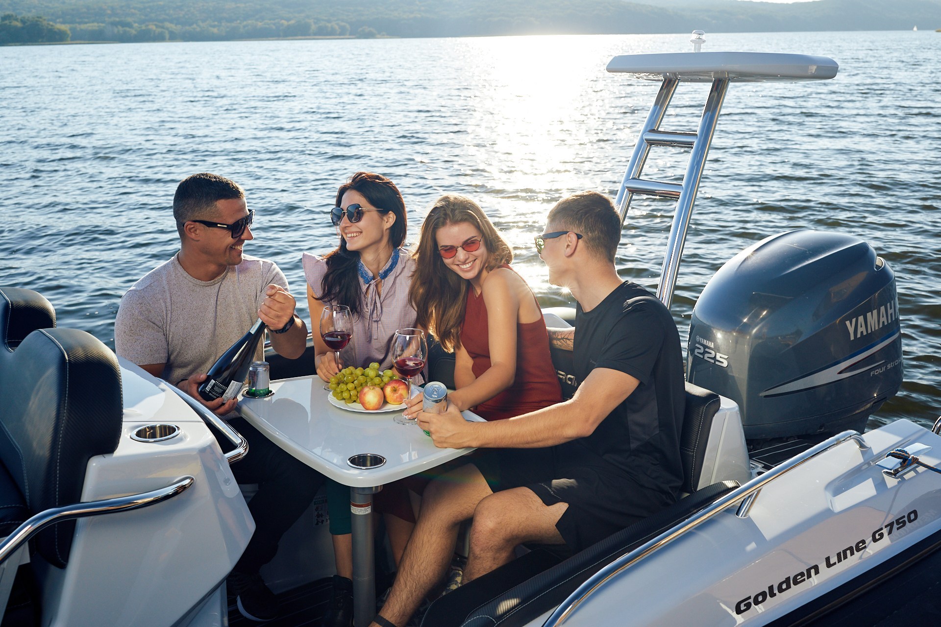 - Fiberglass T-top with integrated speakers