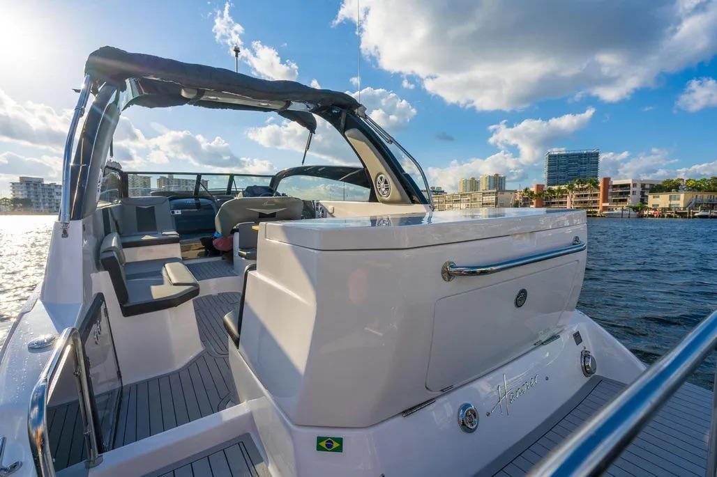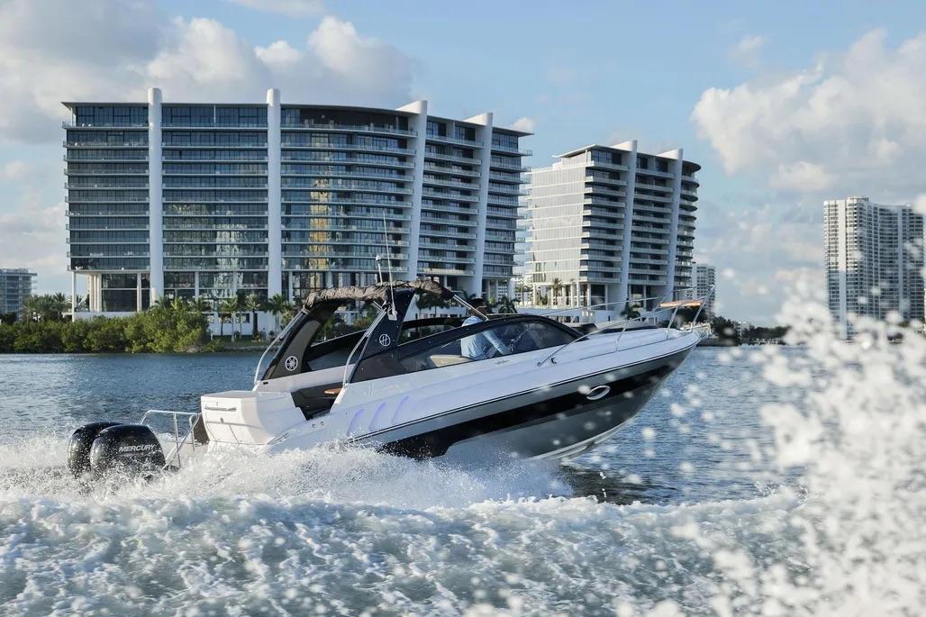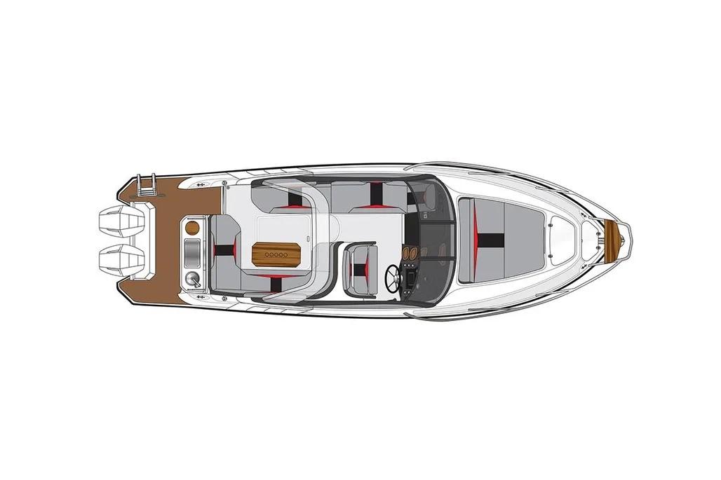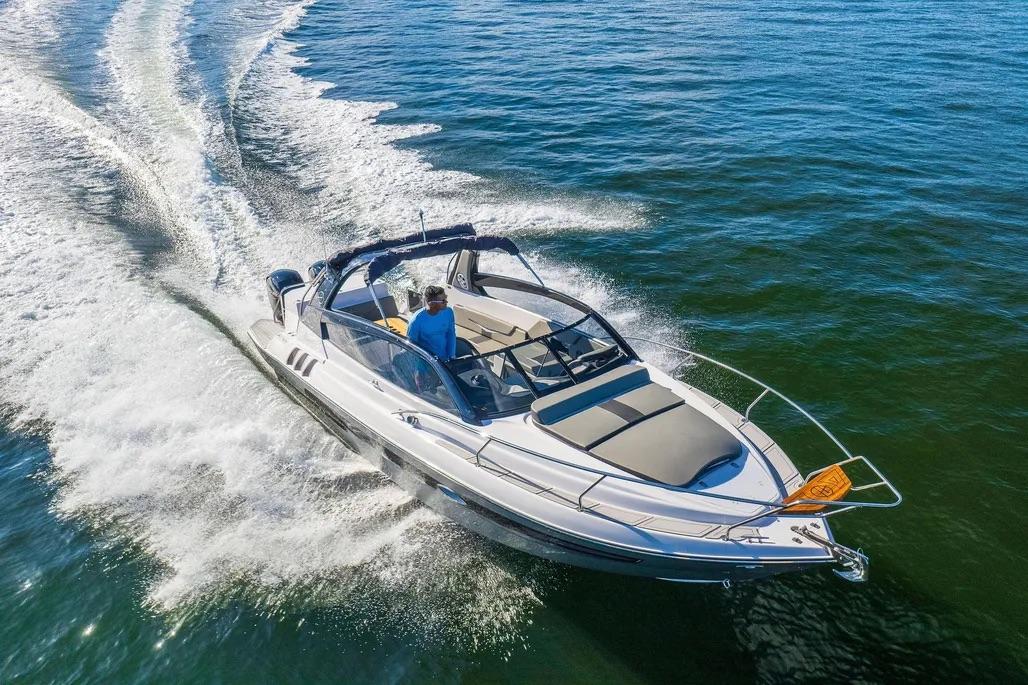 Popular options: Electric trim tabs • Electric windlass w/ 7.5 kg anchor & 40 m chain • Hot-water boiler • A/C–inverter–charger system • 12 V/USB outlets • Wakeboard mast • Cockpit stools (2) • Fenders & lines • USCG safety kit