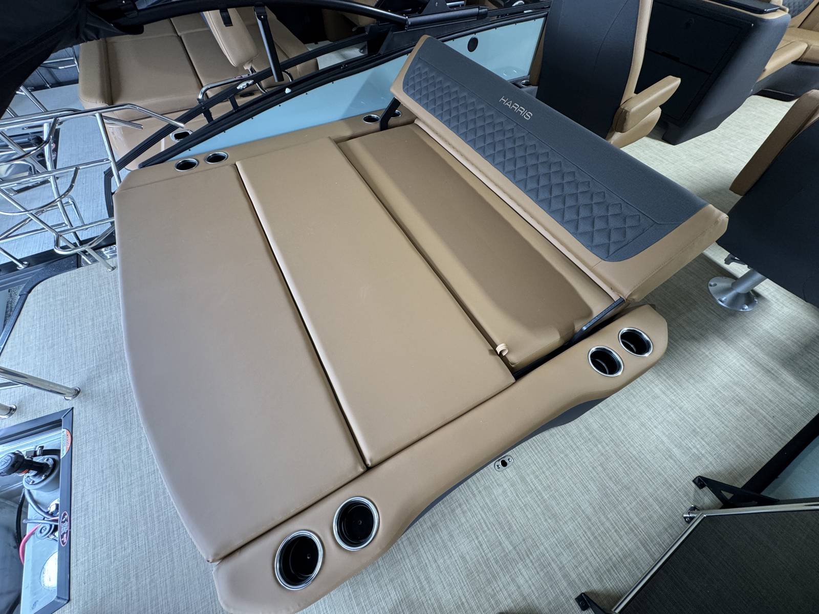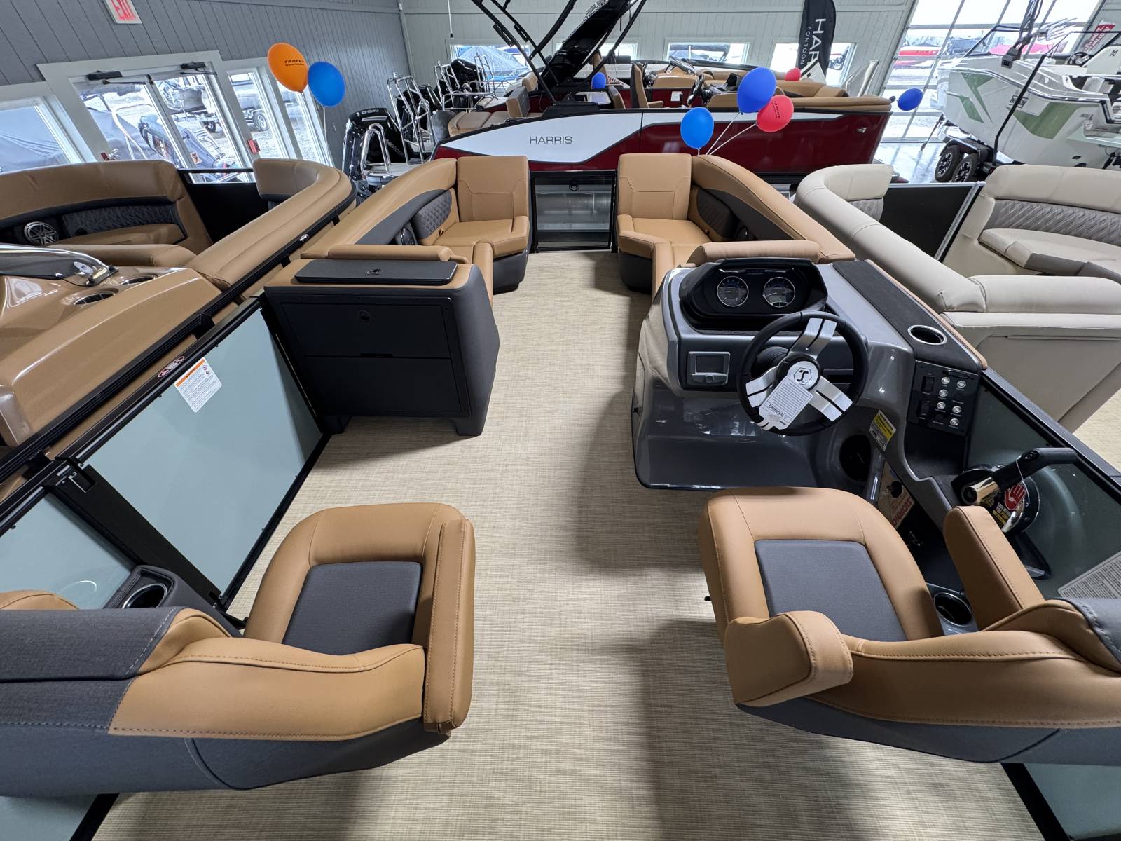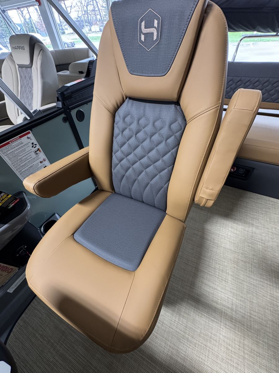 2026 Harris 230 Sunliner powered by a Mercury 90ELPT CT 4S!Factory Installed Options:Exterior- sage green with matte black accentsInterior- chestnut brownBlack edition 225 chassisXtreme/tilt steeringContour power bimini topInterior lighting packageLillipad easy step ladderStainless steel ski tow barUltra lux high back helm seatsDesert beige seagrass flooringUpgraded steering wheelWetsounds 600Chaise end cooler storageSee through bow gateDouble battery selector switchSafety railLuxury sport woodgrain table