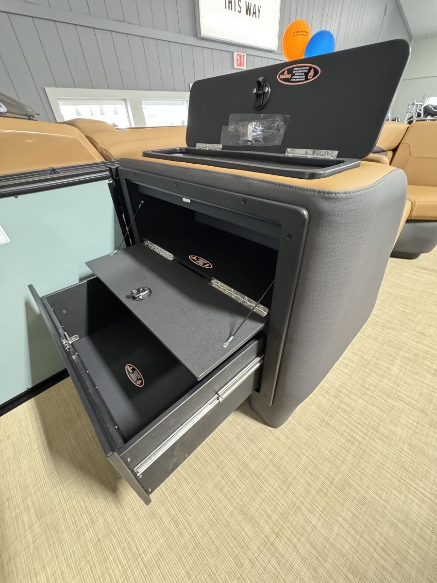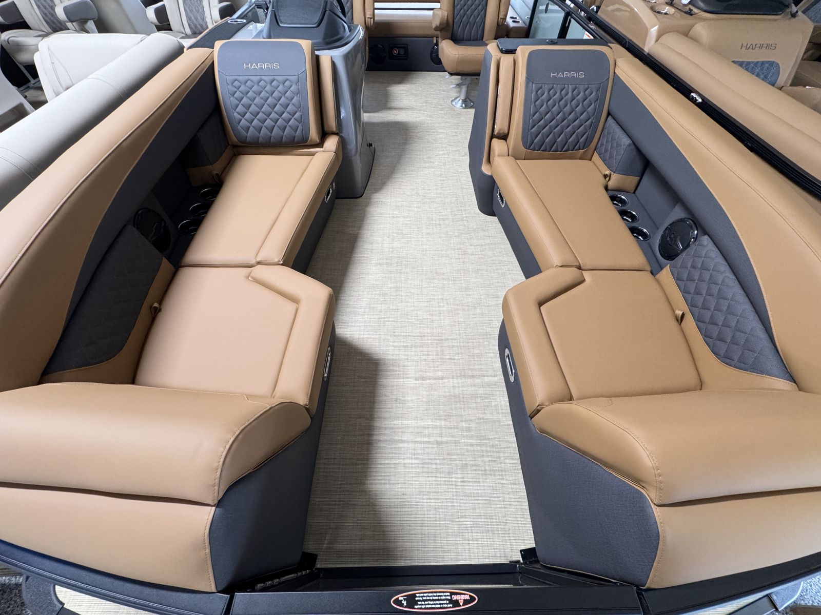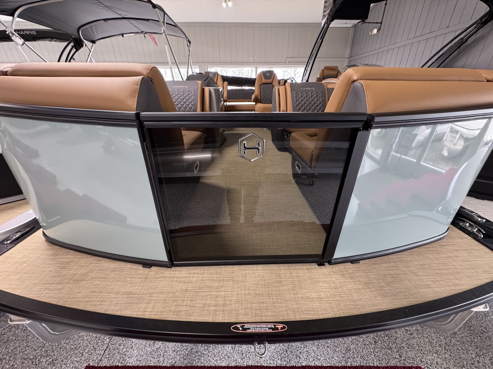 2026 Harris 230 Sunliner powered by a Mercury 90ELPT CT 4S!Factory Installed Options:Exterior- sage green with matte black accentsInterior- chestnut brownBlack edition 225 chassisXtreme/tilt steeringContour power bimini topInterior lighting packageLillipad easy step ladderStainless steel ski tow barUltra lux high back helm seatsDesert beige seagrass flooringUpgraded steering wheelWetsounds 600Chaise end cooler storageSee through bow gateDouble battery selector switchSafety railLuxury sport woodgrain table