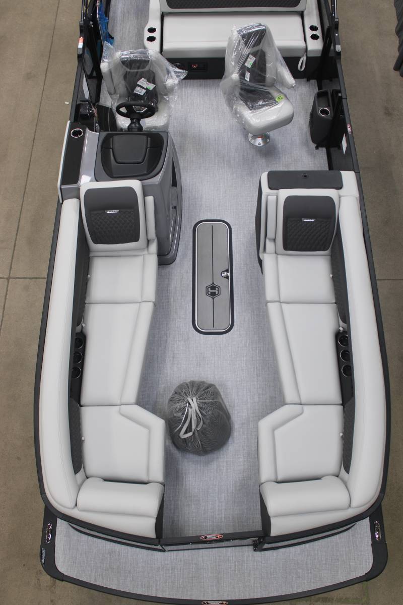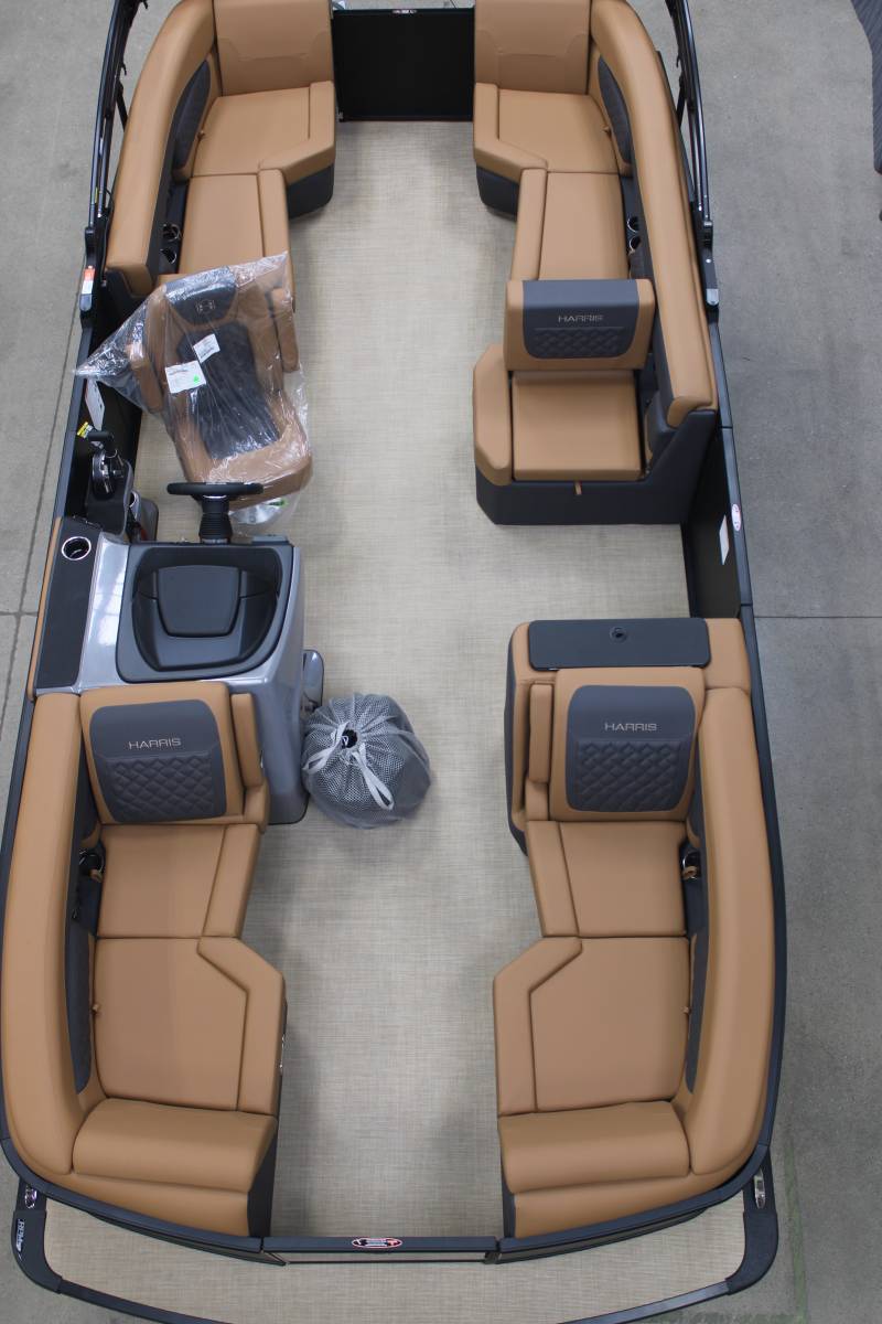 Gorgeous Harris Tri Toon powered by a 250 DTS MercurySLDH FloorplanFor additional details call us today at 800-875-2620 and select the location nearest you