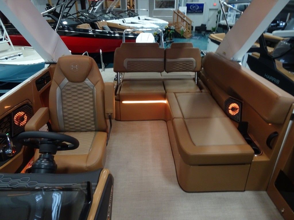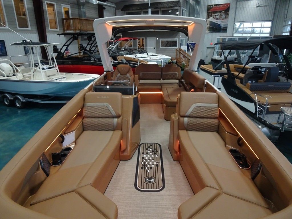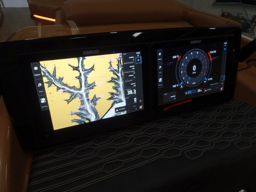 Luxury RedefinedUser-friendly boating technology is standard on the Crowne. You'll enjoy dual Simrad NSX12 screens and live-data connectivity through the My Harris mobile app, and you'll discover that onboard technology has never been more intuitive.