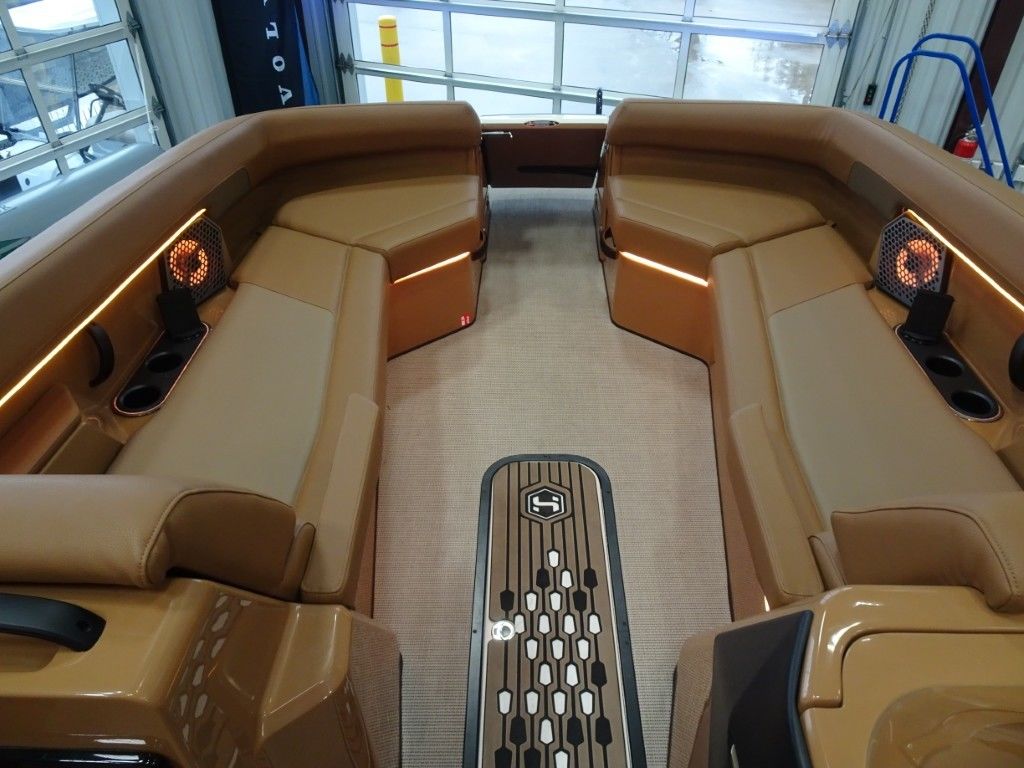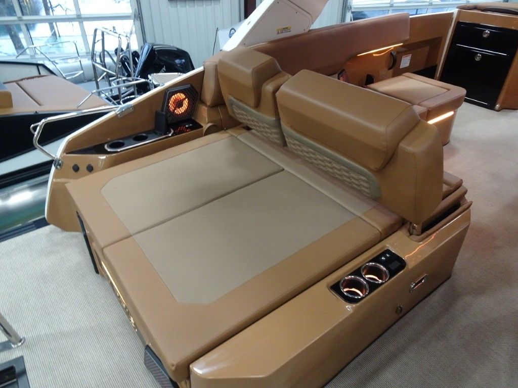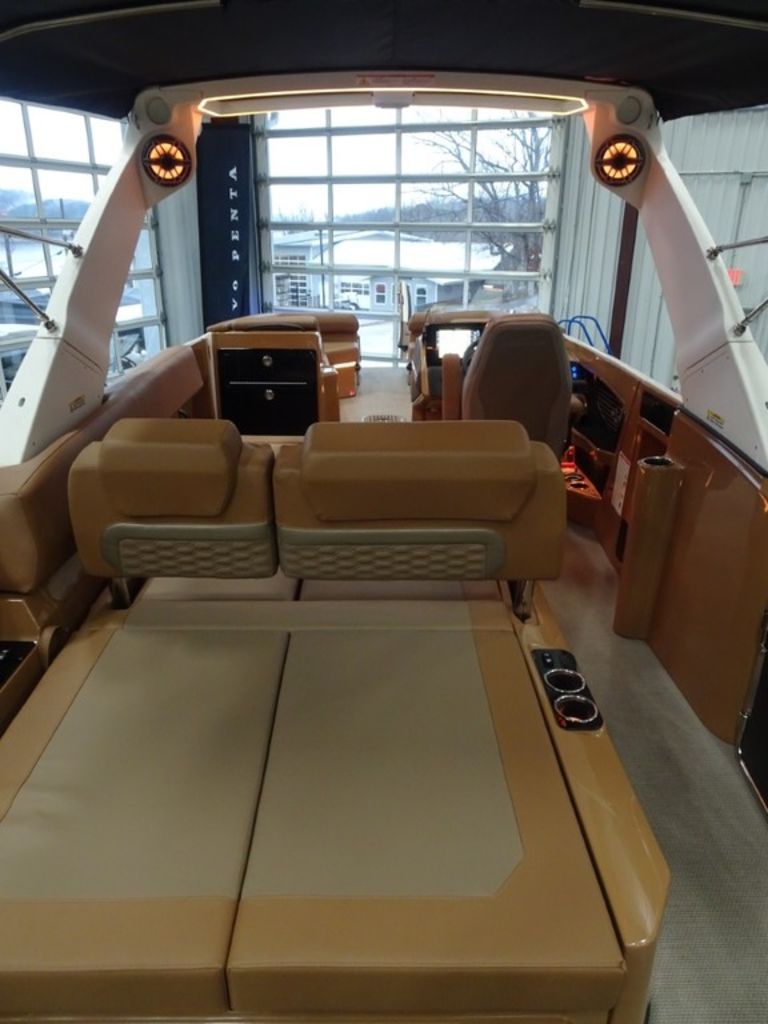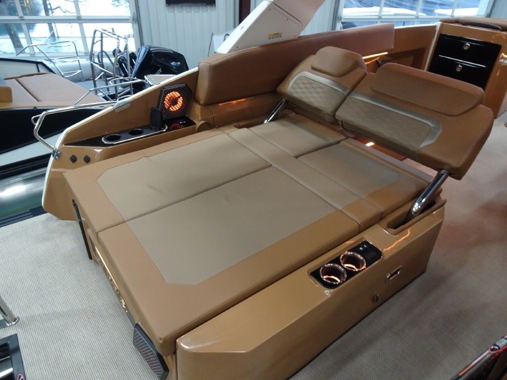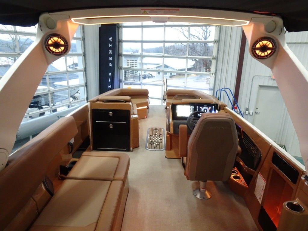 Head-Turning DesignThe Crowne demands attention on the water. Stunning fiberglass fencing wraps the playpen with peerless style, and the thoughtful interior design combines crisp details and understated elegance for a boat like nothing you've ever experienced.