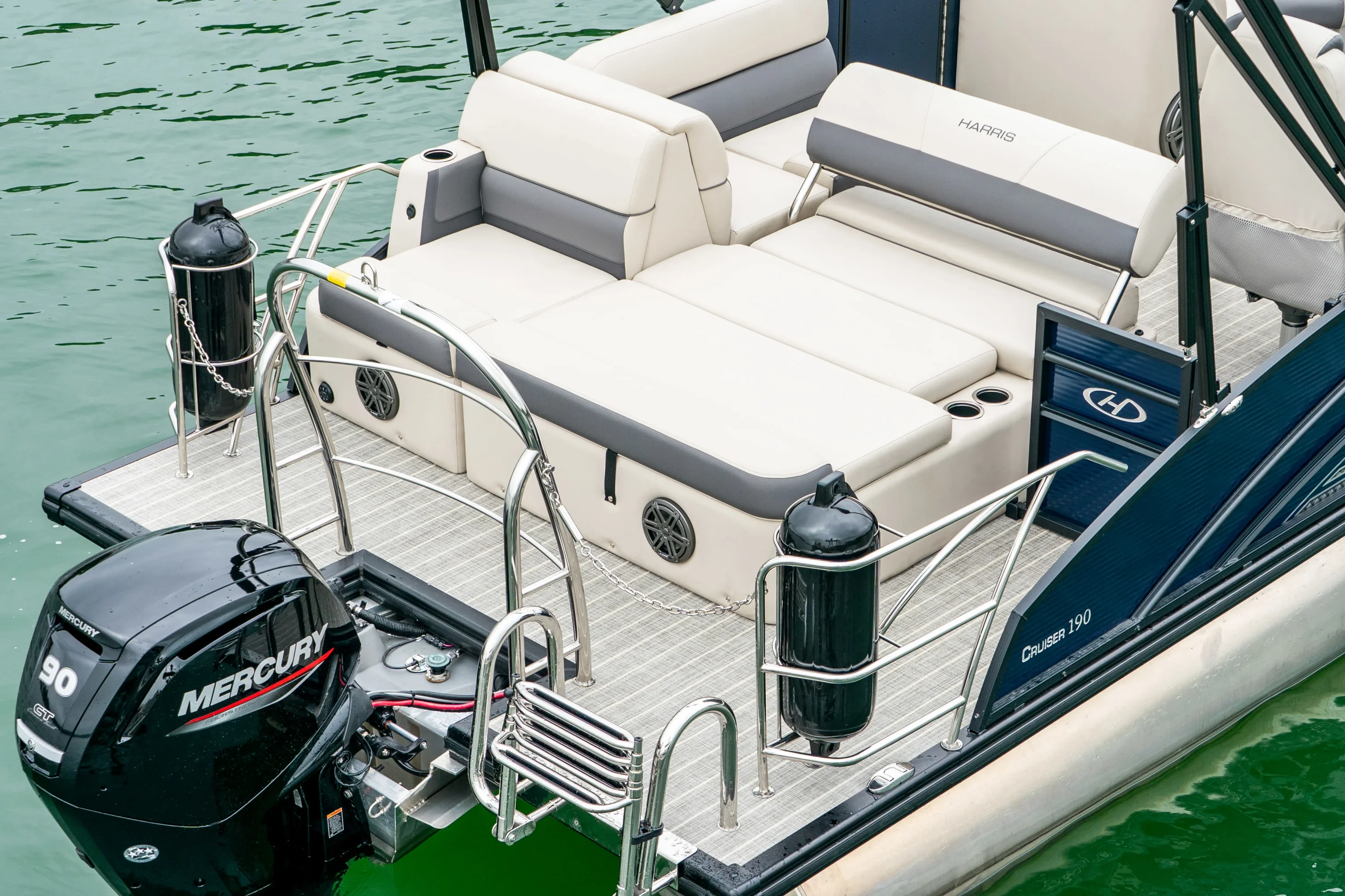 Introducing the 2026 Harris Cruiser 190, made without compromise. Invite your friends waterskiing, take the kids for a sun-soaked day of cruising, or escape alone and cast a line. No matter what you decide, the Cruiser has the amenities to make the day perfect. Pontoon boating for all. Entertain your friends, escape to your happy place, and find your ideal fishing sport on the classic Cruiser, a pontoon for everyone that can take you anywhere. Discover an array of amenities and impeccable detailing that go hand in hand with value, in a package destined to bring happiness to all aboard. Enhanced features. Take to the water on a craft built with value in mind that also includes more than you might expect, including a new 190 (19-foot) length, ultra-soft yet extremely durably vinyl upholstery, a reclining helm chair, and standard charging station. Personalizing your pontoon for watersports or fishing is simple-performance packages give you better control on rough water. Key Features Luxury Redefined -This sleek 2026 Harris Cruiser 190 encapsulates luxury and performance, setting new standards in the boating world. Crafted with precision and featuring top-of-the-line amenities, this boat is a true masterpiece on water.